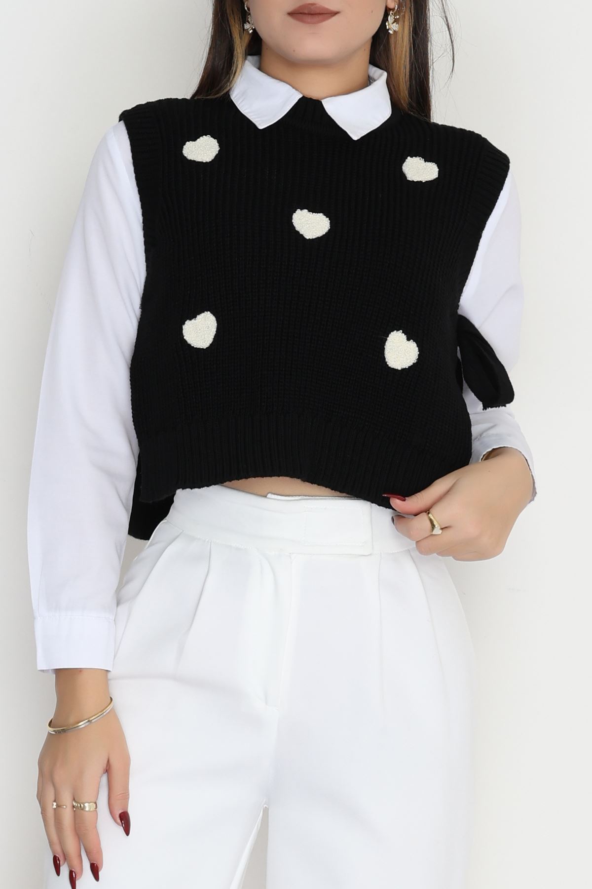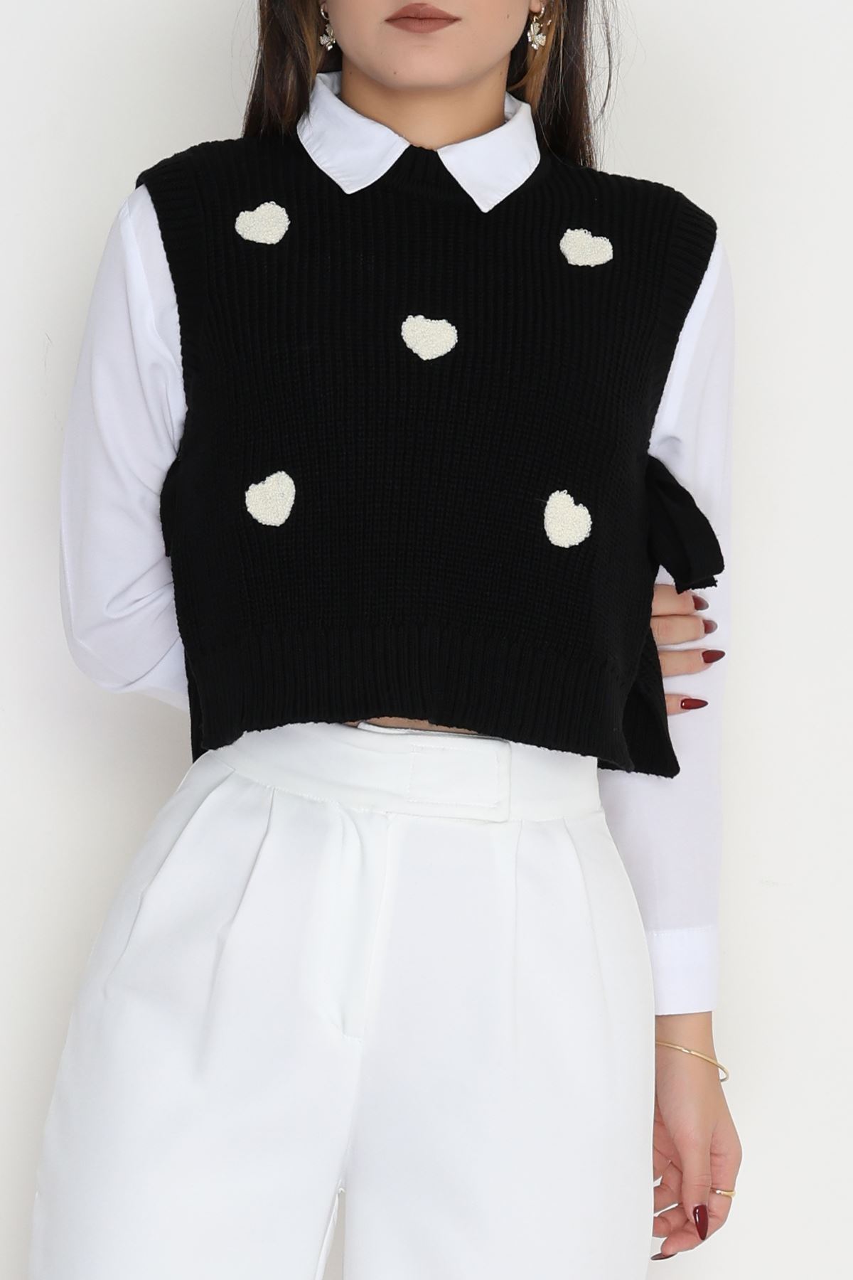 Kalp Desenli Süveter Siyah - 41962.2043.