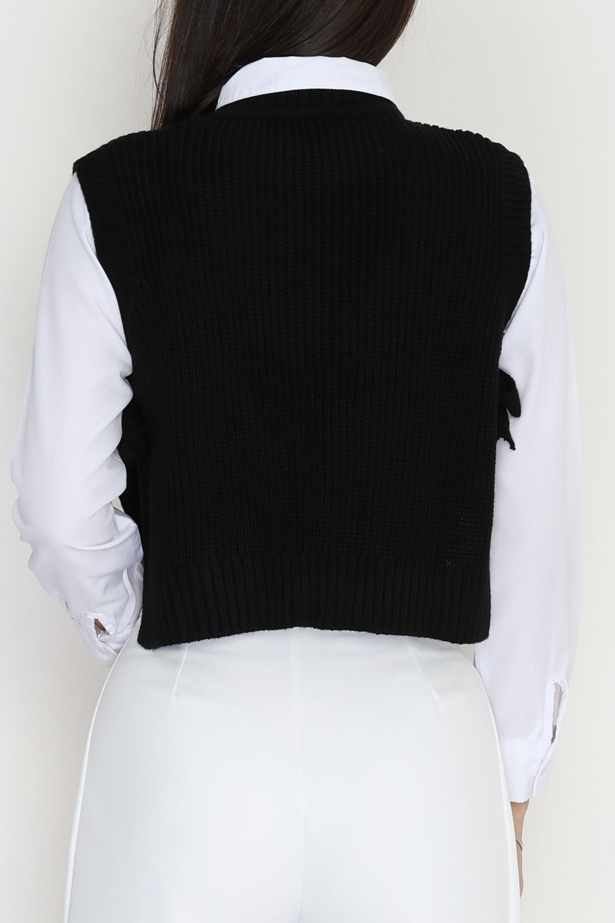 Şardonlu Düğmeli Triko Hırka Siyah - 31456.1766.