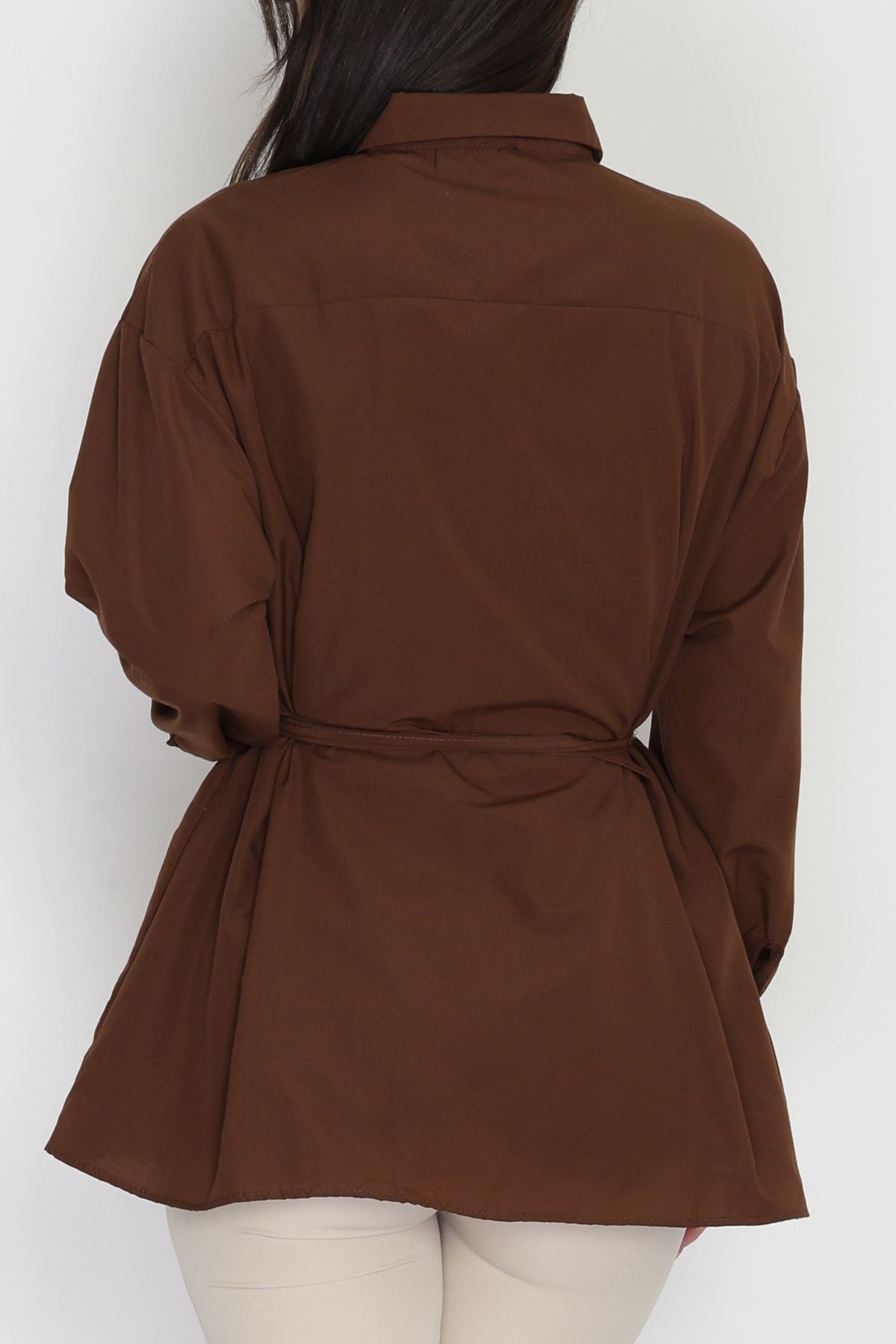 Çift Cepli Kuşaklı Tunik Gömlek Bordo - 70991.1775.