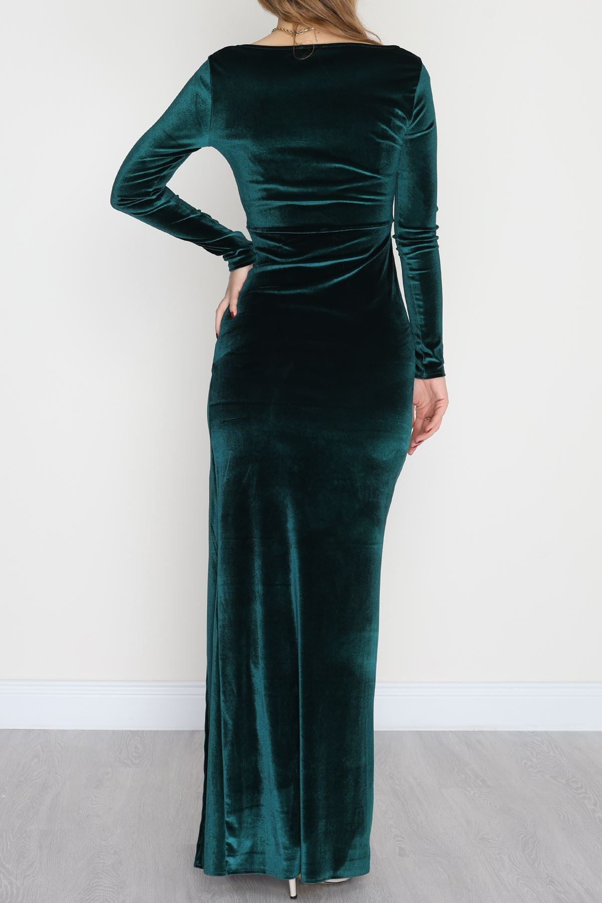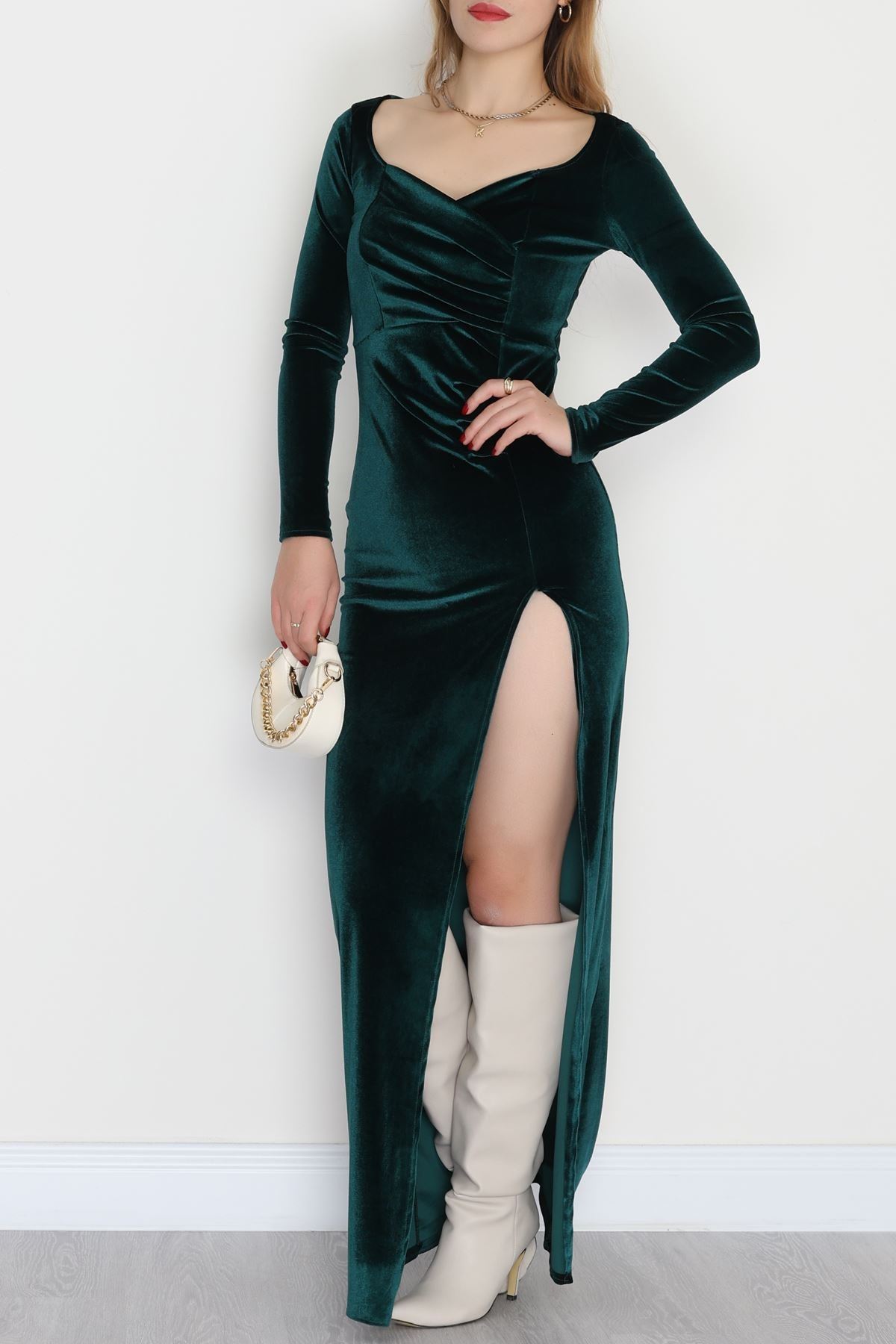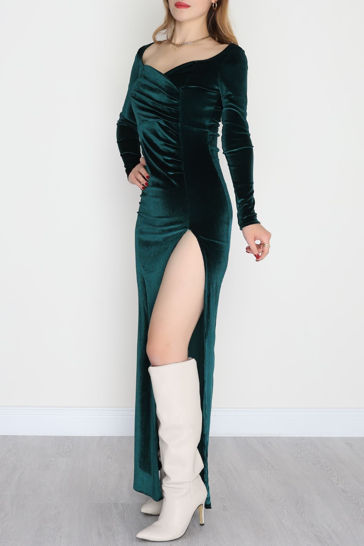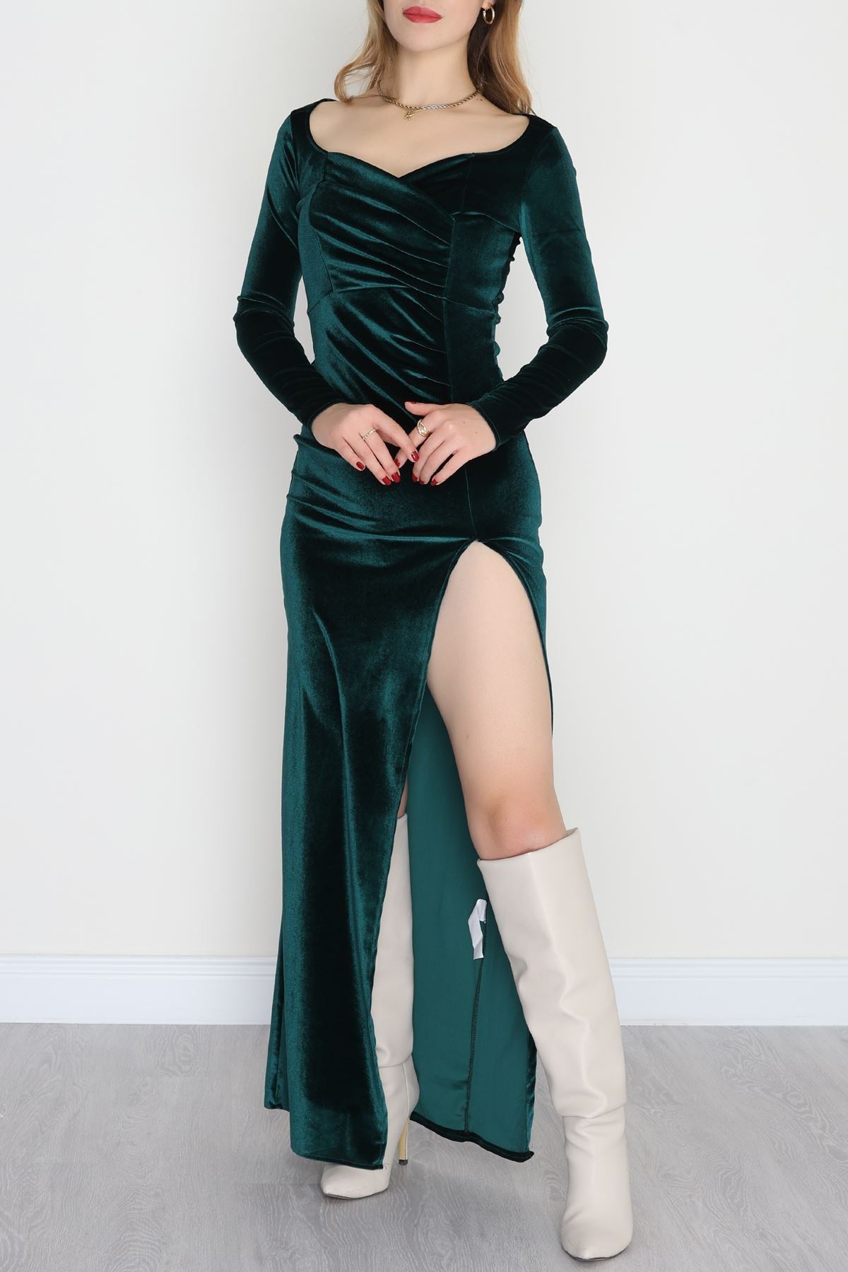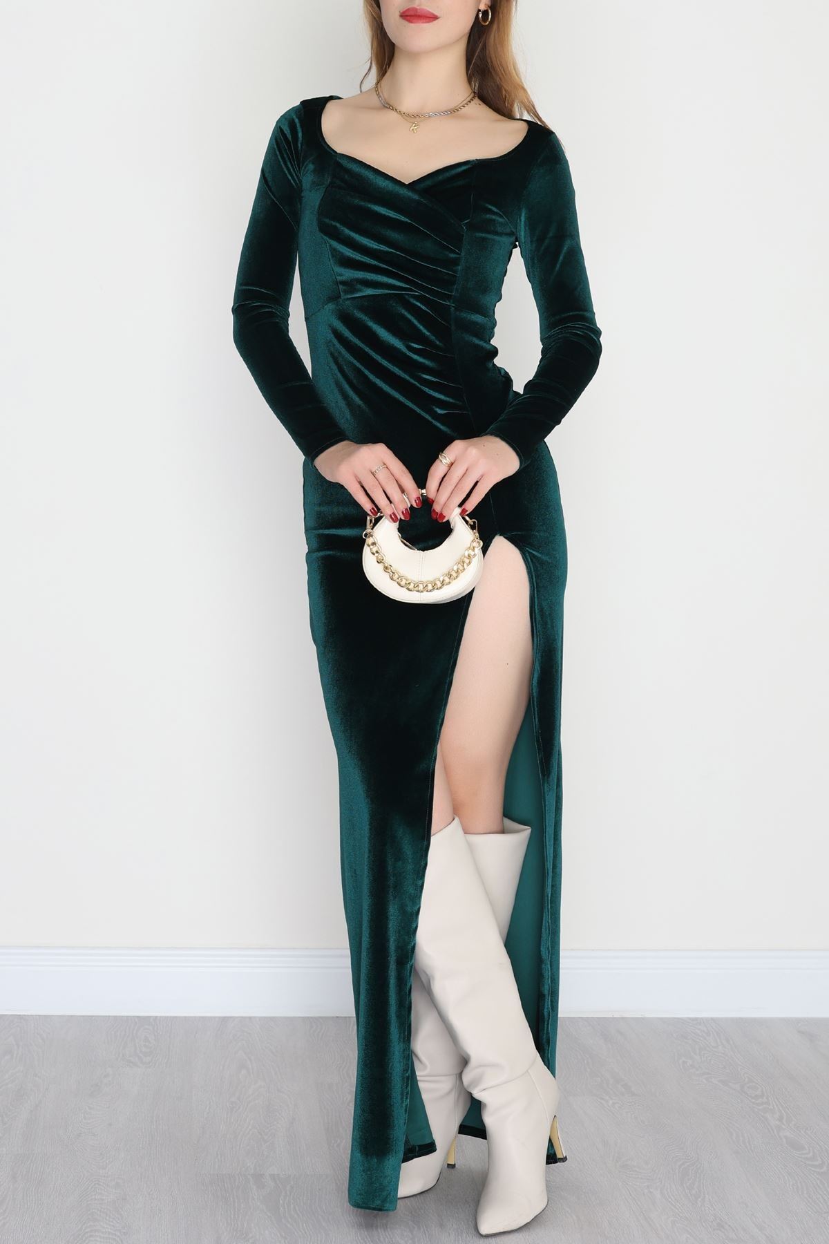 Kalp Yaka Kadife Elbise Zümrüt - 582294.1592.