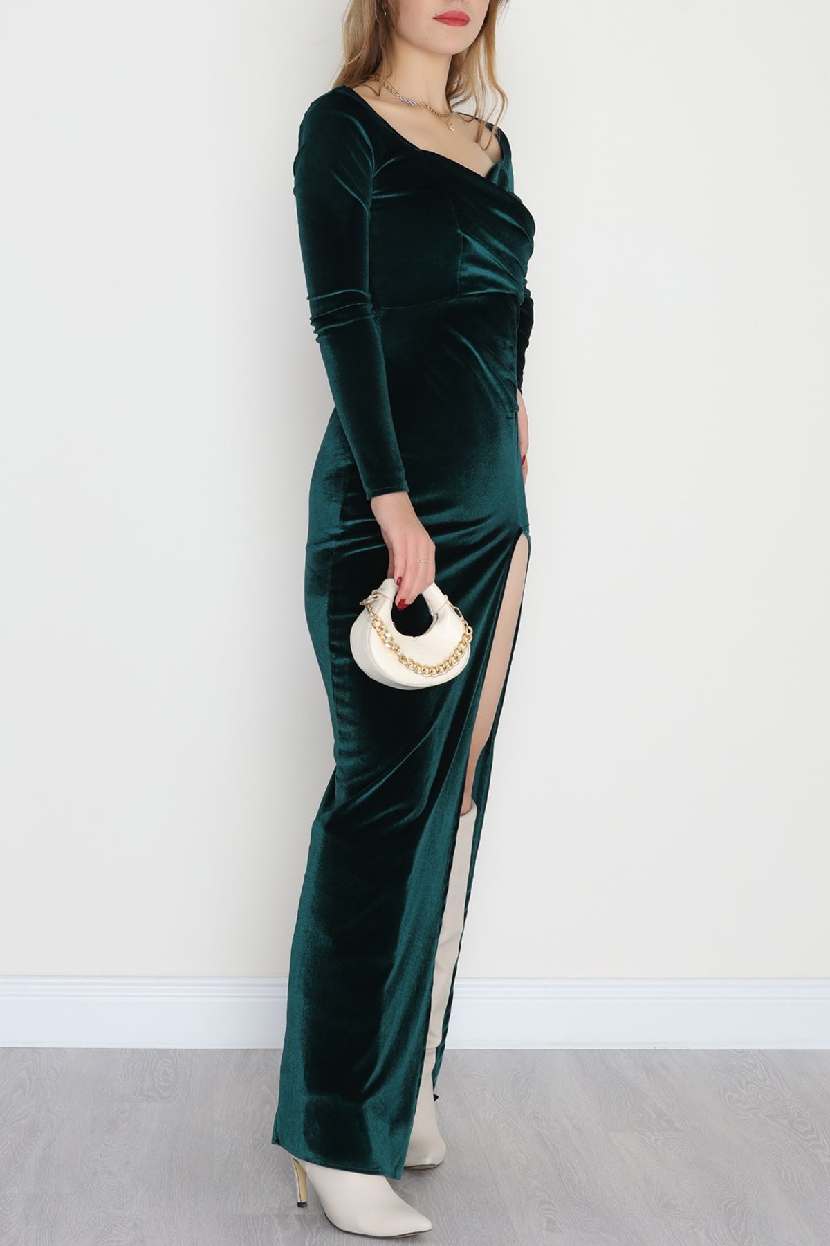 Tek Omuz Kadife Elbise Zümrüt - 582333.1592.
