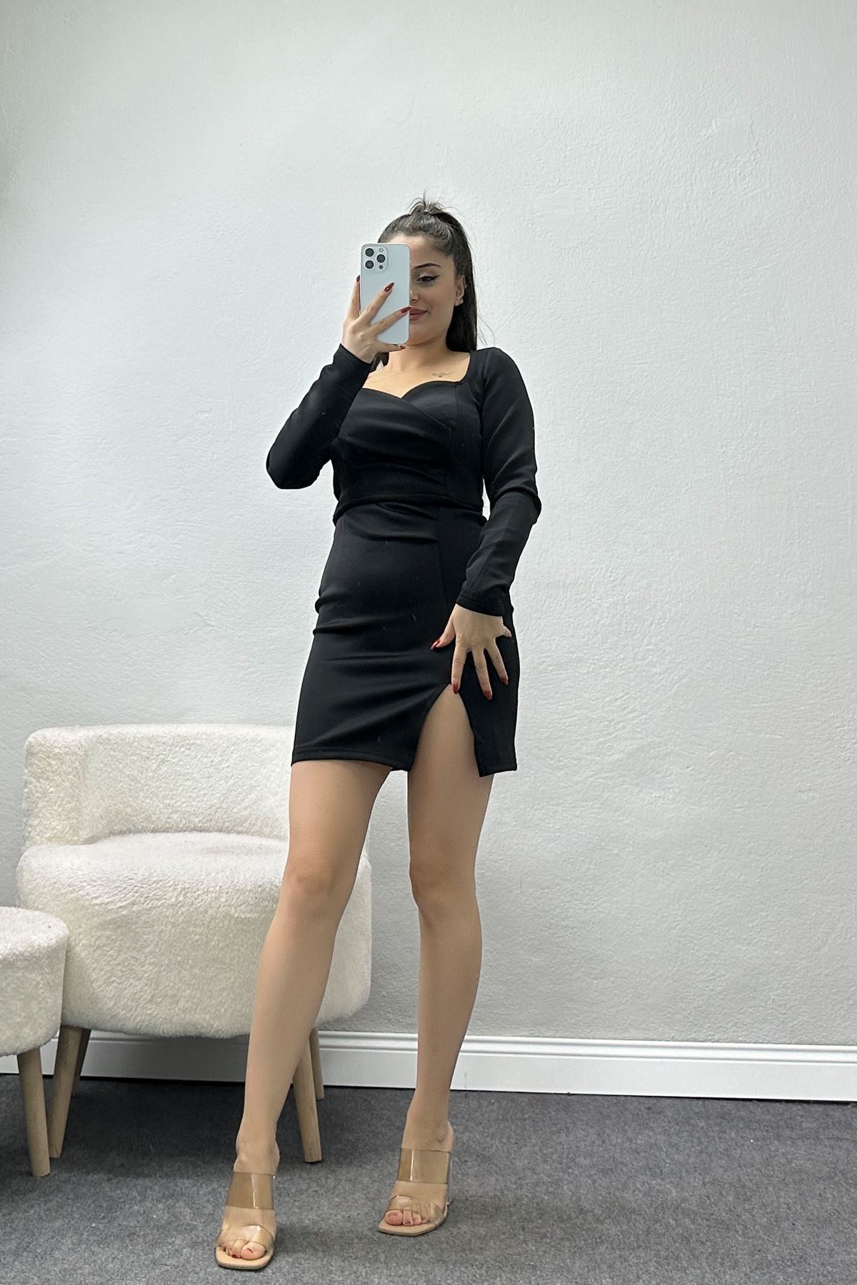Kalp Yaka Krep Elbise Siyah - 582643.1592.