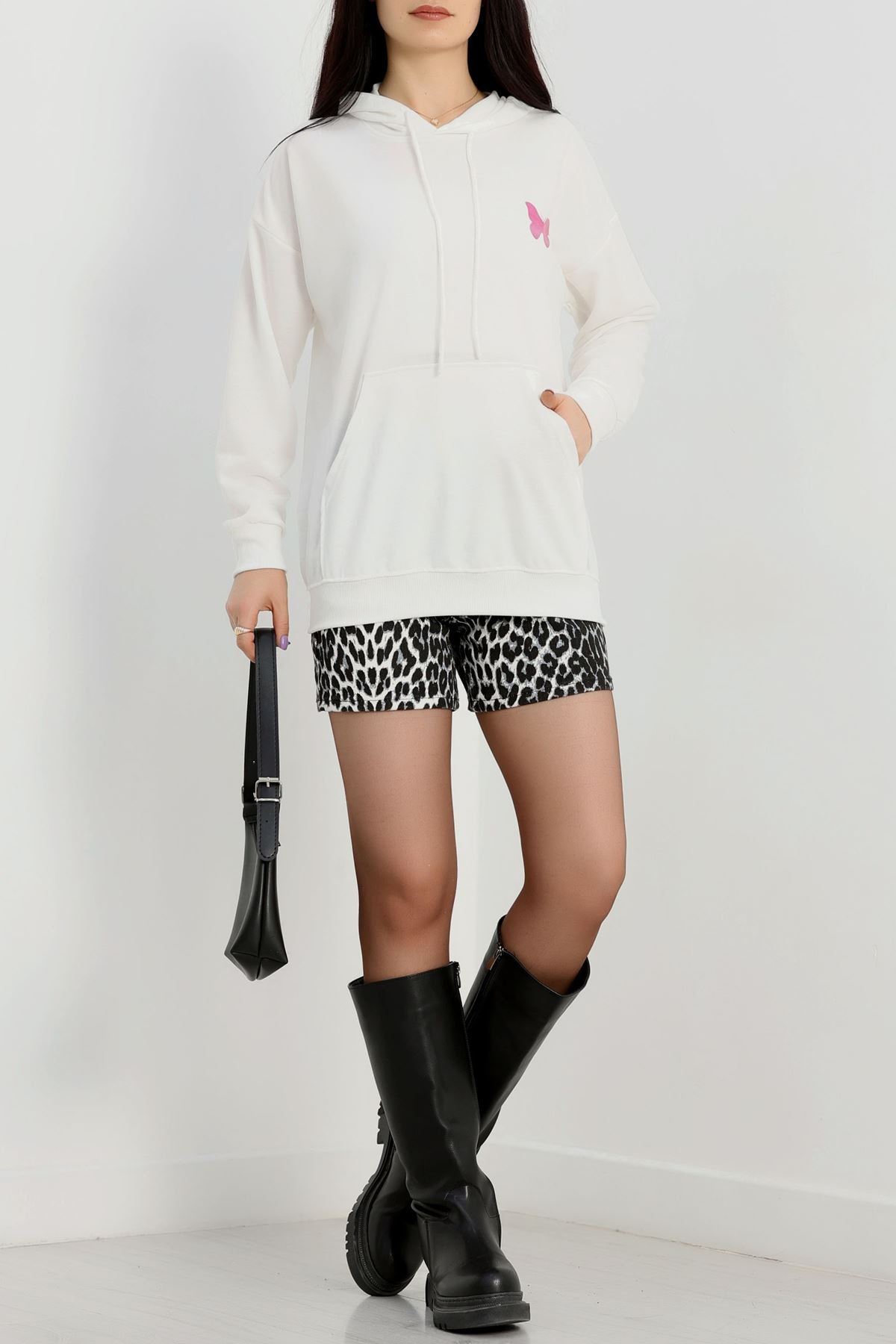 Kapşonlu 2 İplik Baskılı Sweat Ekru - 31306.1878.