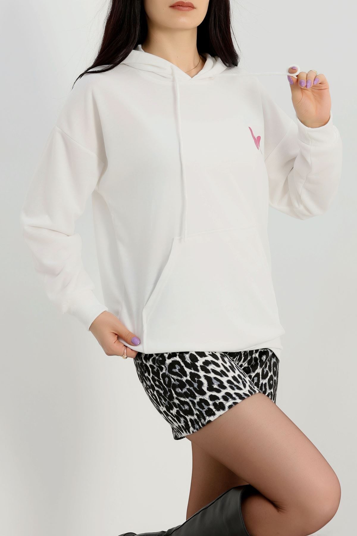 3 İplik Kapşonlu Nakışlı Sweat Pembebeyaz - 42231.1878.