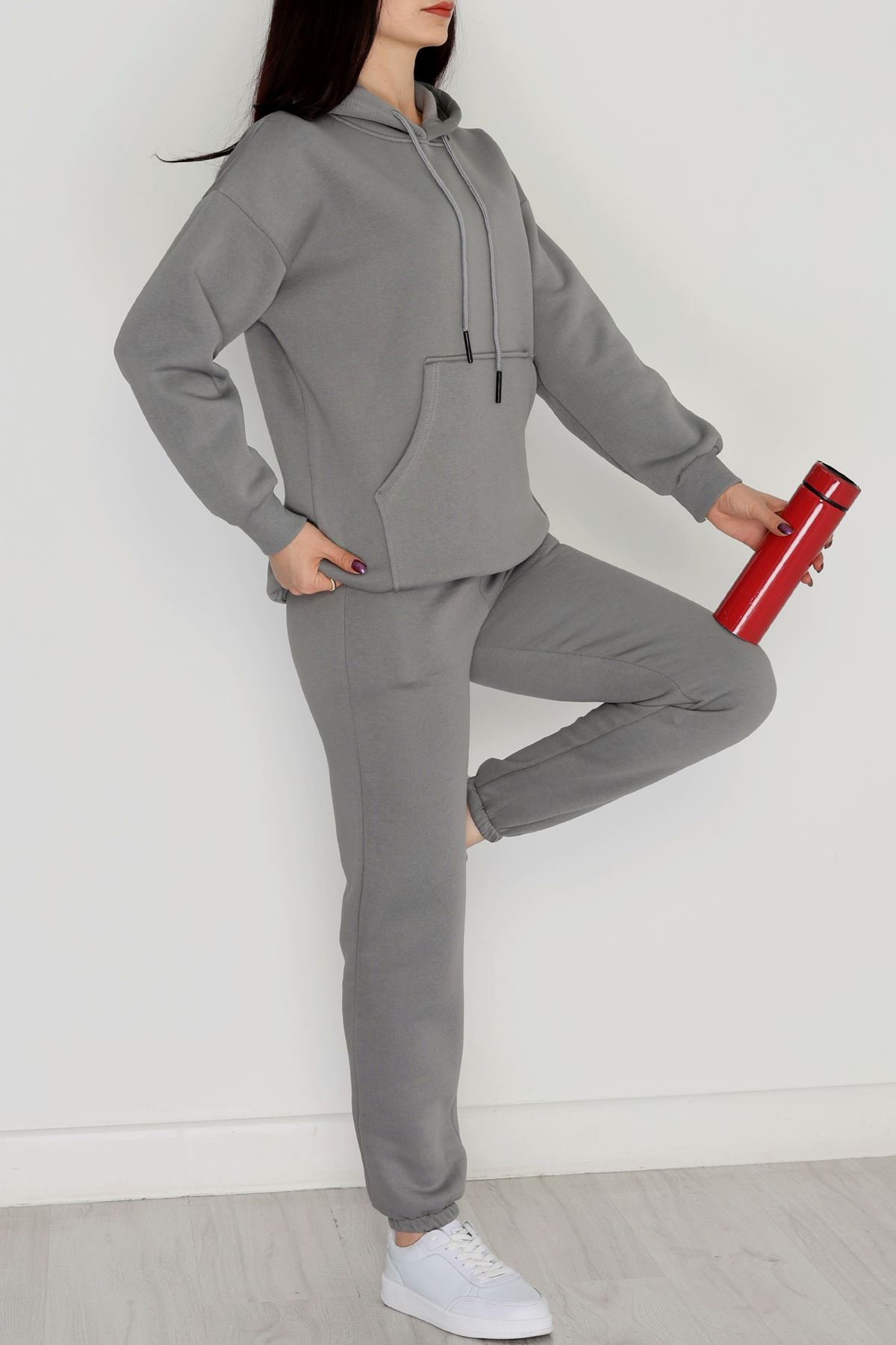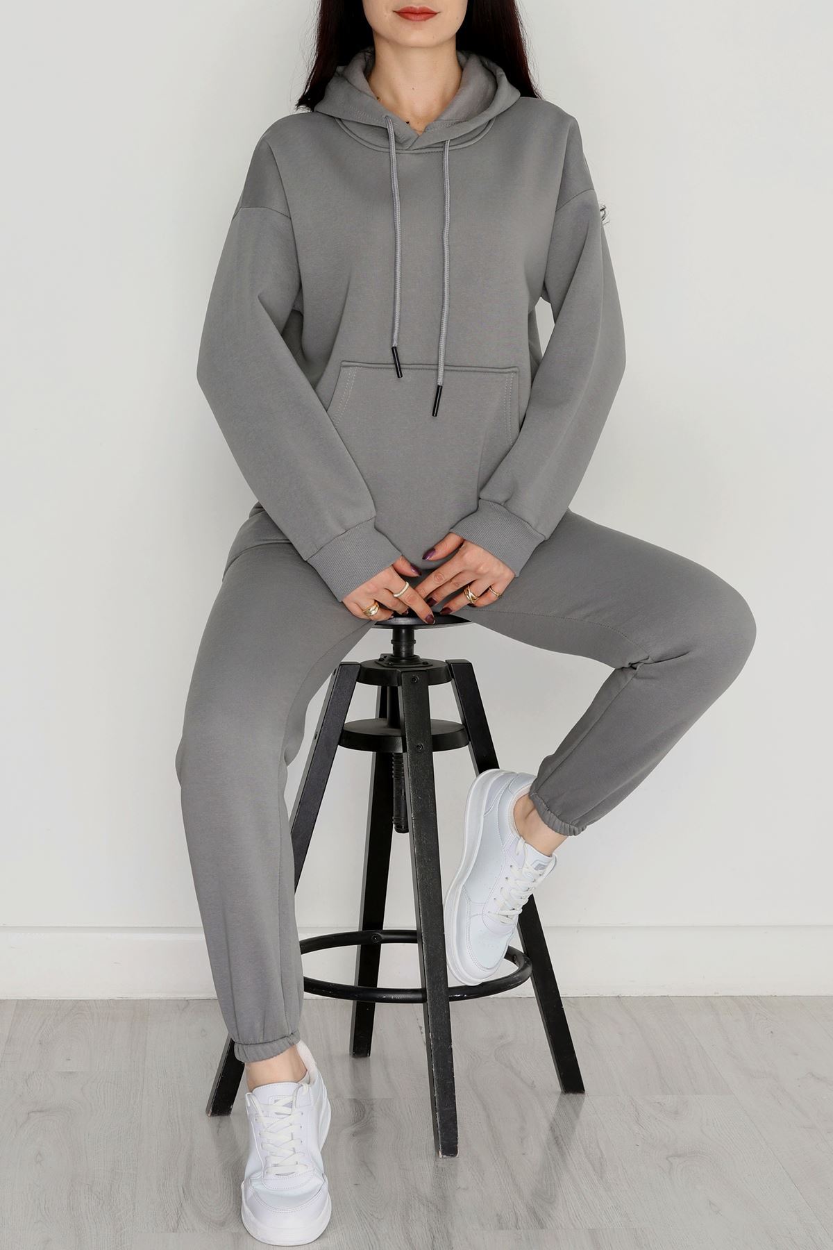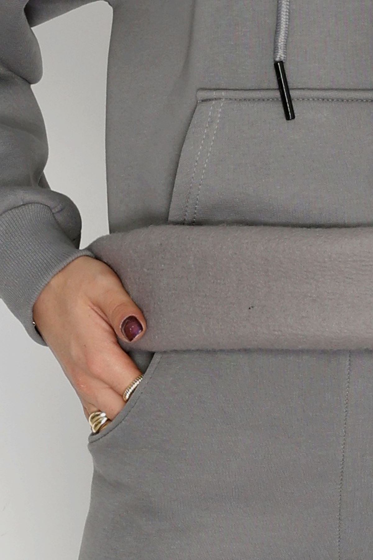 Kapşonlu 3 İplik Eşofman Takımı Antrasit - 20965.1878.