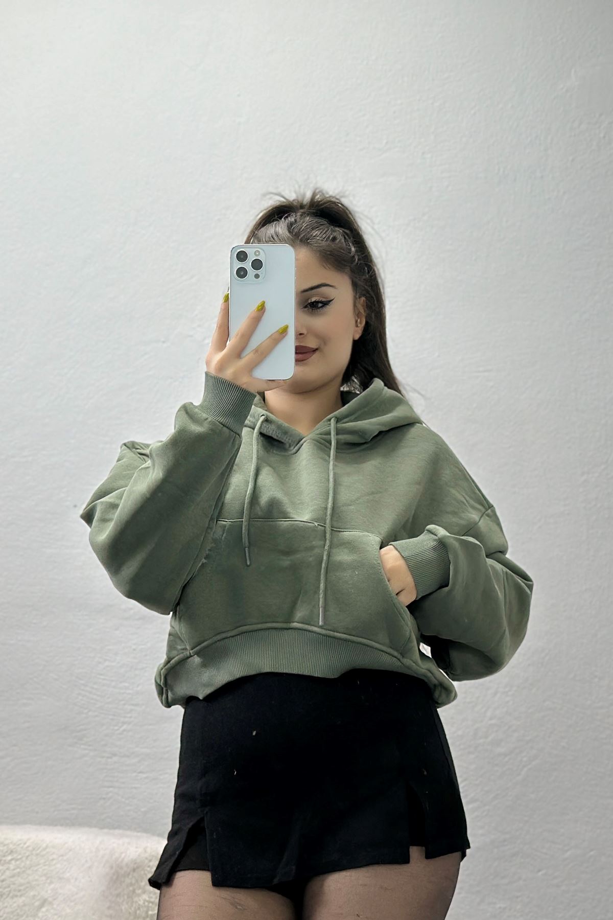 Kapşonlu Crop Sweat Siyah - 20959.1878.