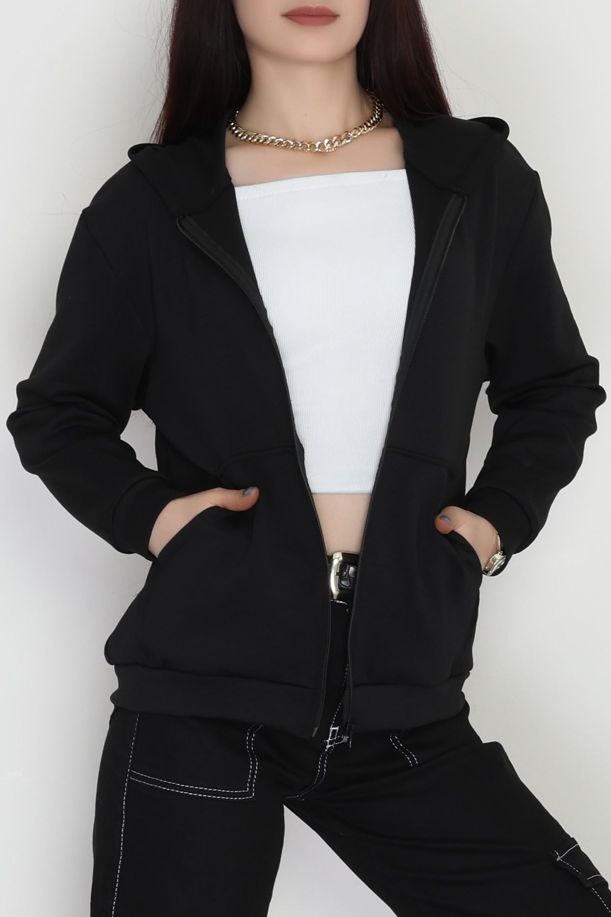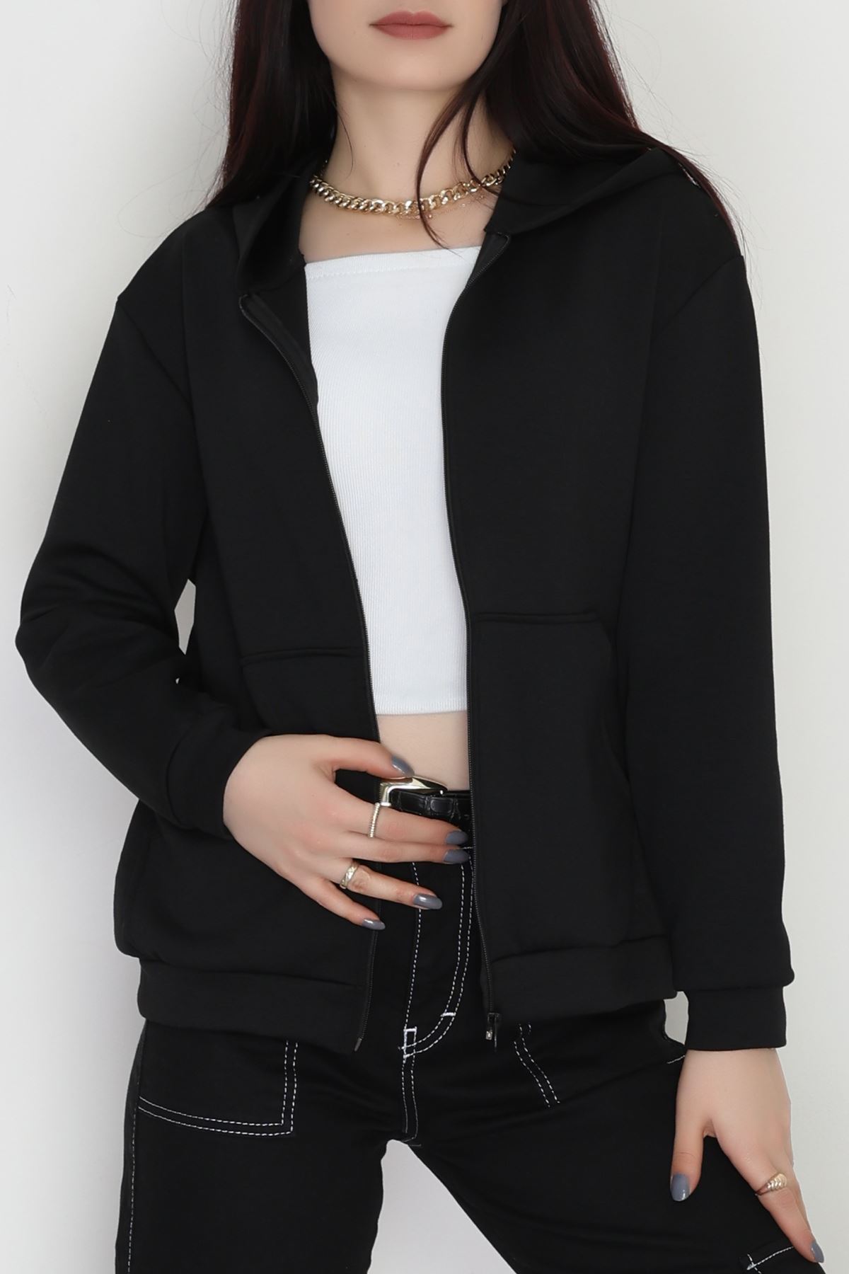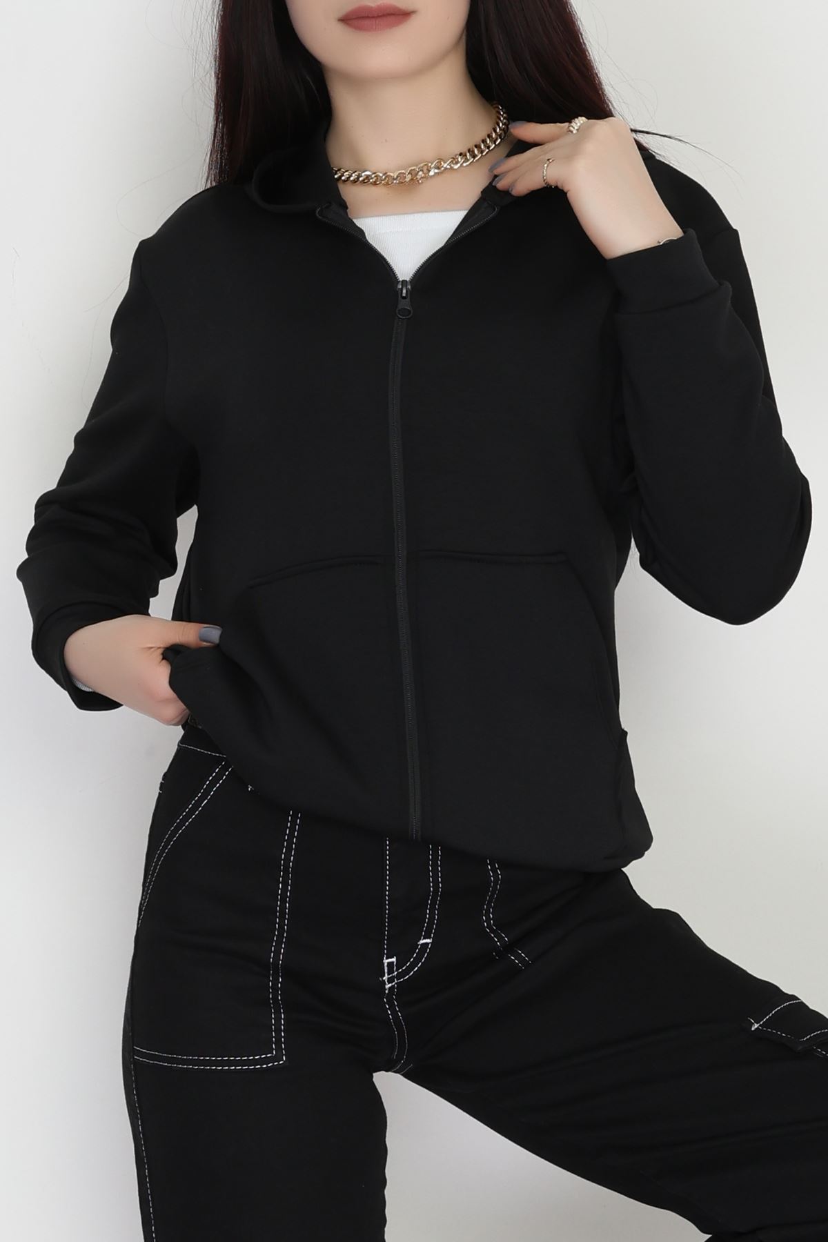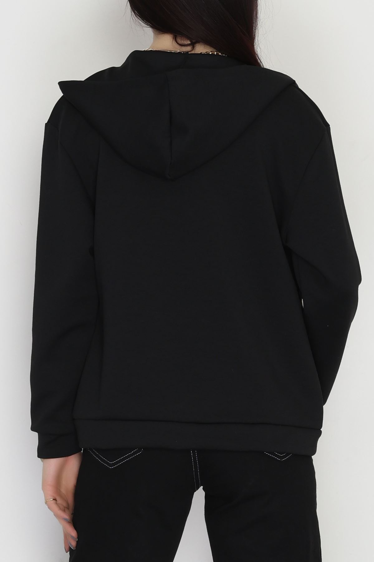 Kapşonlu Fermuarlı Modal Sweat Siyah - 90977.1837.