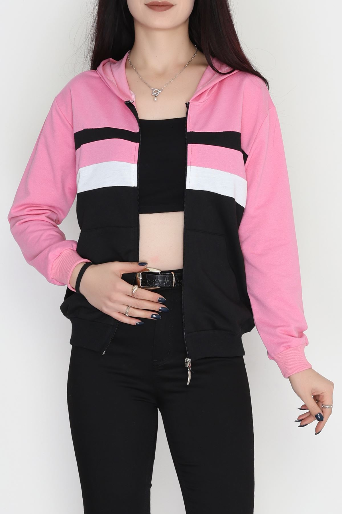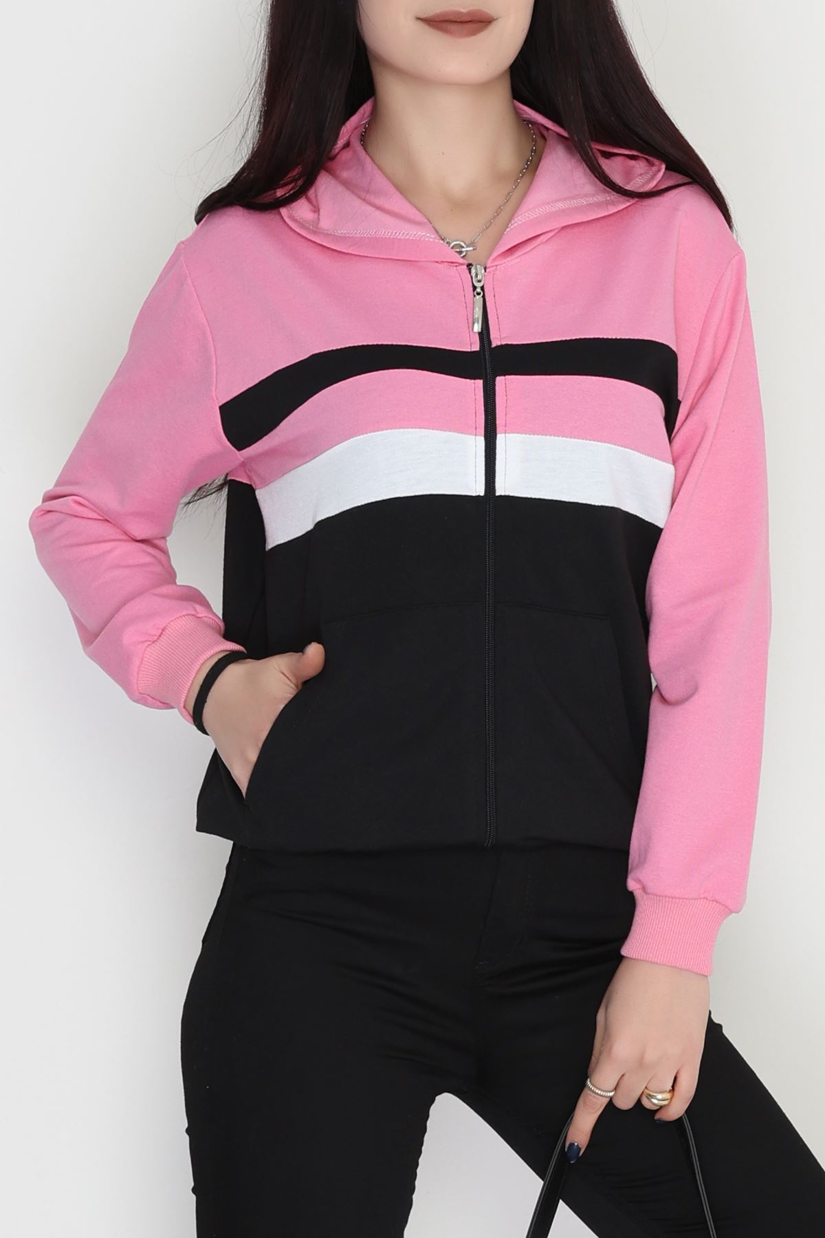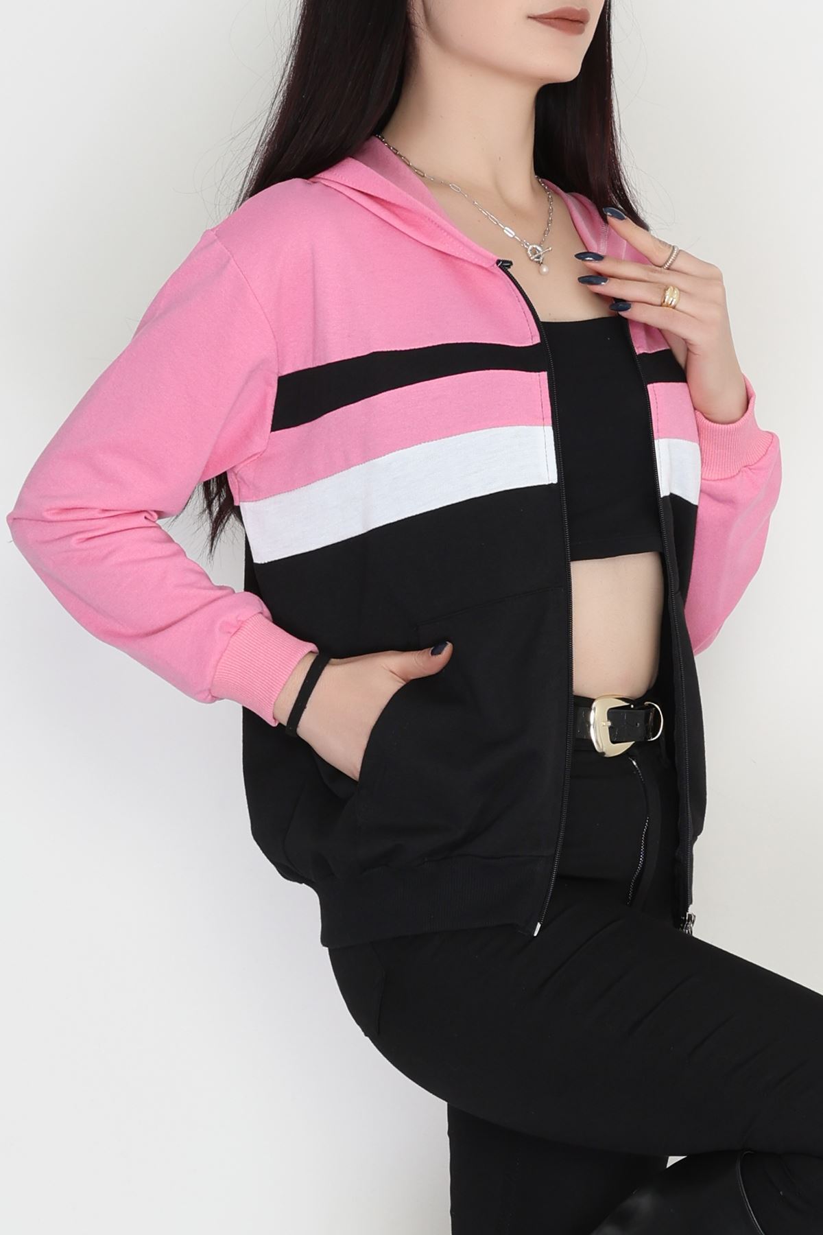 Kapşonlu Fermuarlı Sweat Siyahpembe - 41853.1005.