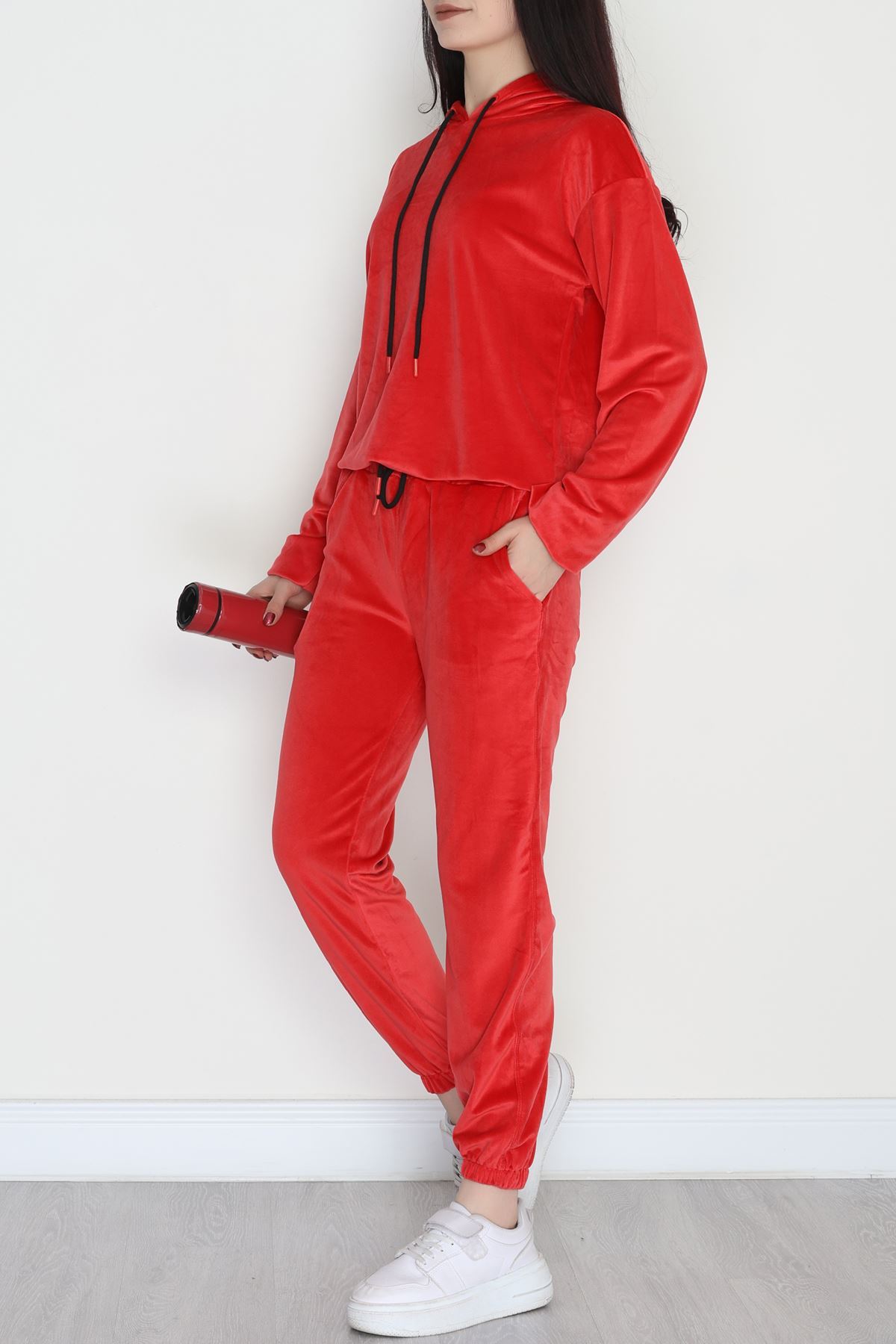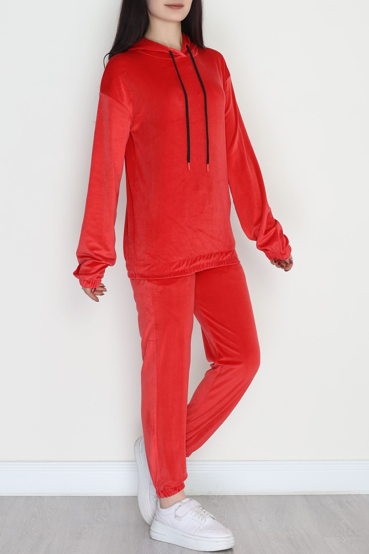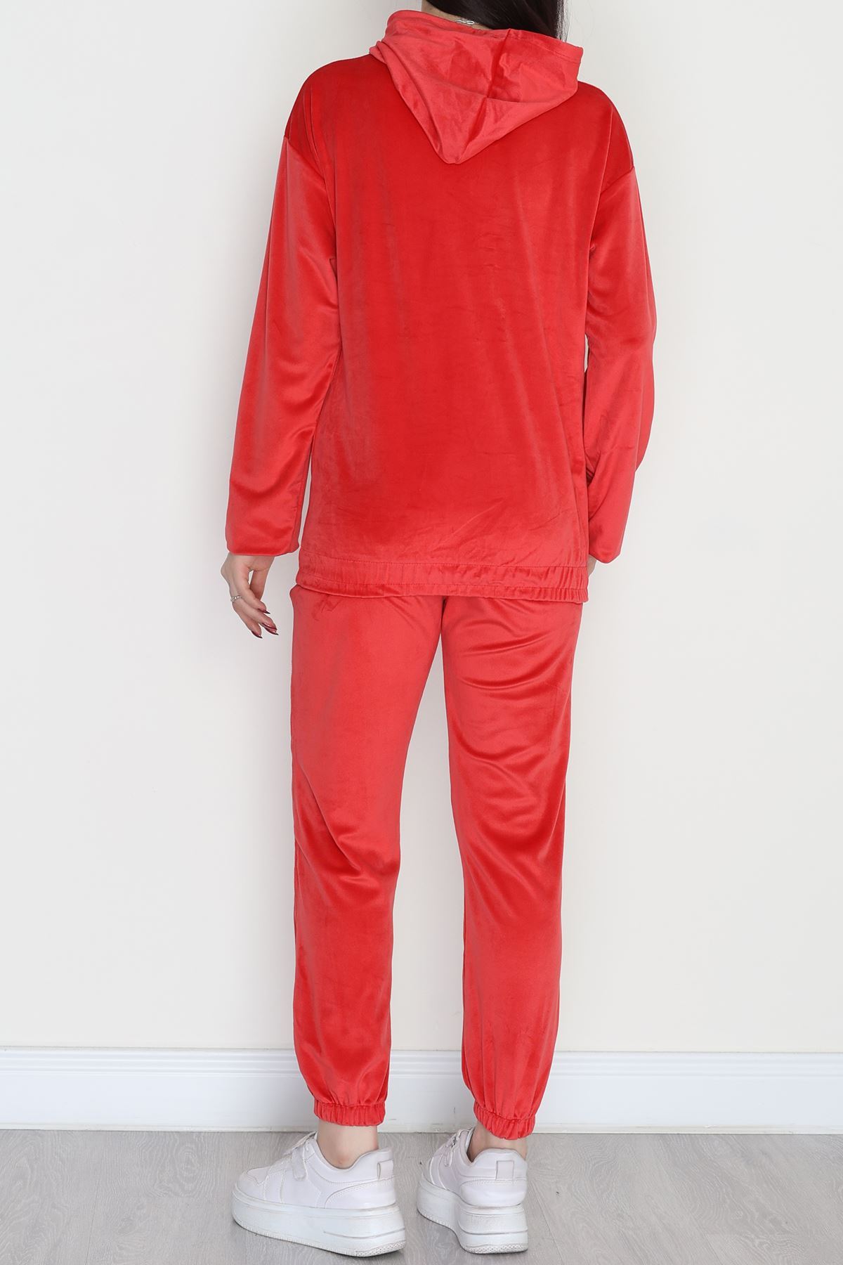 Kapşonlu Fransız Kadife Likralı Eşofman Takımı Kırmızı - 80903.1301.