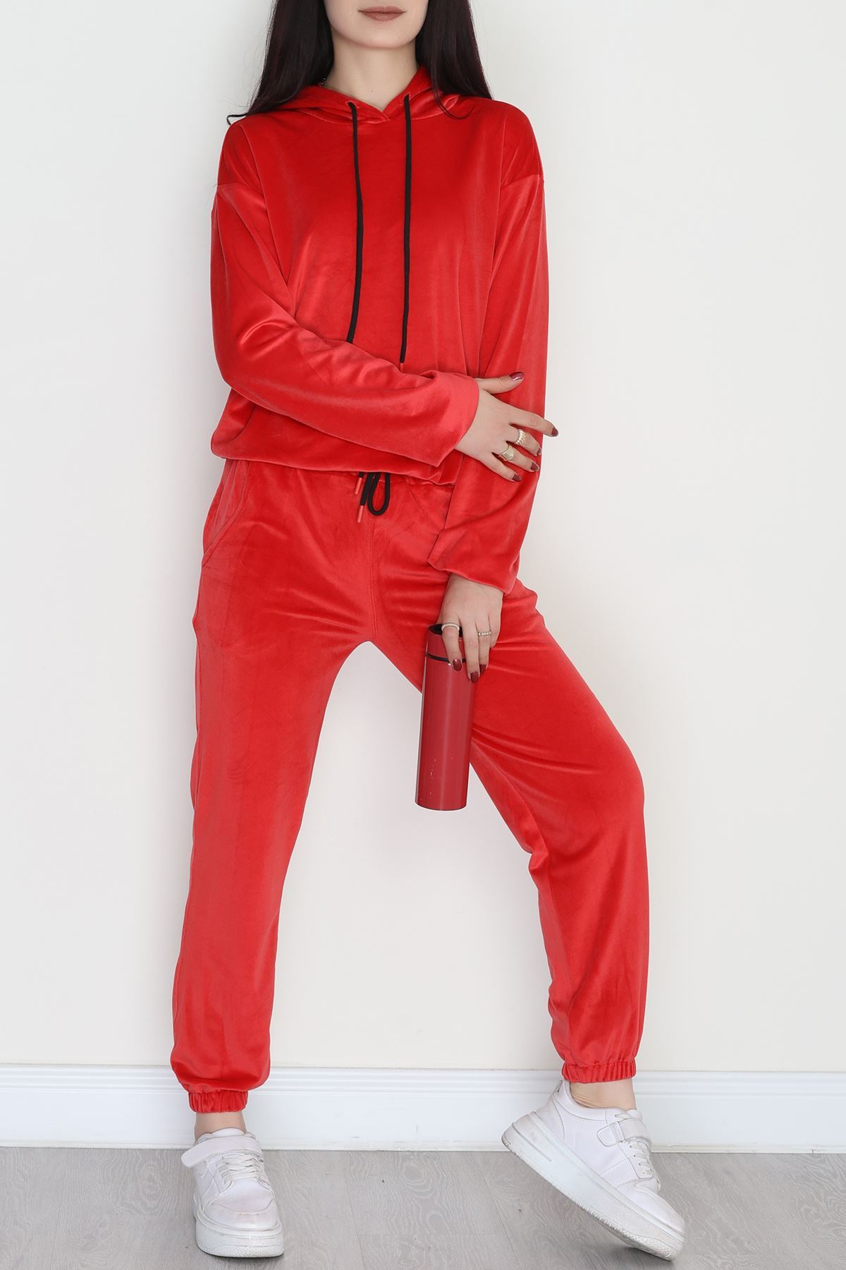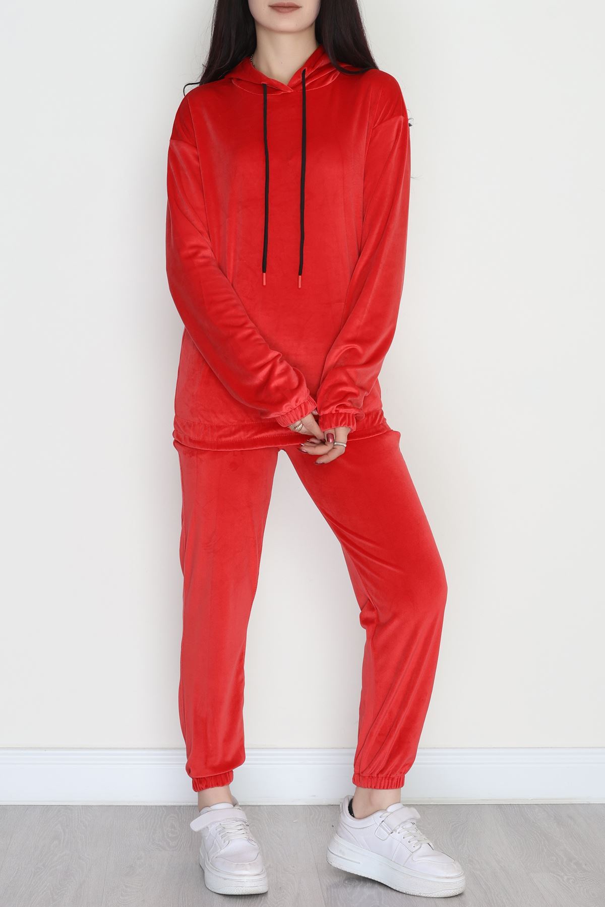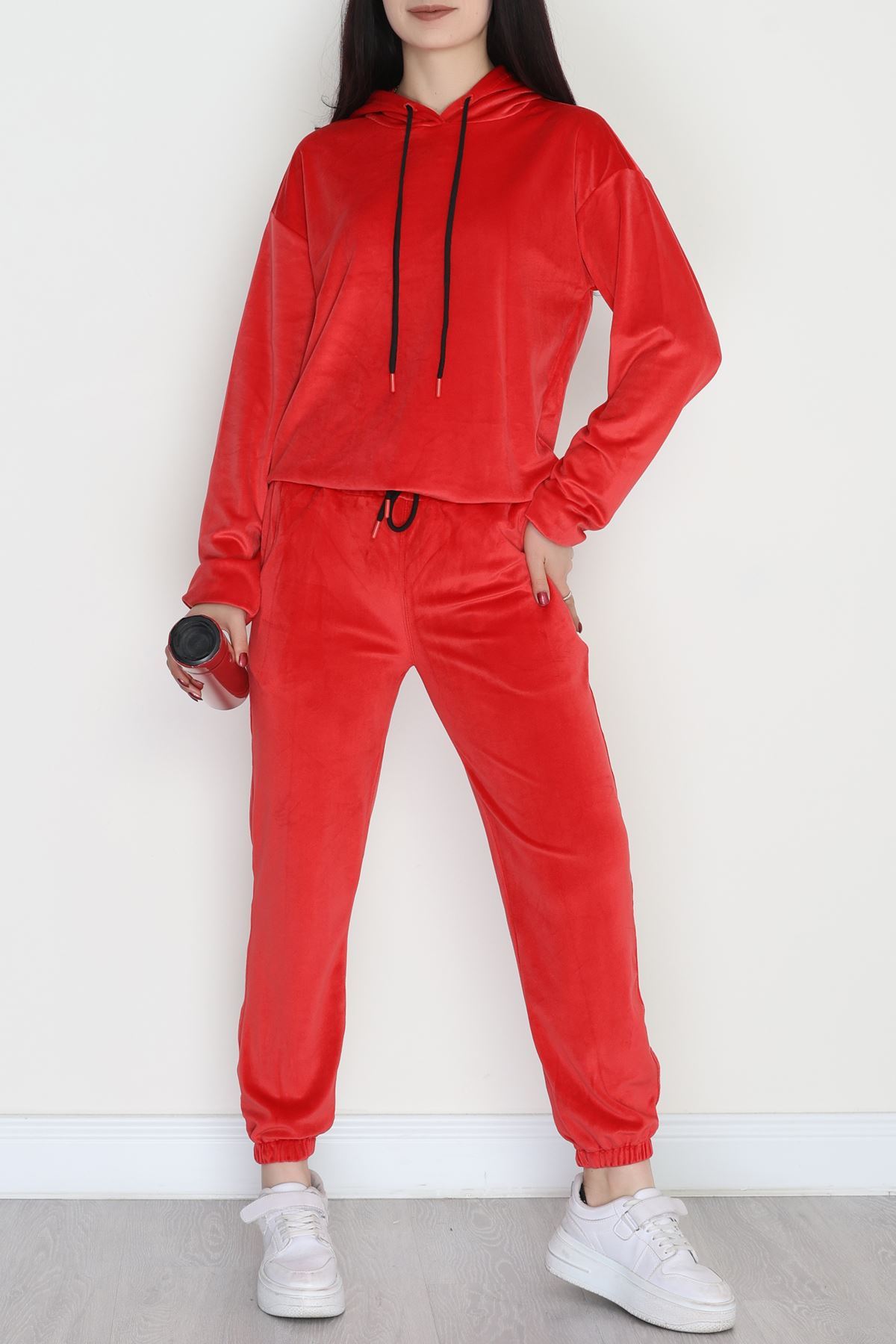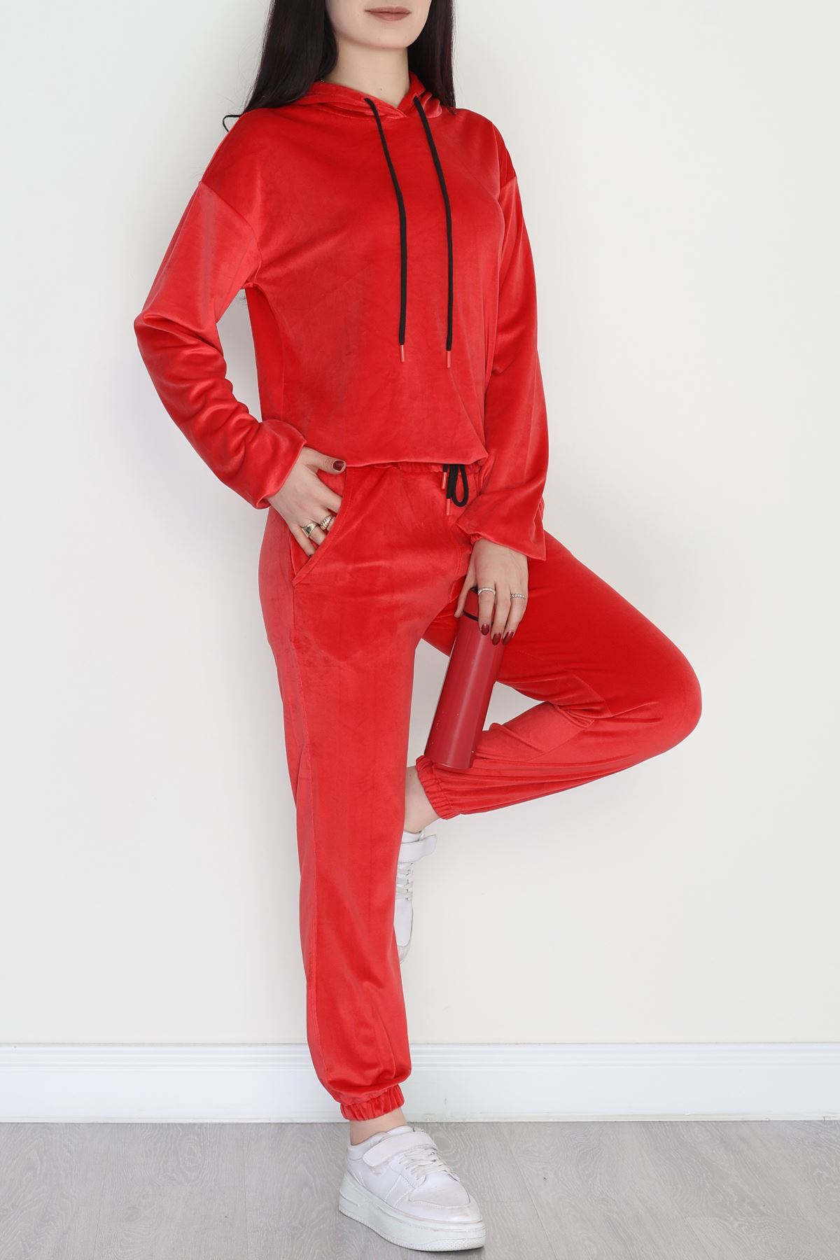 Kapşonlu Fransız Kadife Likralı Eşofman Takımı Kırmızı - 80903.1301.