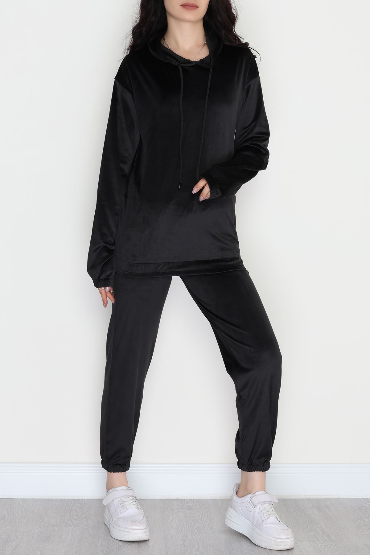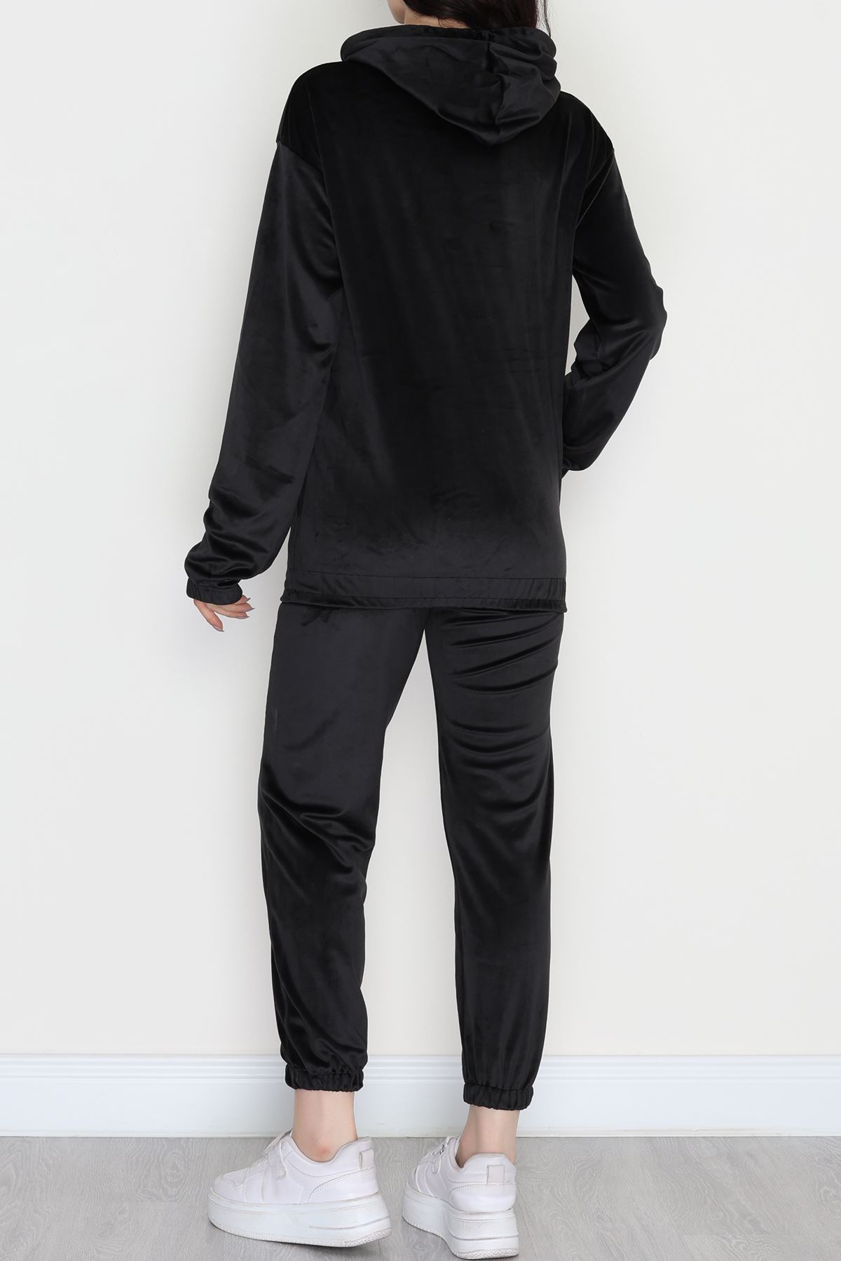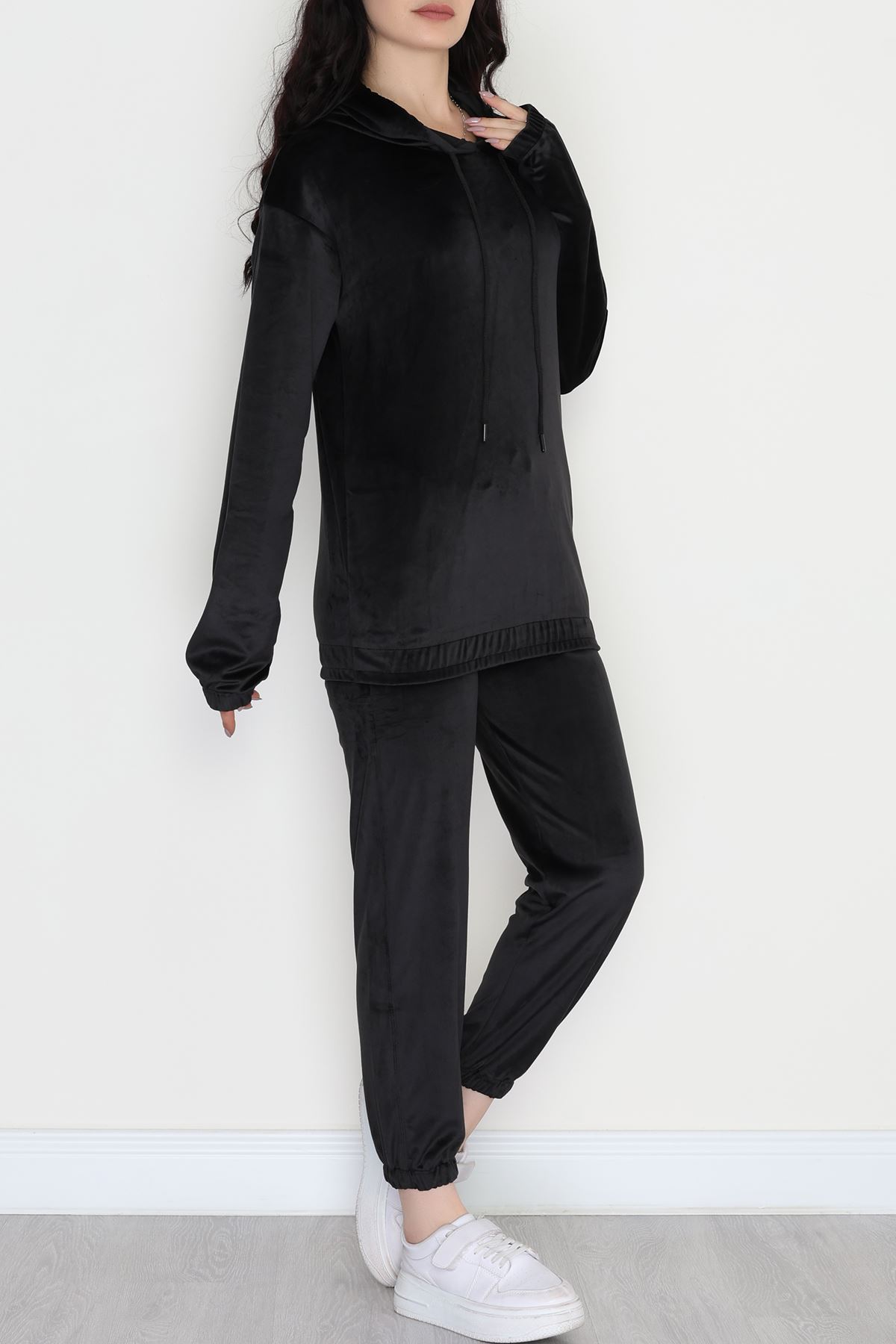 Kapşonlu Fransız Kadife Likralı Eşofman Takımı Siyah - 80903.1301.