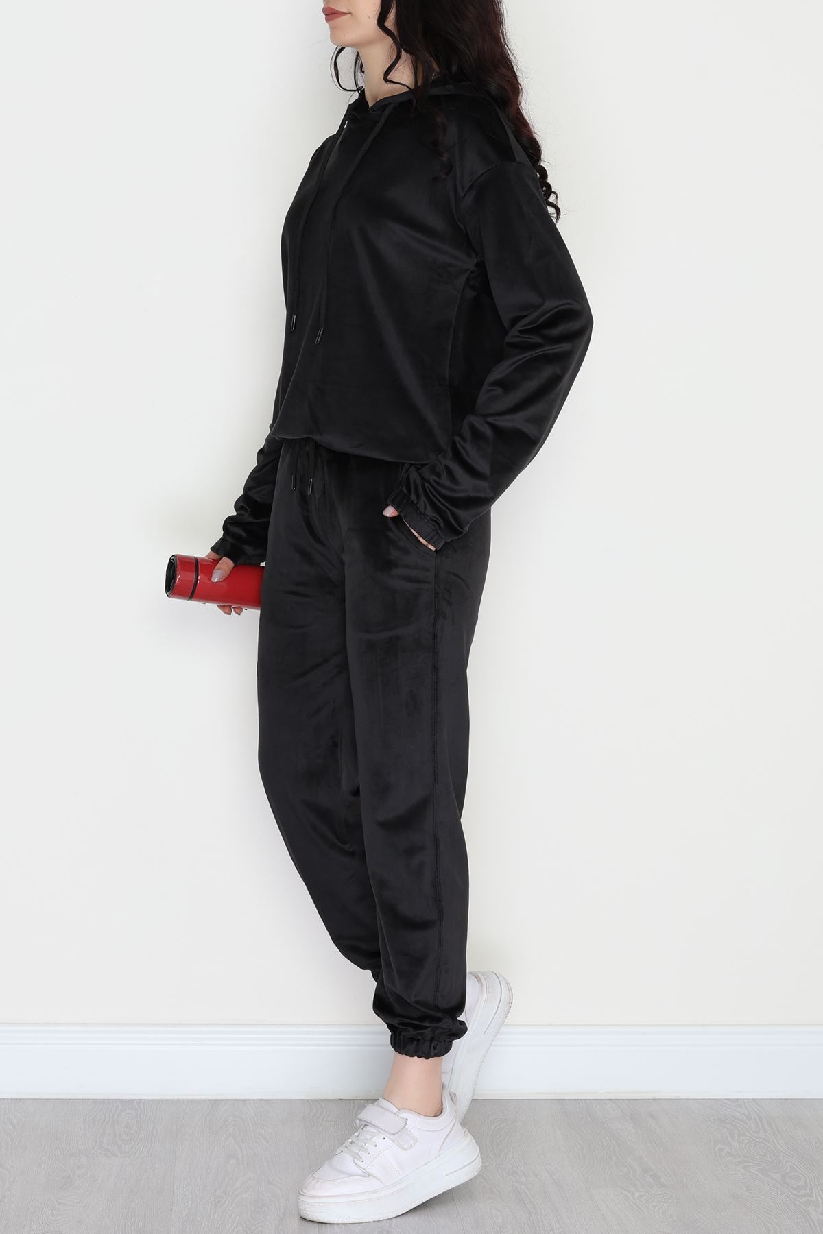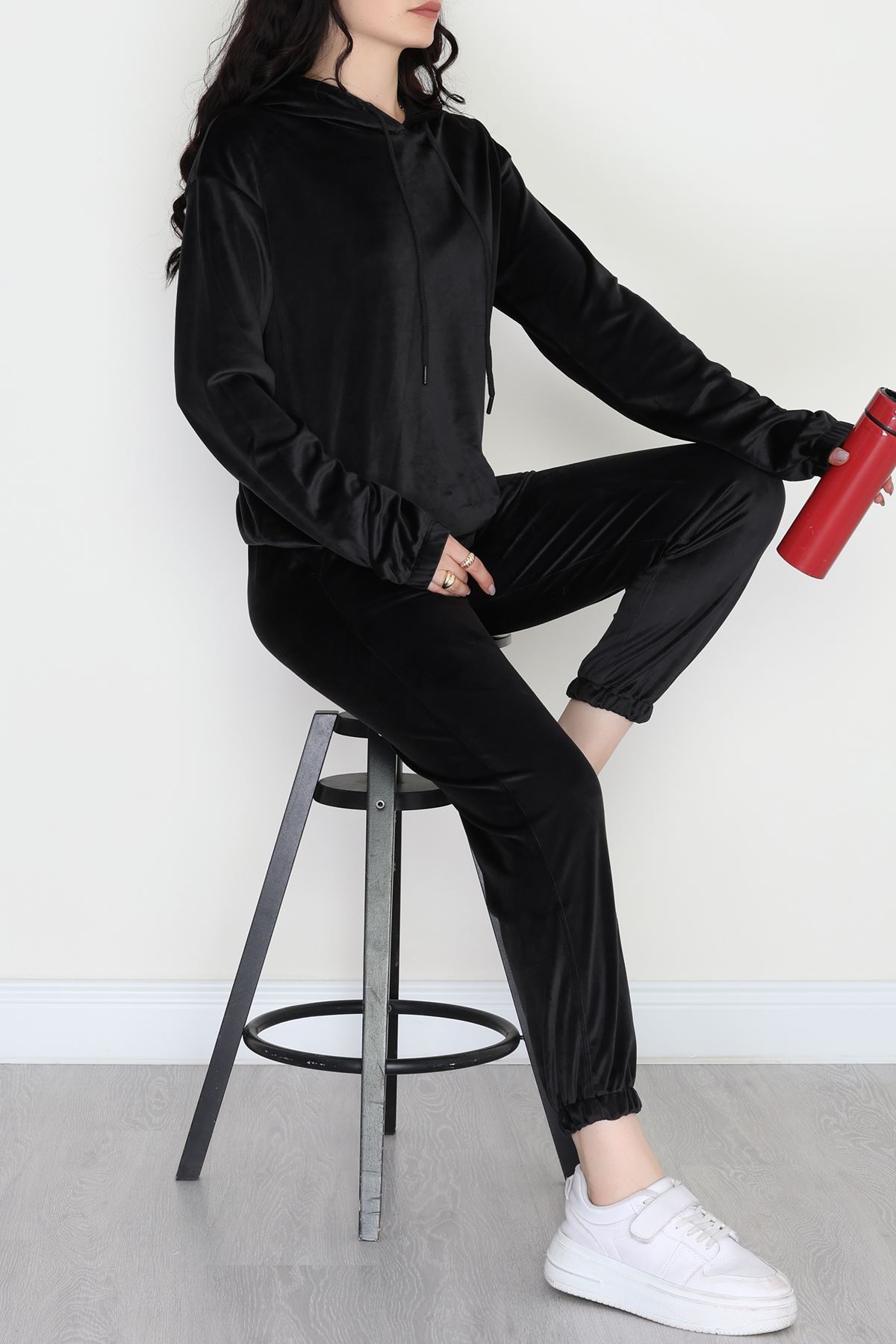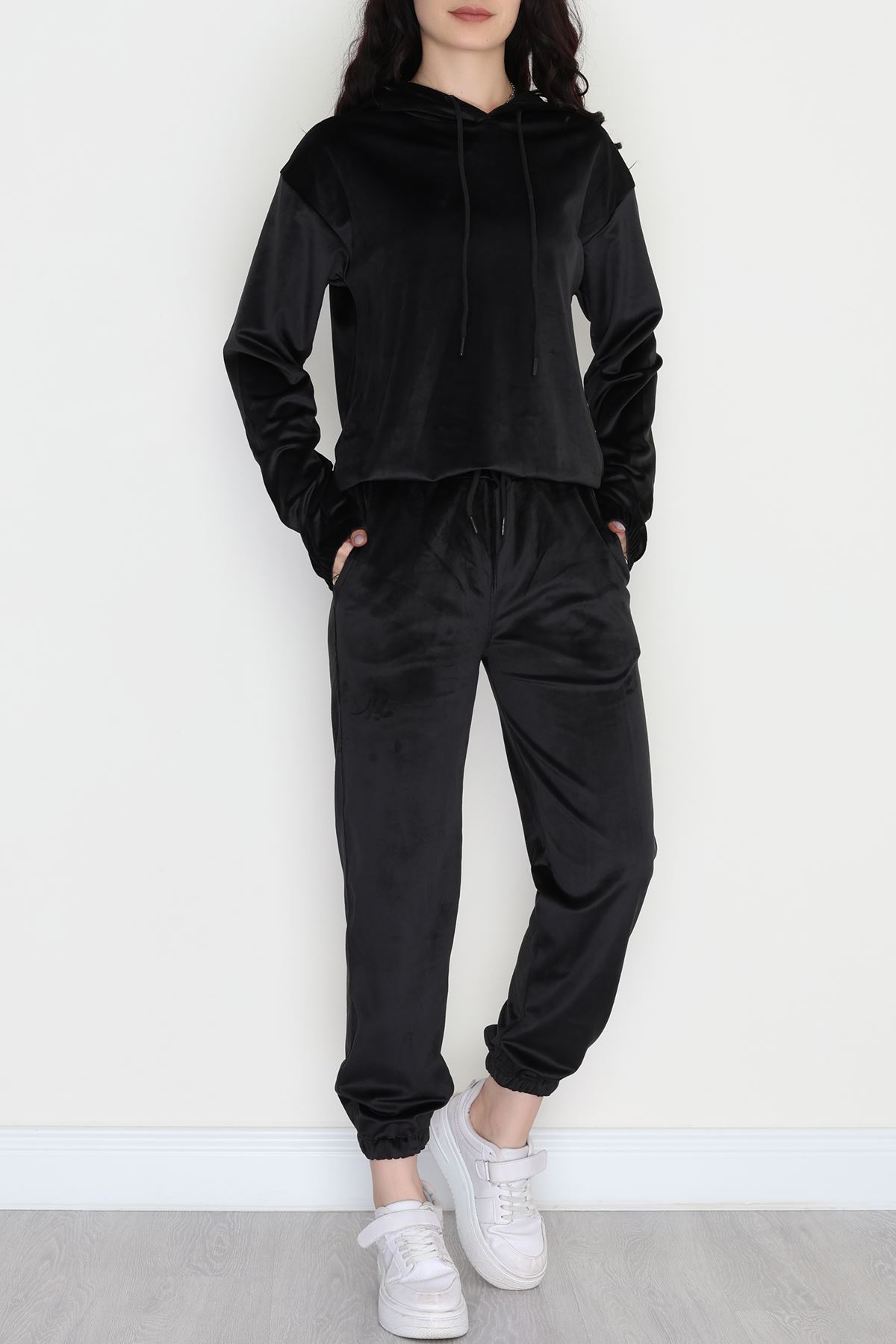 Kapşonlu Fransız Kadife Likralı Eşofman Takımı Siyah - 80903.1301.