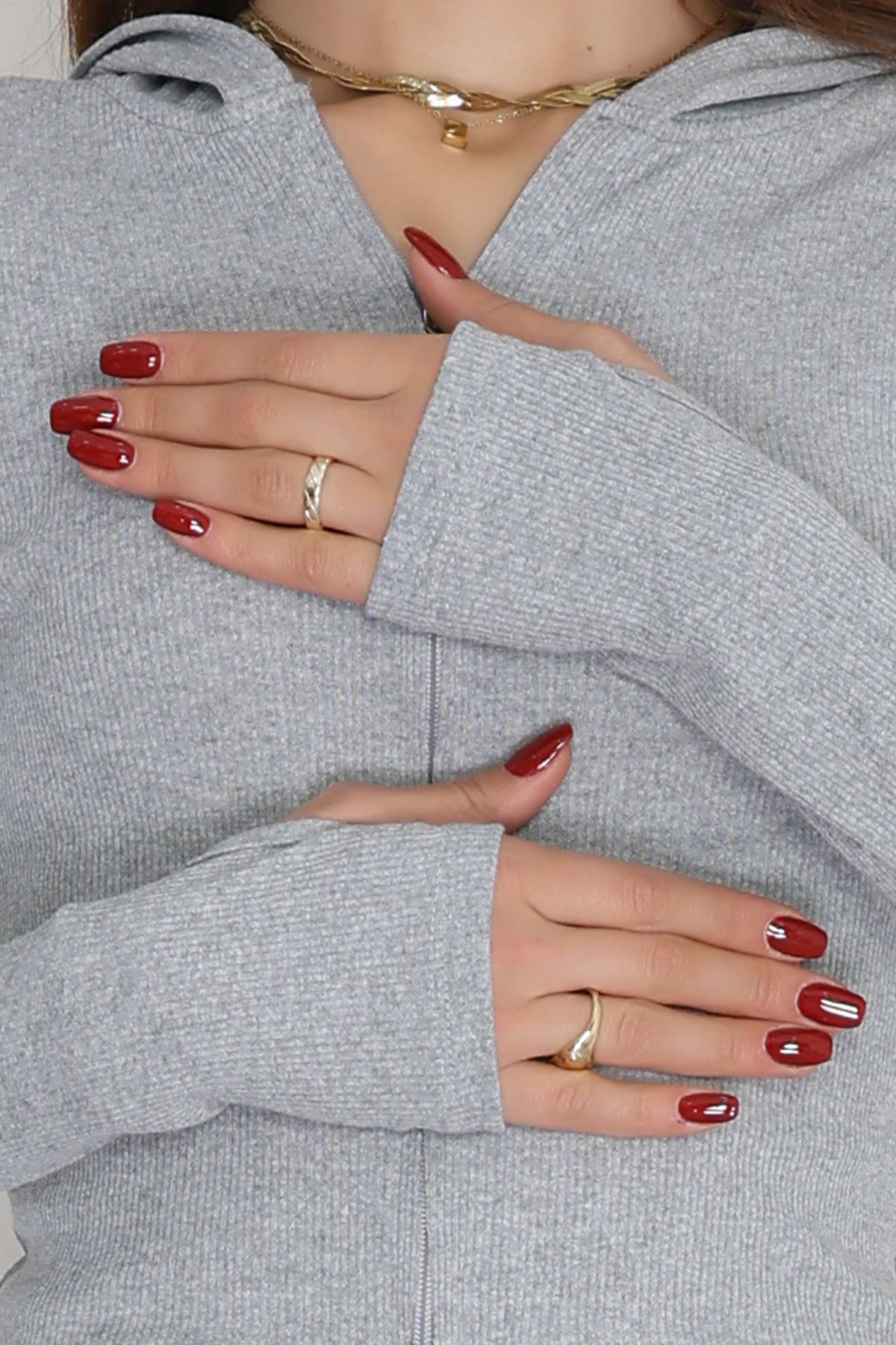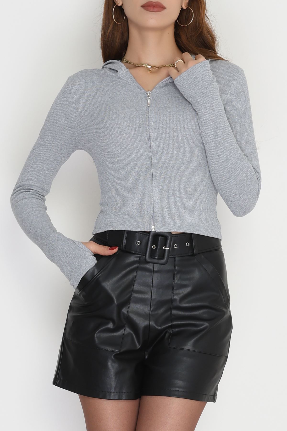 Kapşonlu Parmak Geçmeli Kaşkorse Body Gri - 70769.1748.