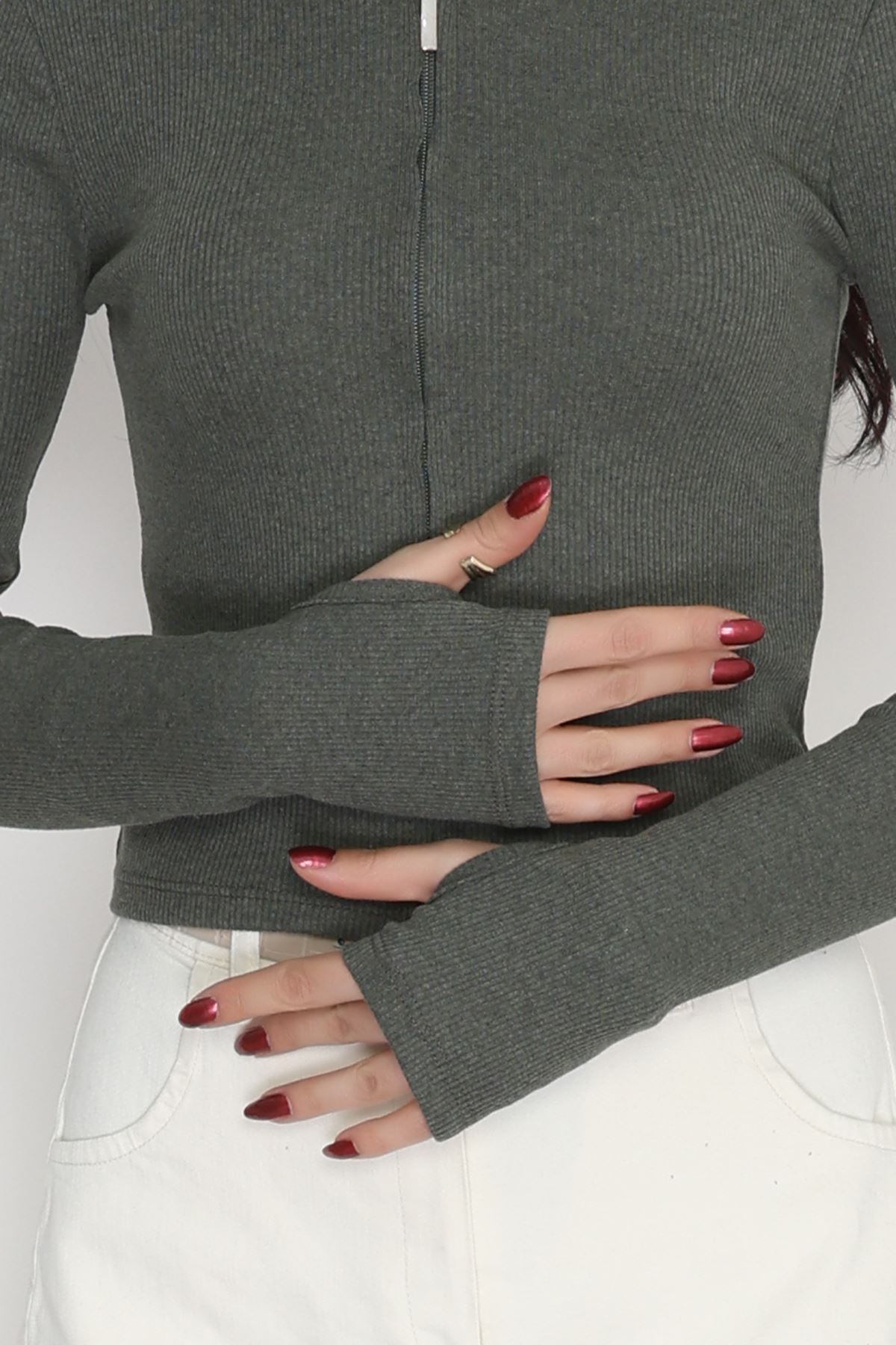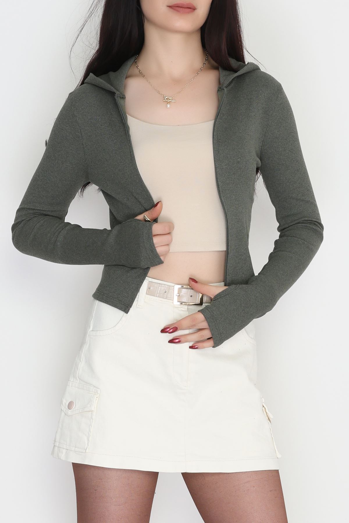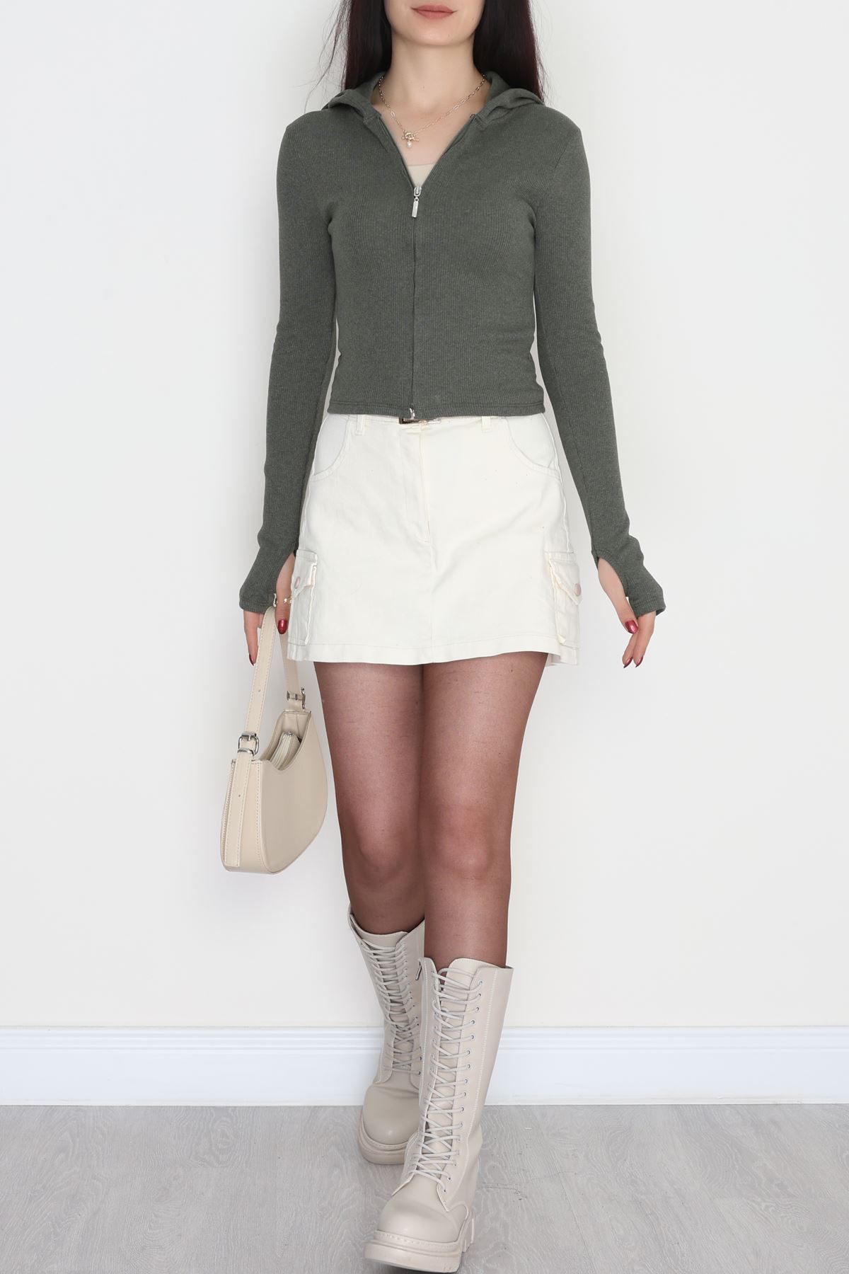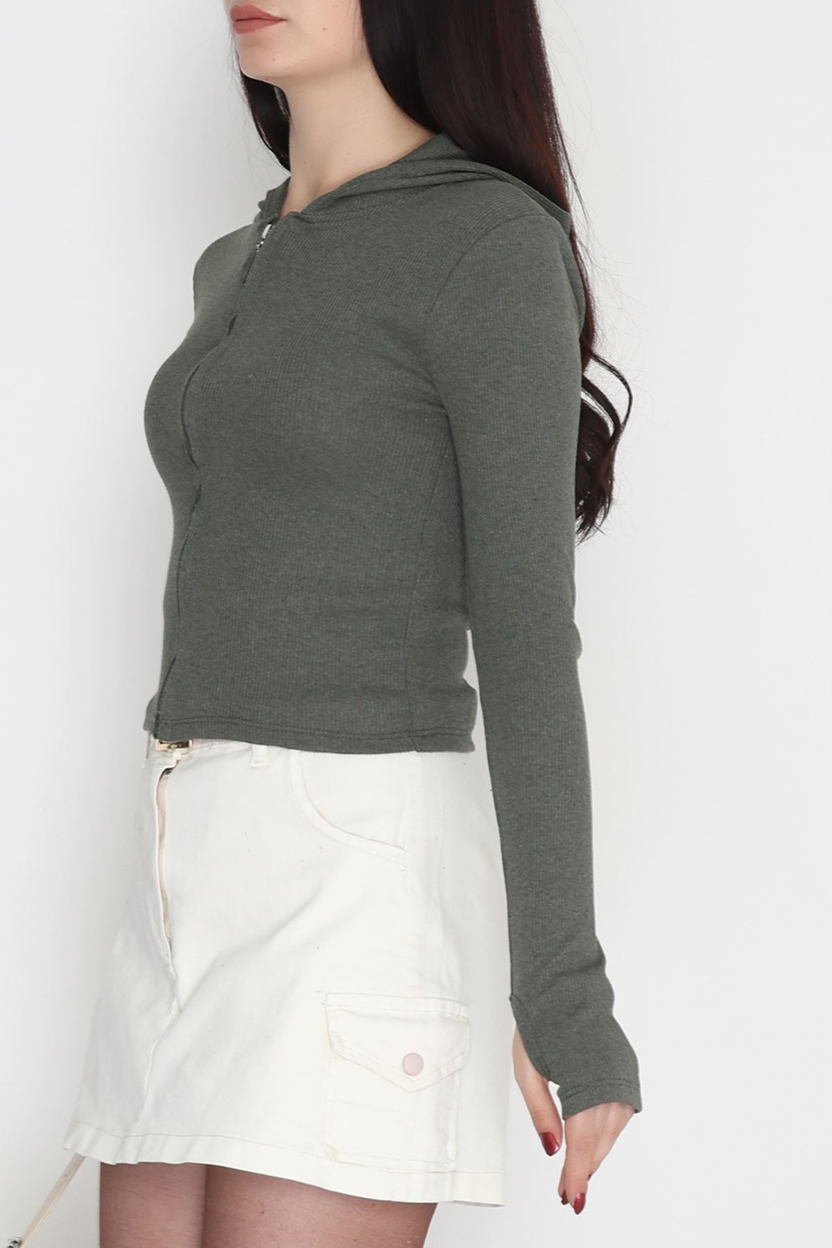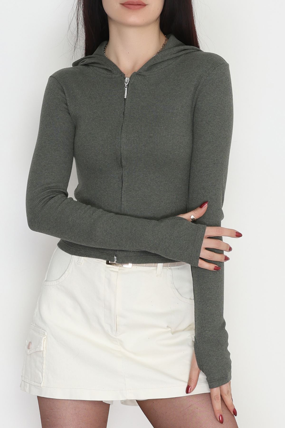 Kapşonlu Parmak Geçmeli Kaşkorse Body Haki - 70769.1748.