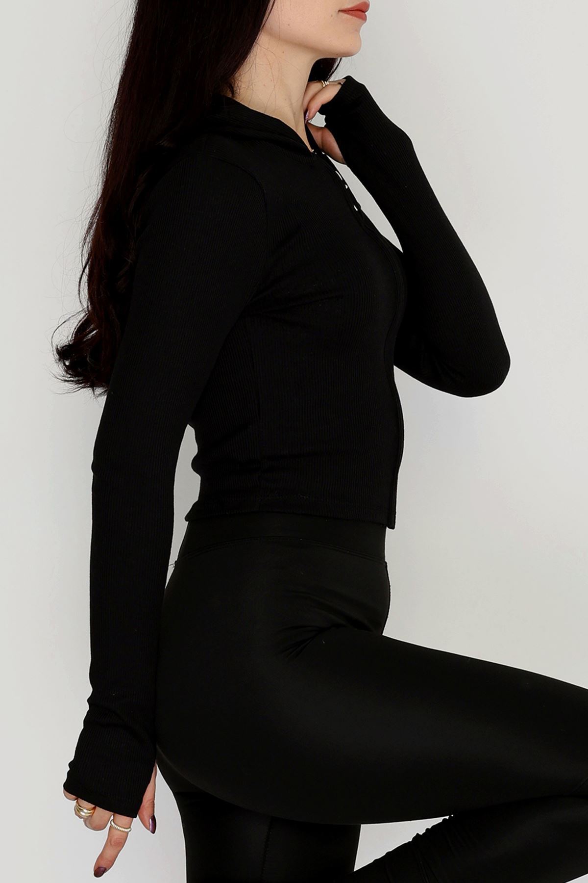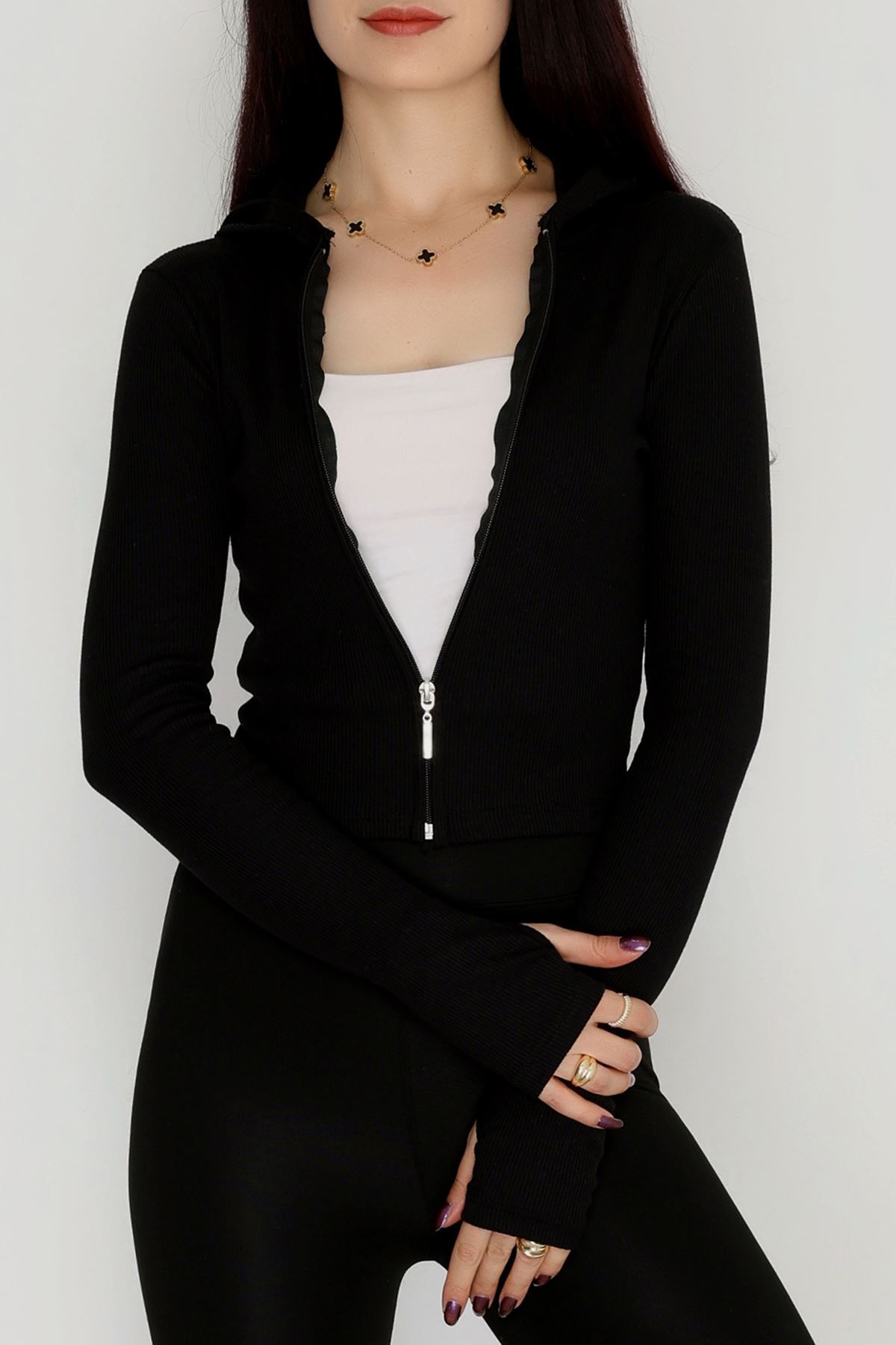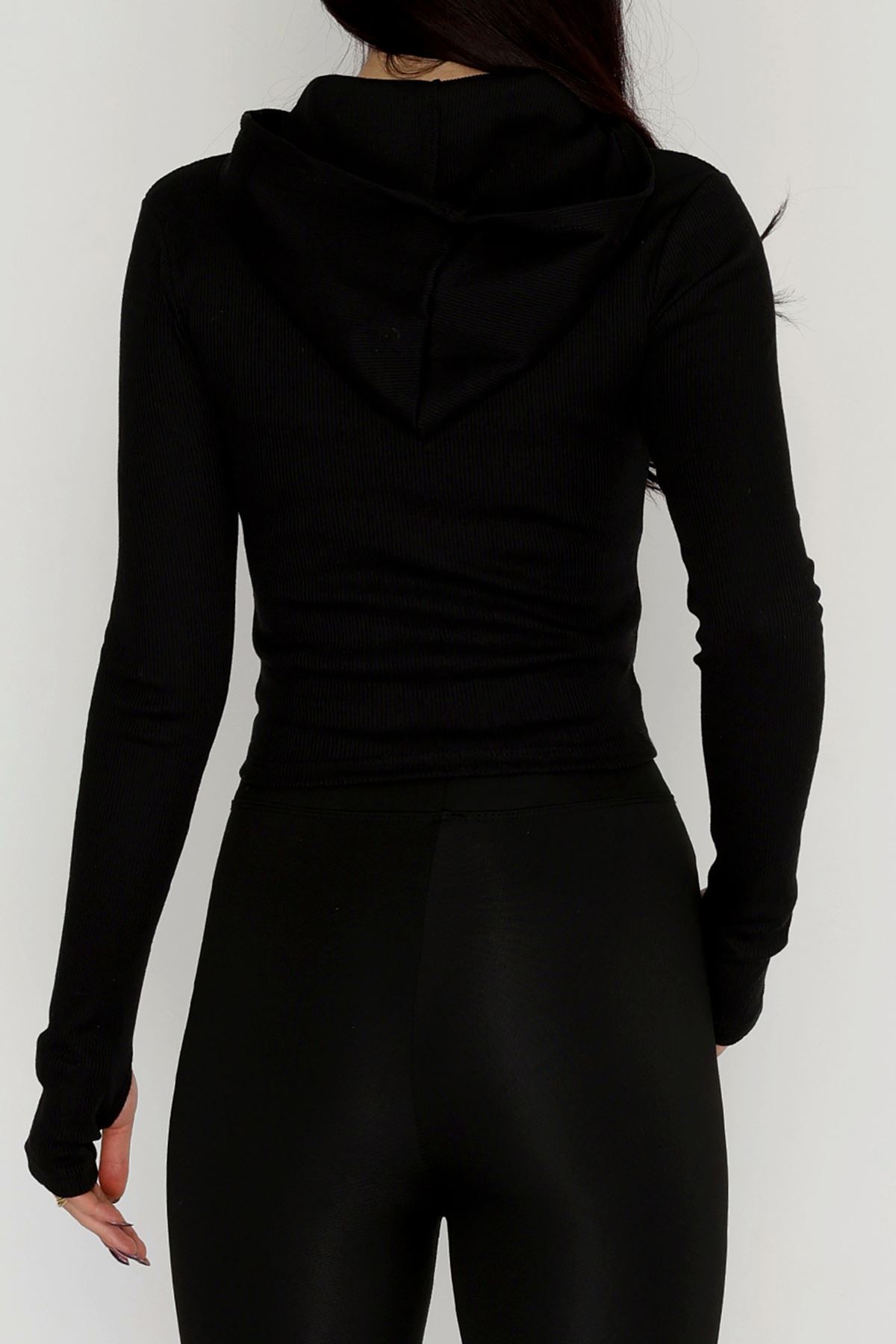 Kapşonlu Parmak Geçmeli Kaşkorse Body Siyah - 70769.1748.