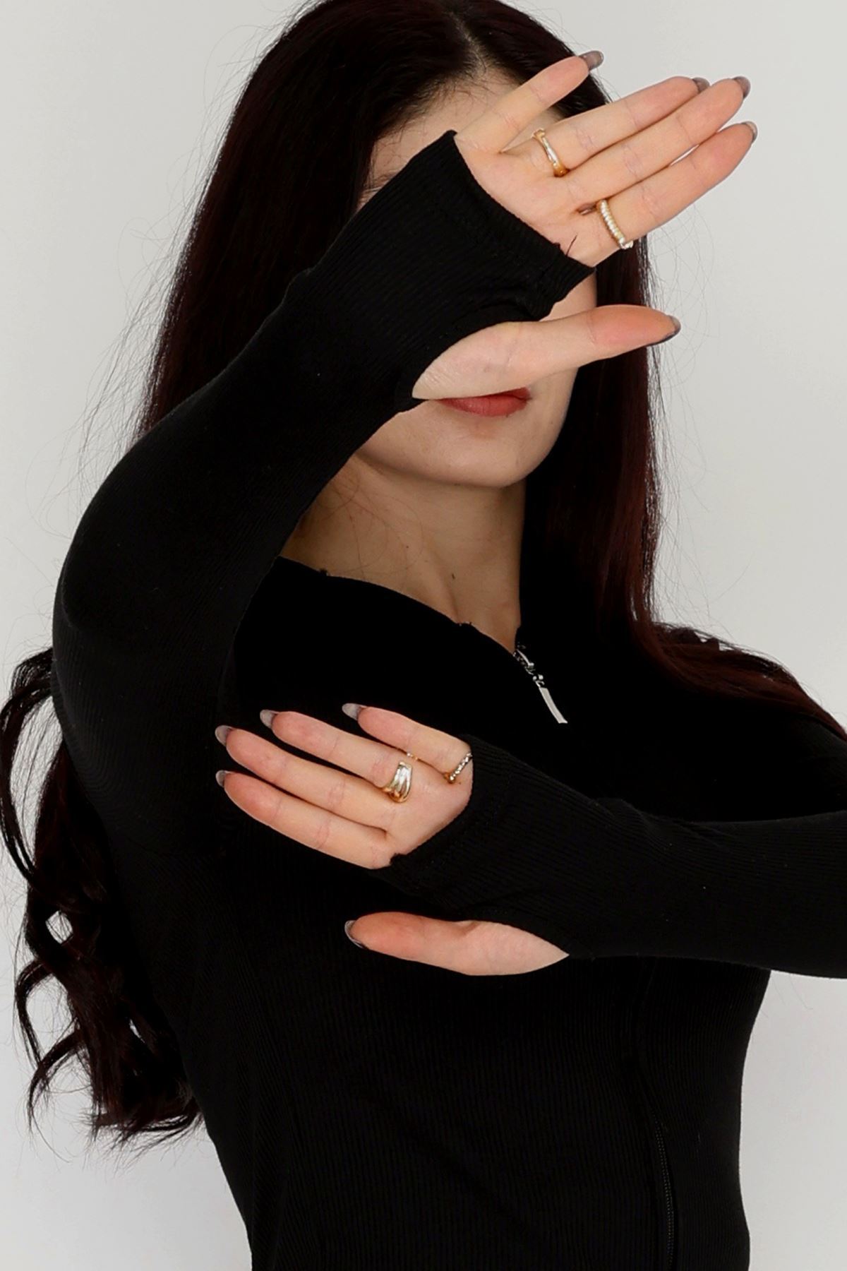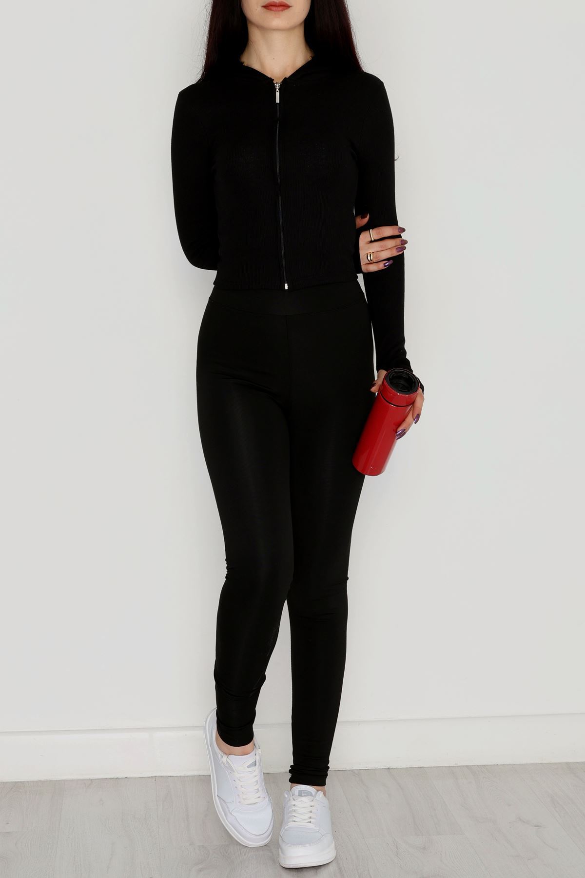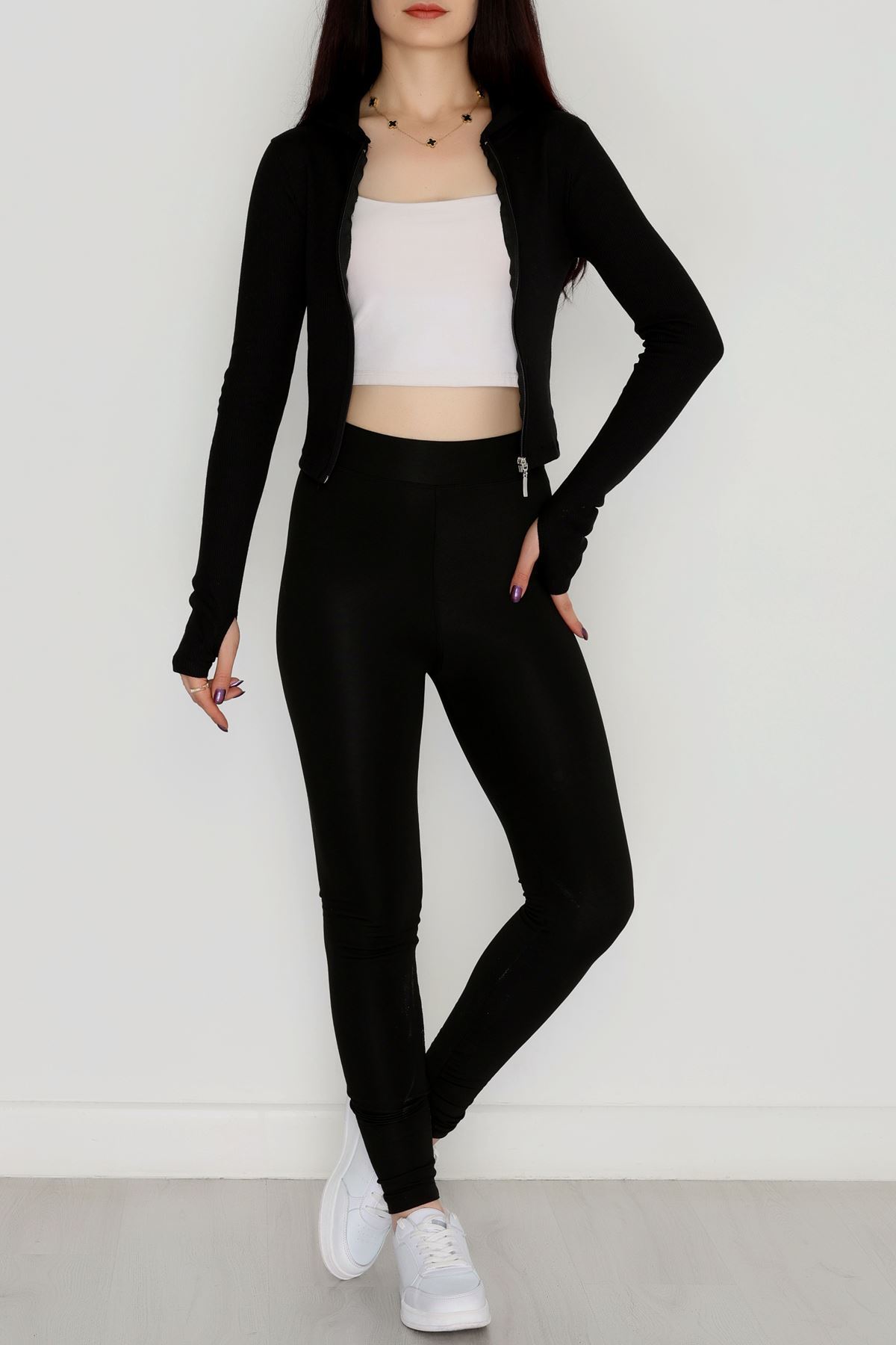 Kapşonlu Parmak Geçmeli Kaşkorse Body Siyah - 70769.1748.