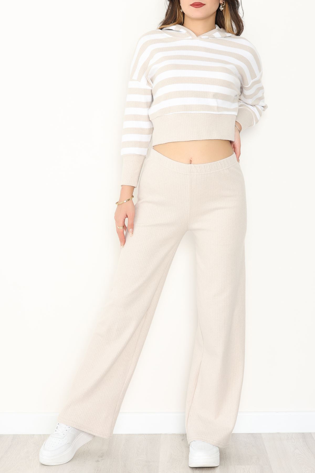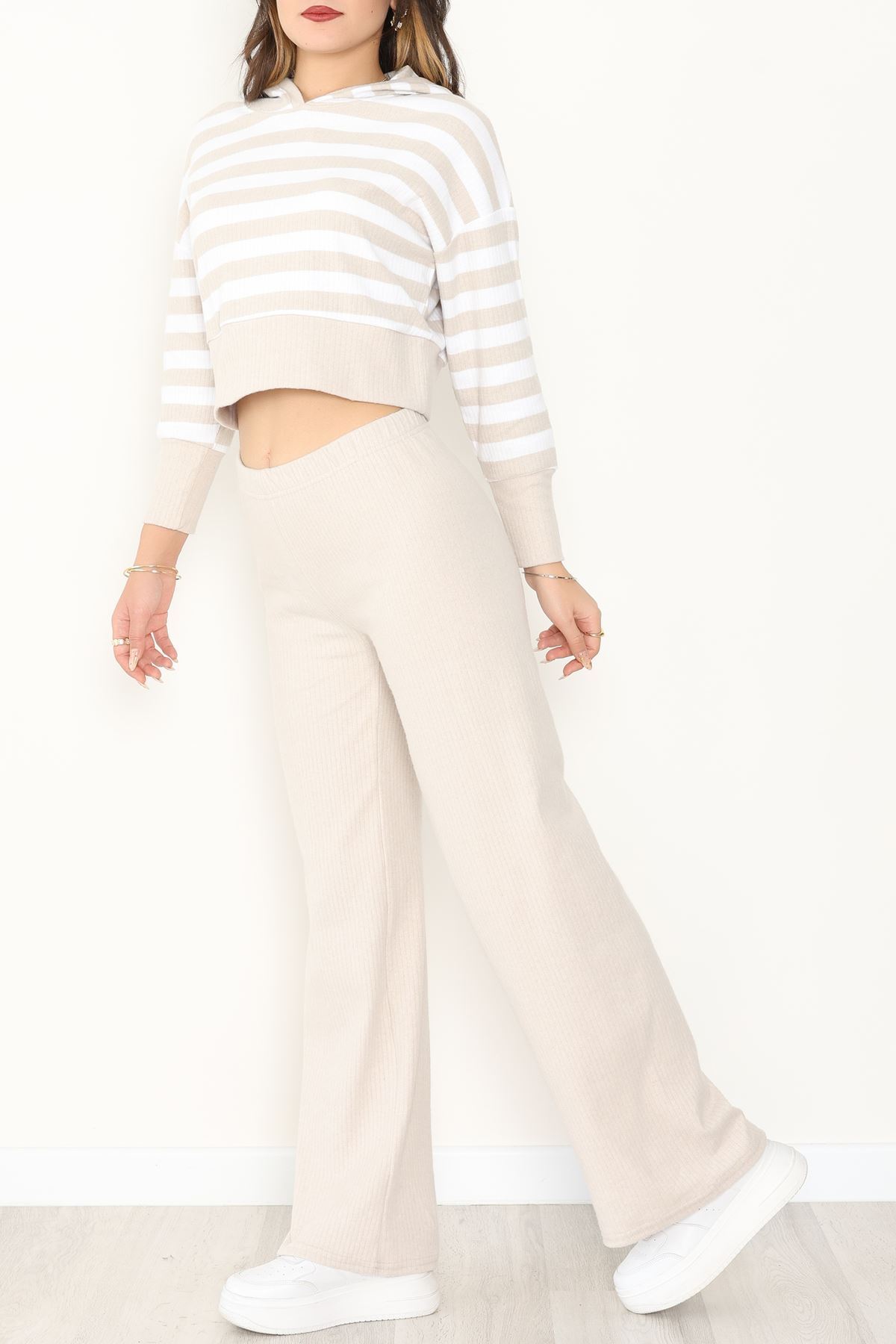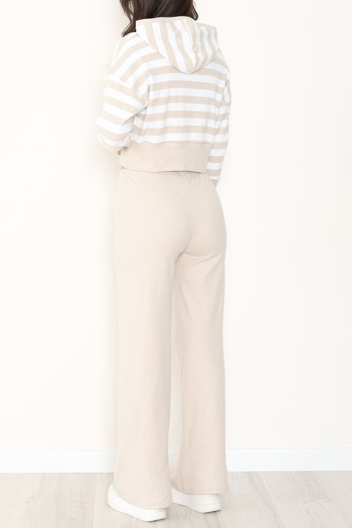 Kapşonlu Raporlu İnterlok İkili Takım Bejbeyaz - 42742.1567.