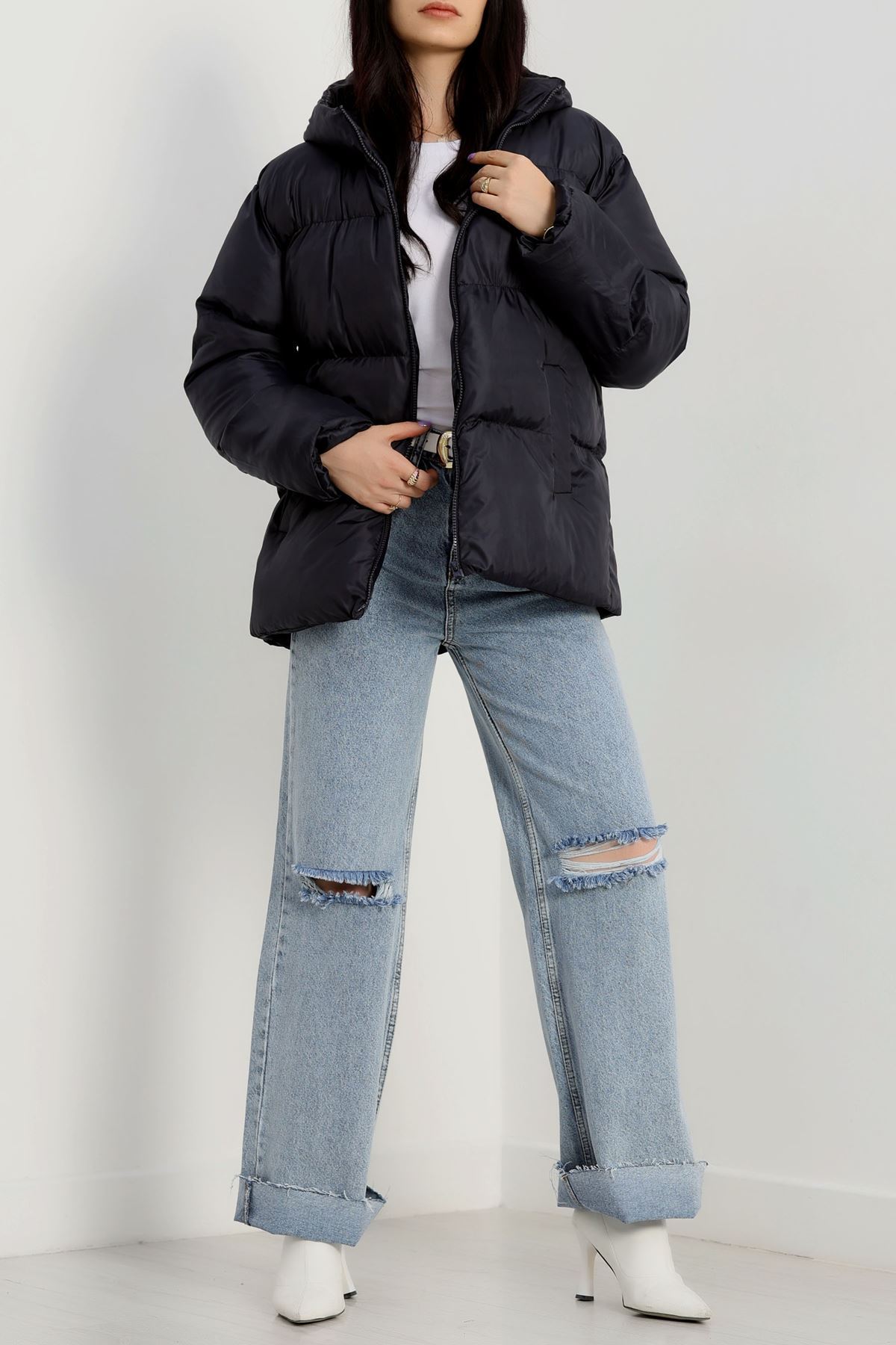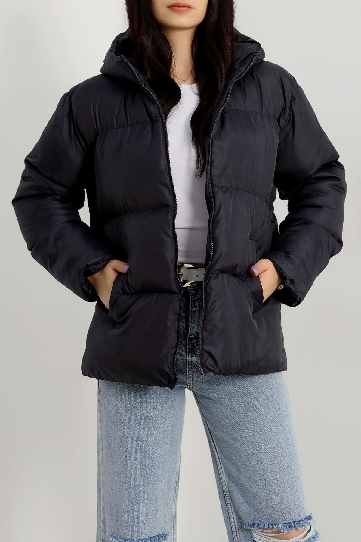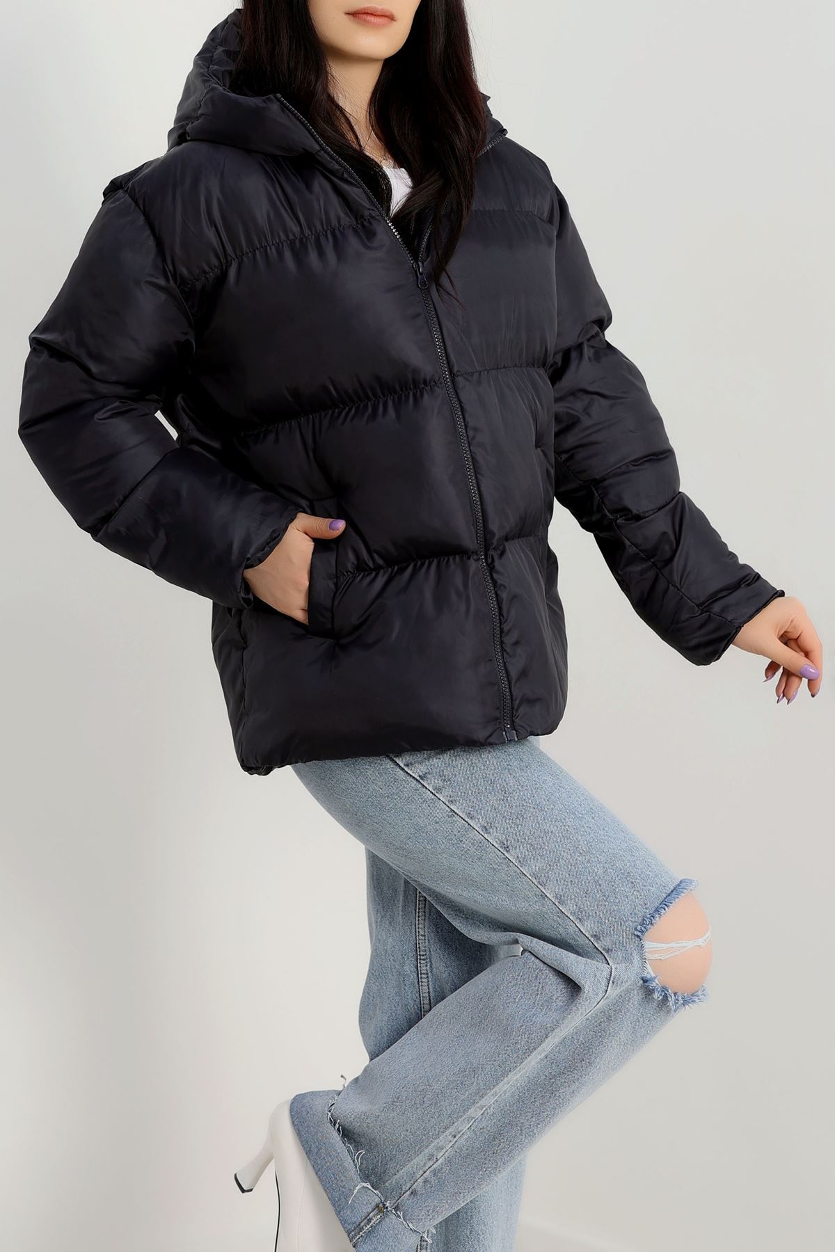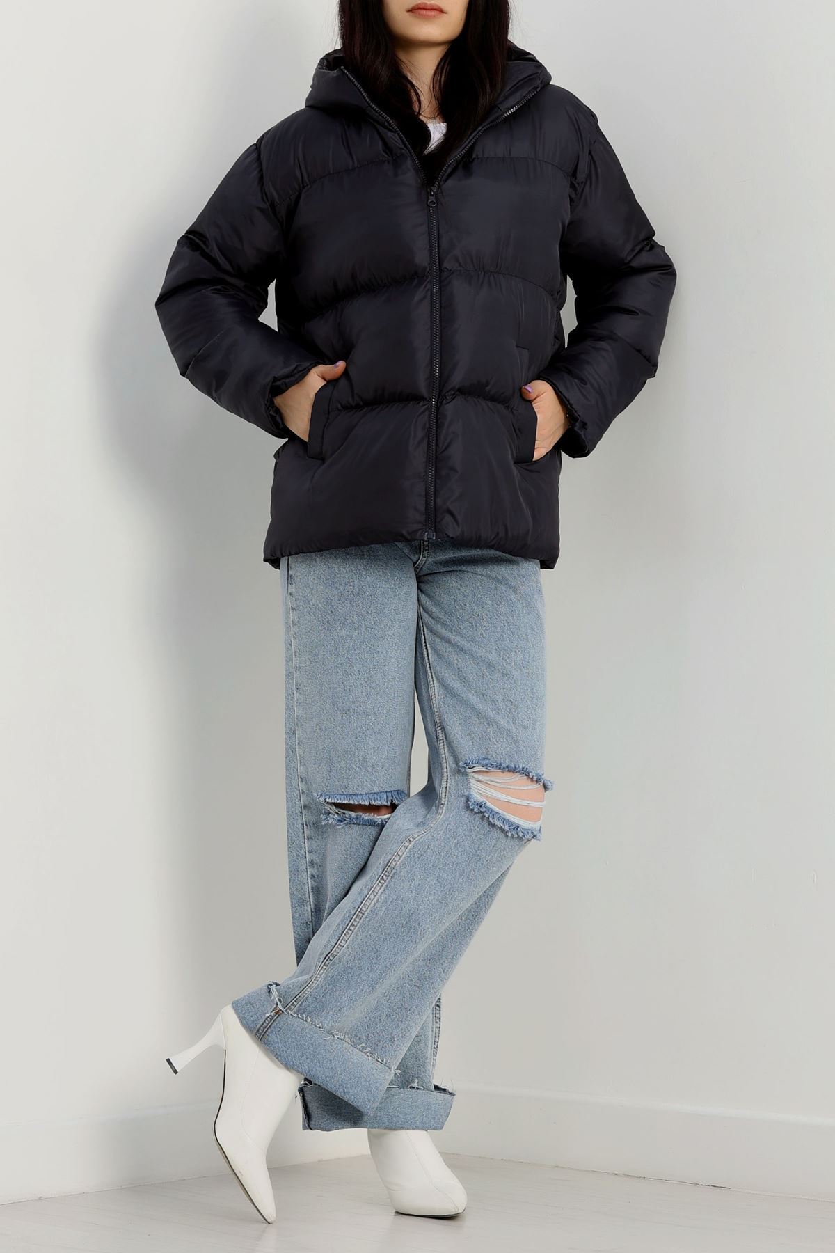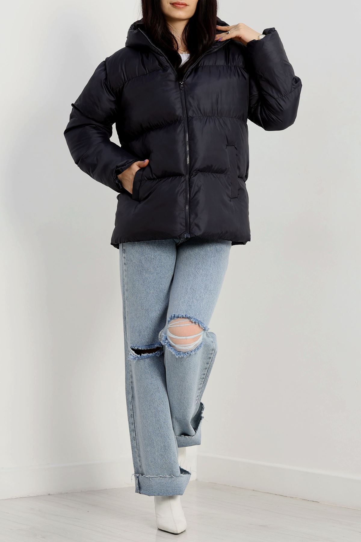 Kapşonlu Şişme Mont Lacivert - 19191.1839.