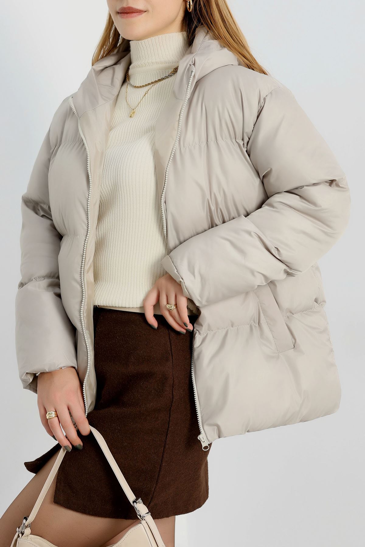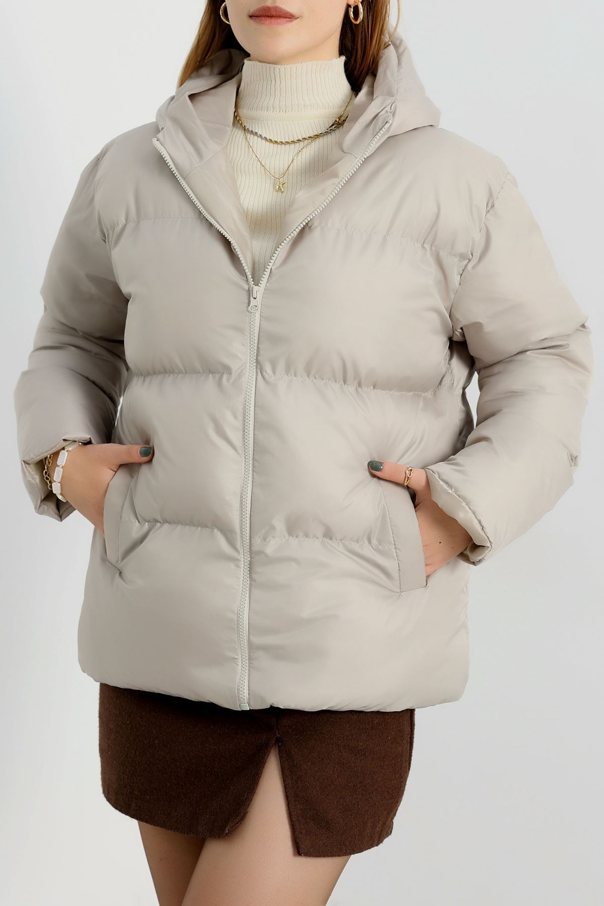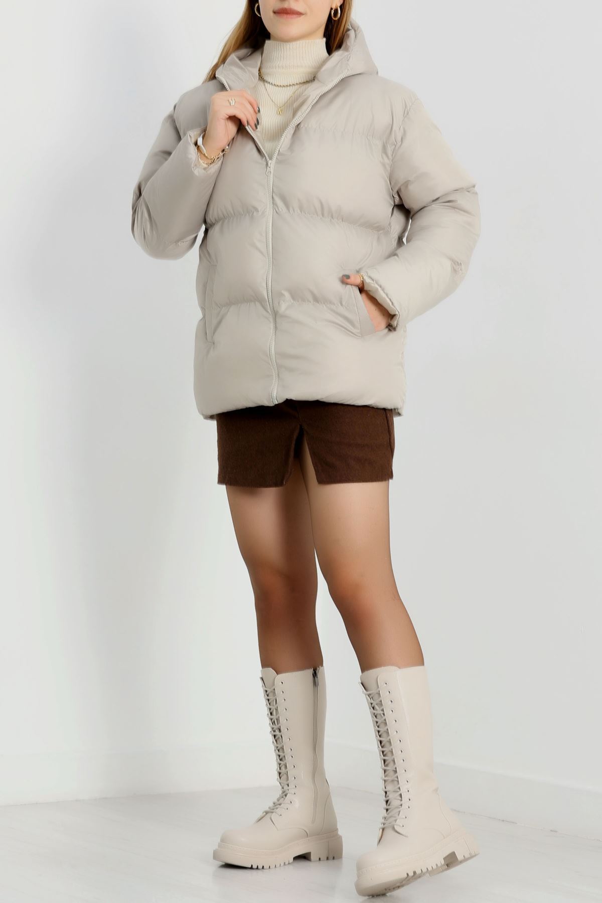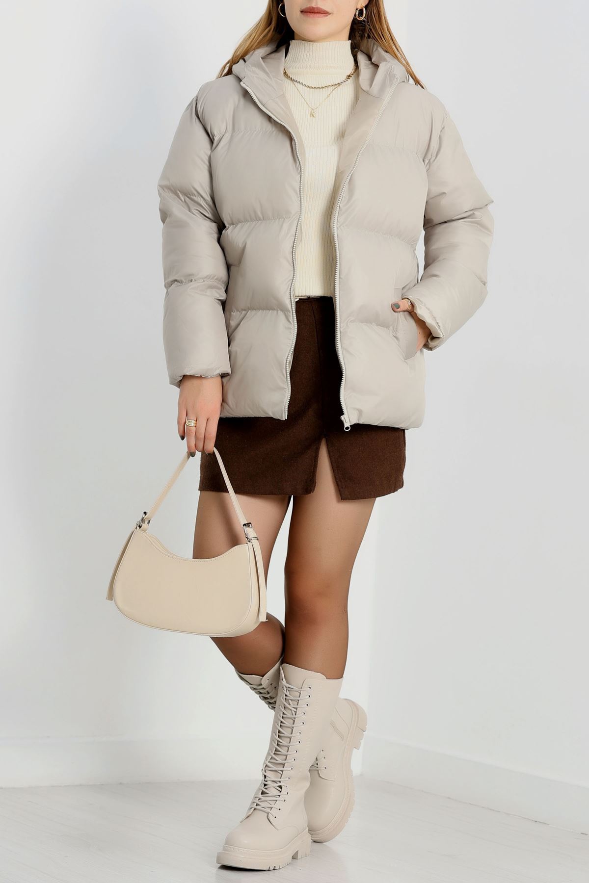 Kapşonlu Şişme Mont Taş - 19191.1839.