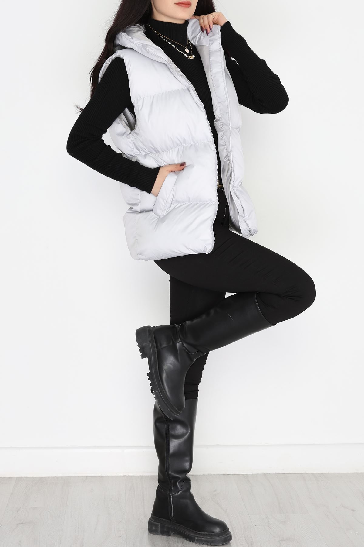 Uzun Şişme Yelek Siyah - 31197.1988.