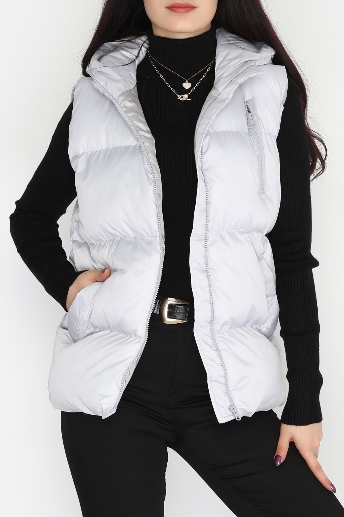 Kapşonlu Şişme Yelek Uzaygri - 19190.1839.