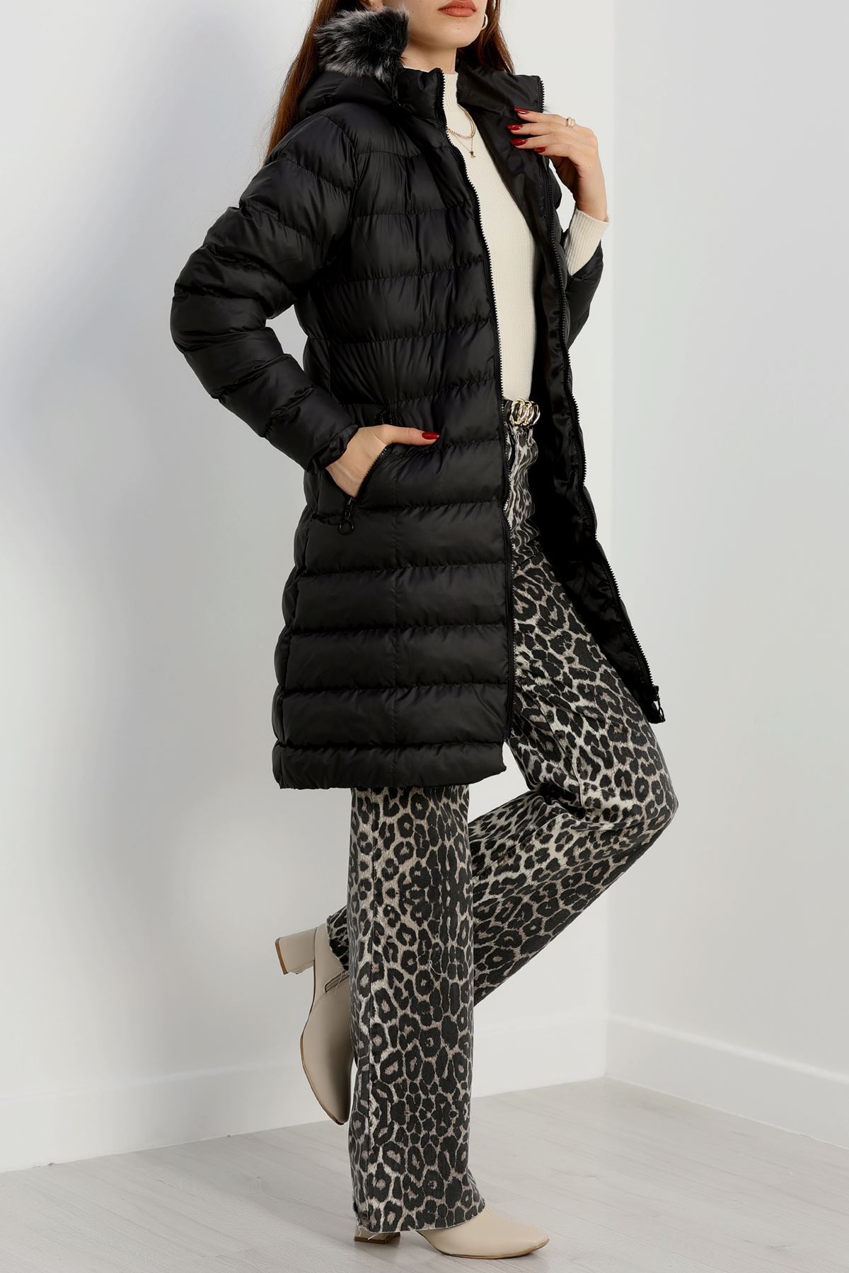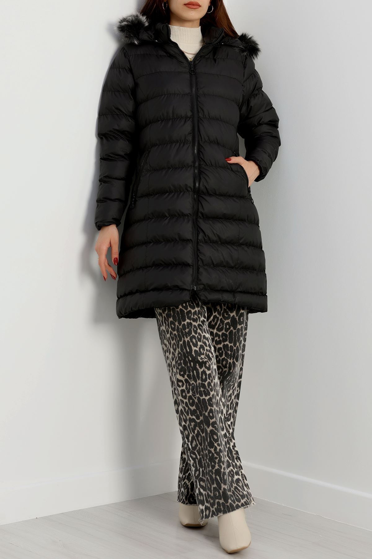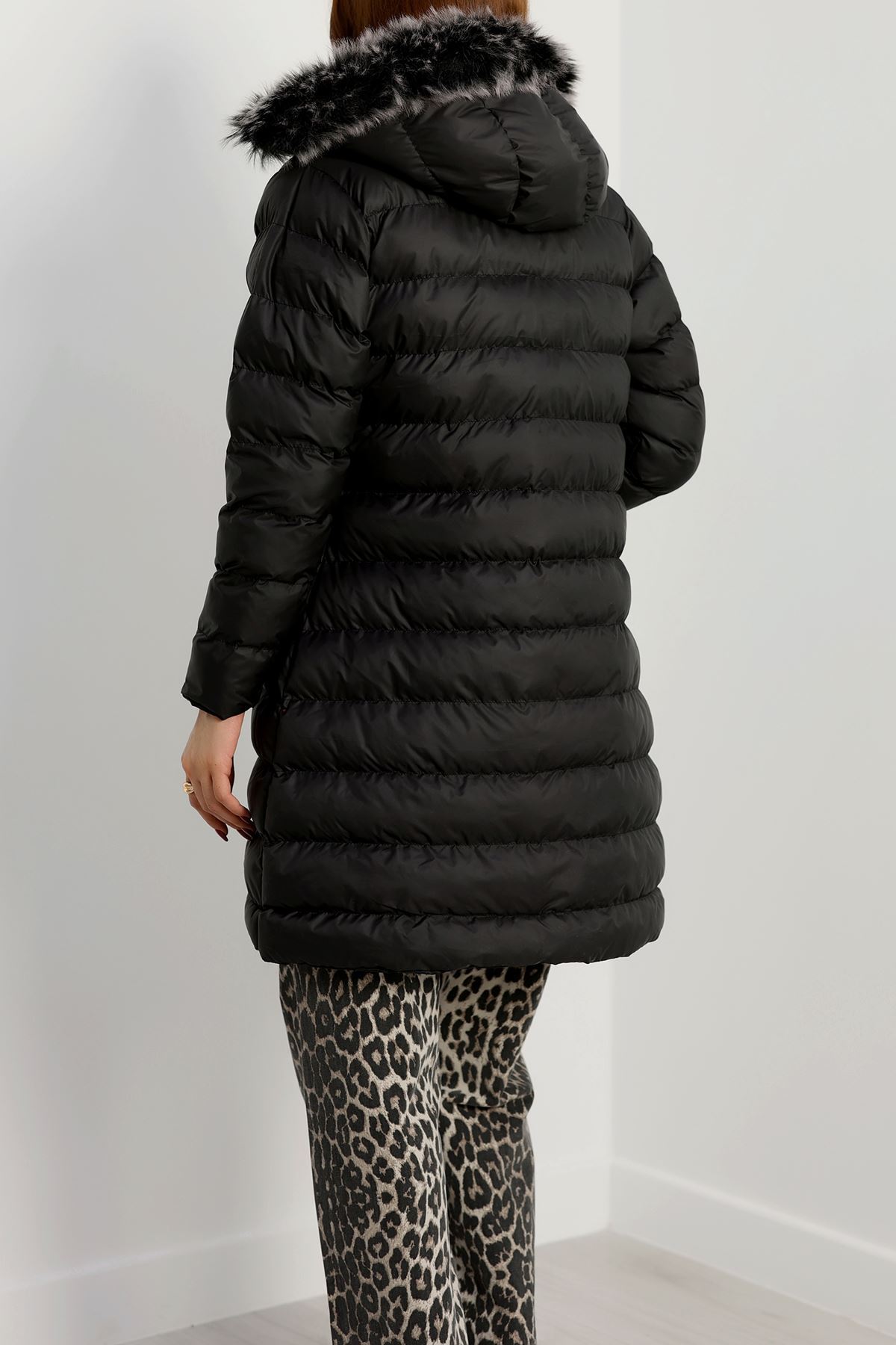 Kapşonlu Uzun Mont Siyah - 31196.1988.