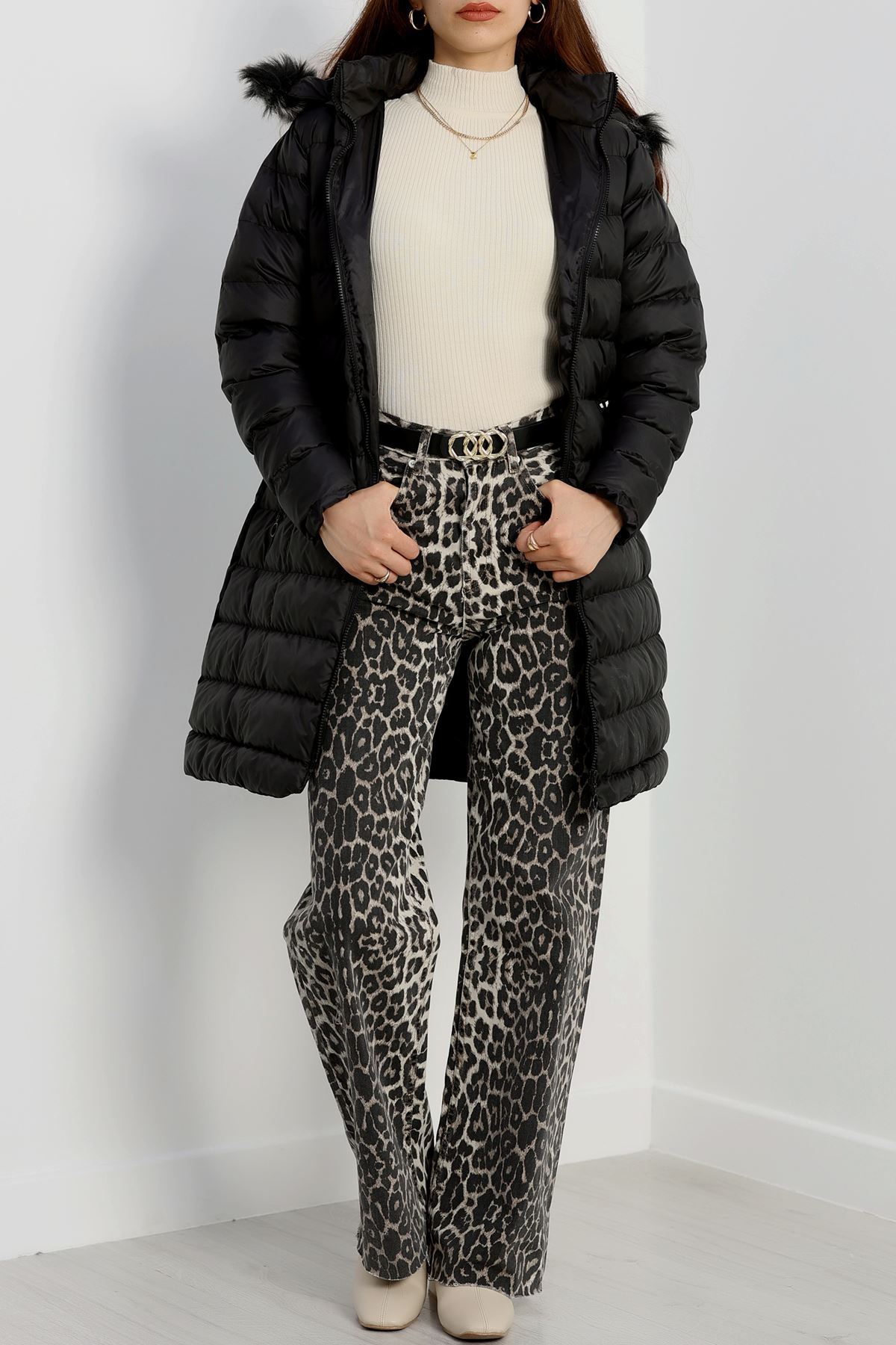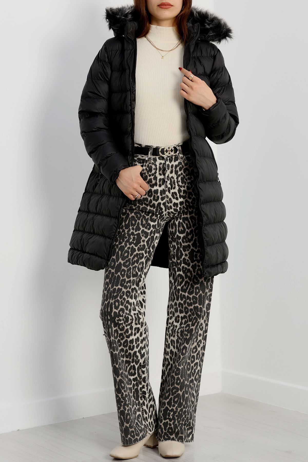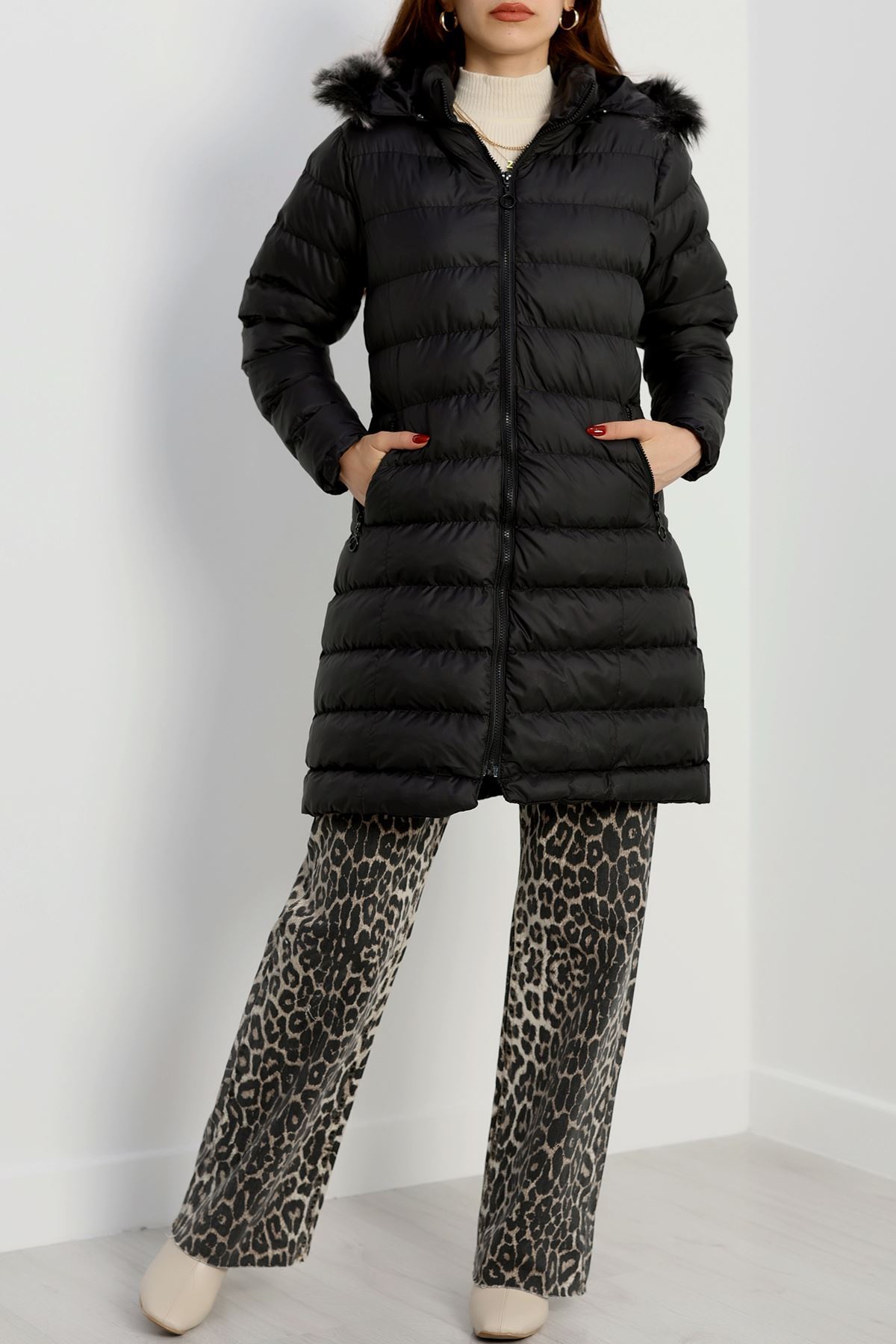 Kapşonlu Uzun Mont Siyah - 31196.1988.