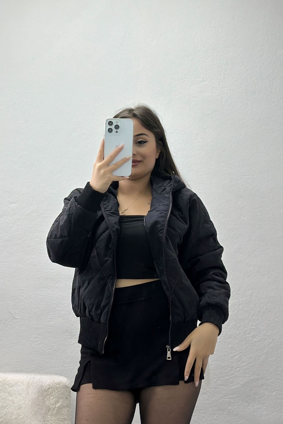 Kapüşonlu Şişme Mont Siyah - 90036.1839.