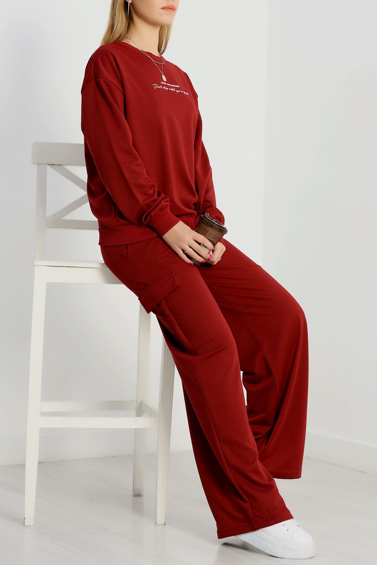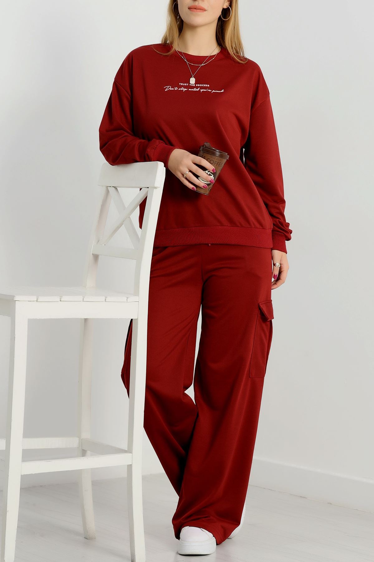 Kargo Cep 2 İplik Eşofman Takımı Bordo - 50802.1857.
