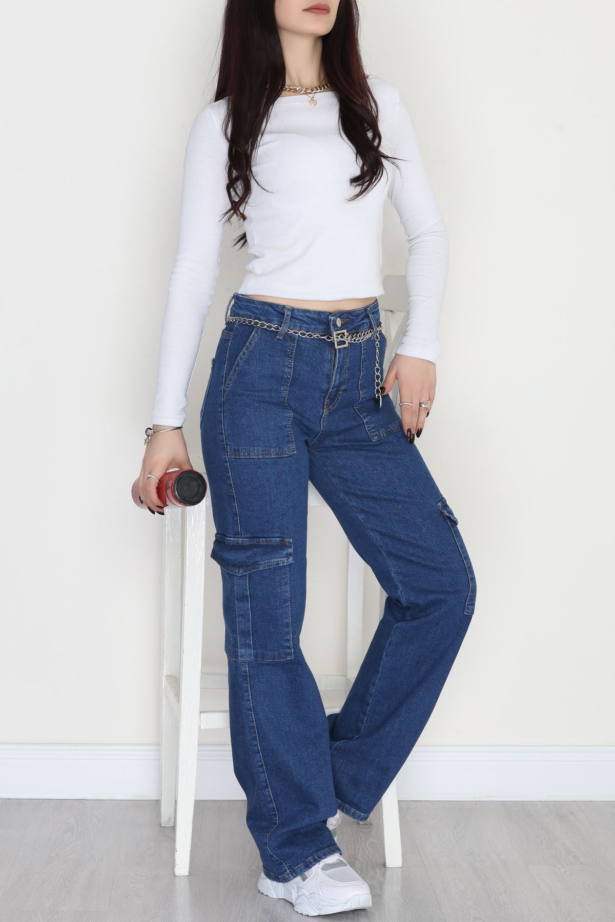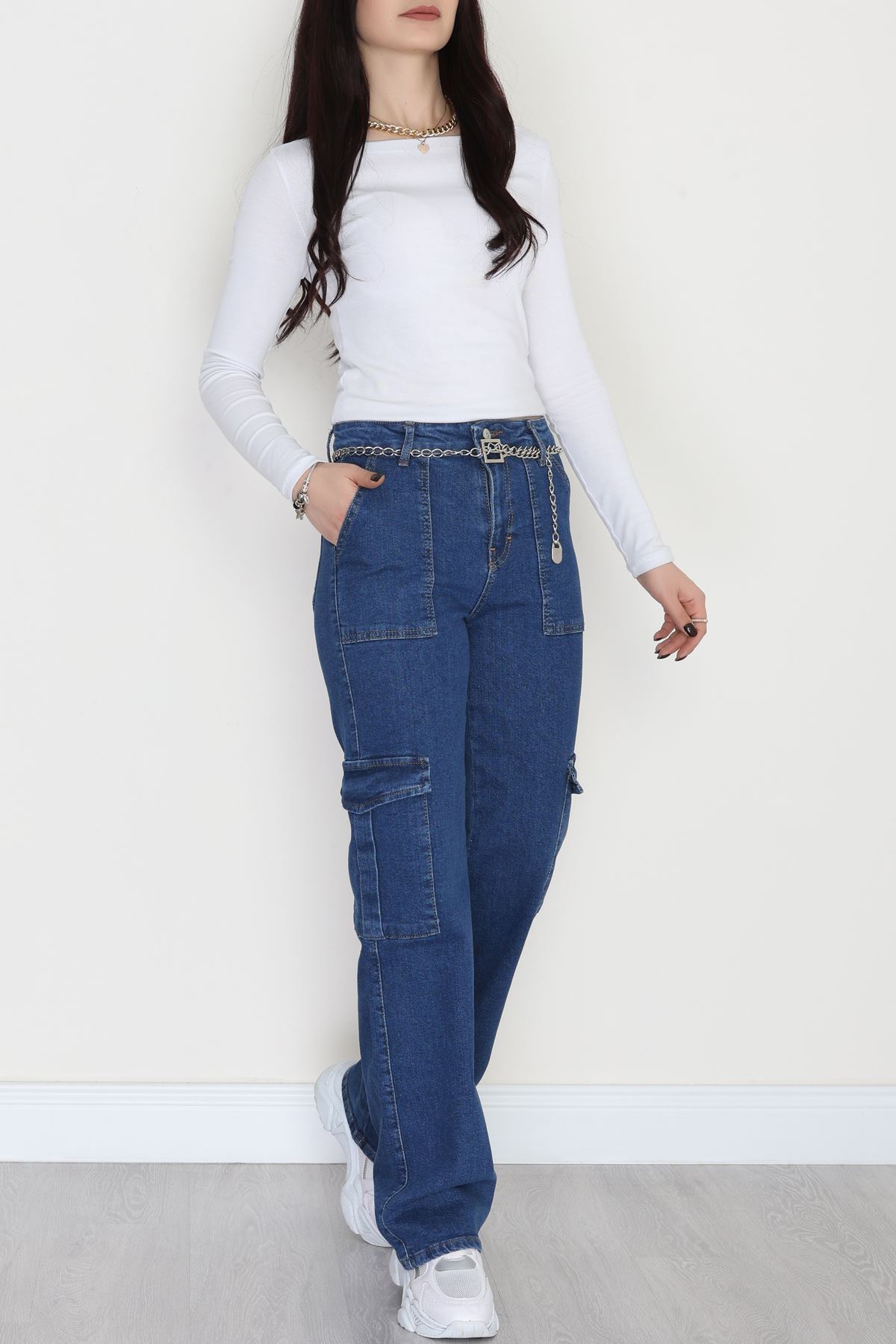 Tokalı Baggy Kot Pantolon Lacivert - 31581.1184.
