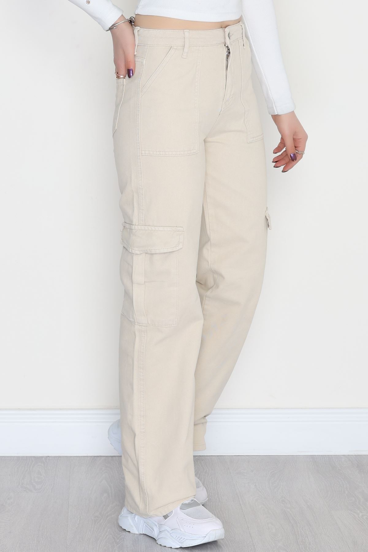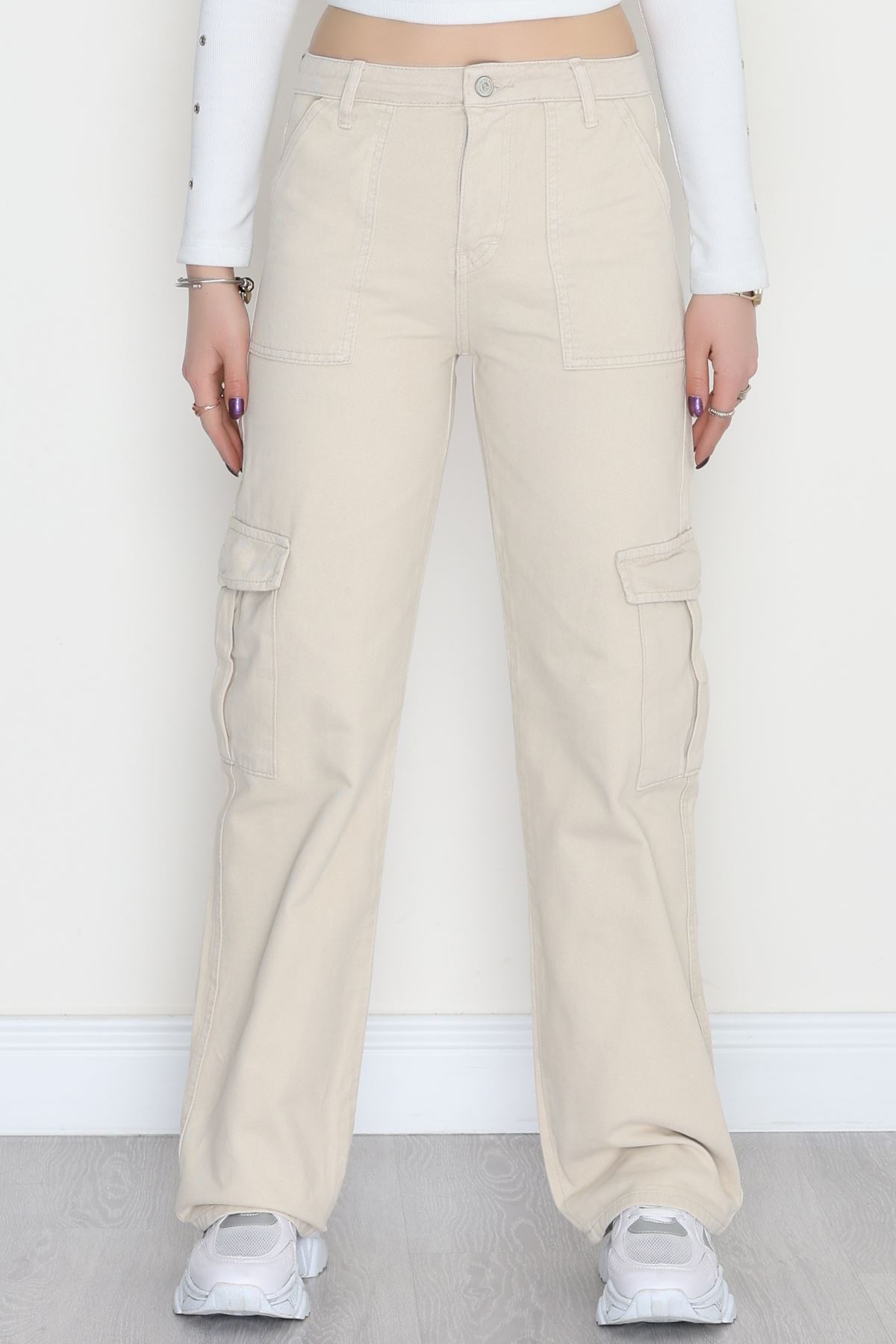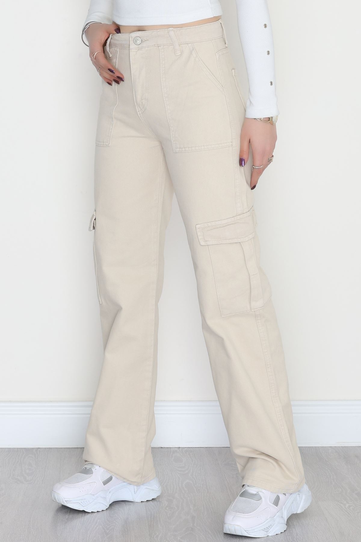 Kargo Cep Palazzo Kot Pantolon Taş - 42681.1836.