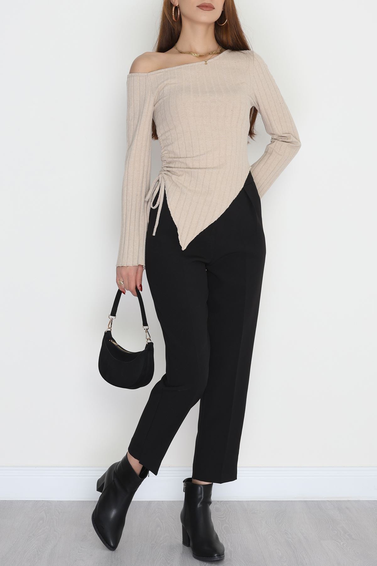 Kayık Yaka Likralı İnterlok Fitilli Body Bej - 90965.1748.