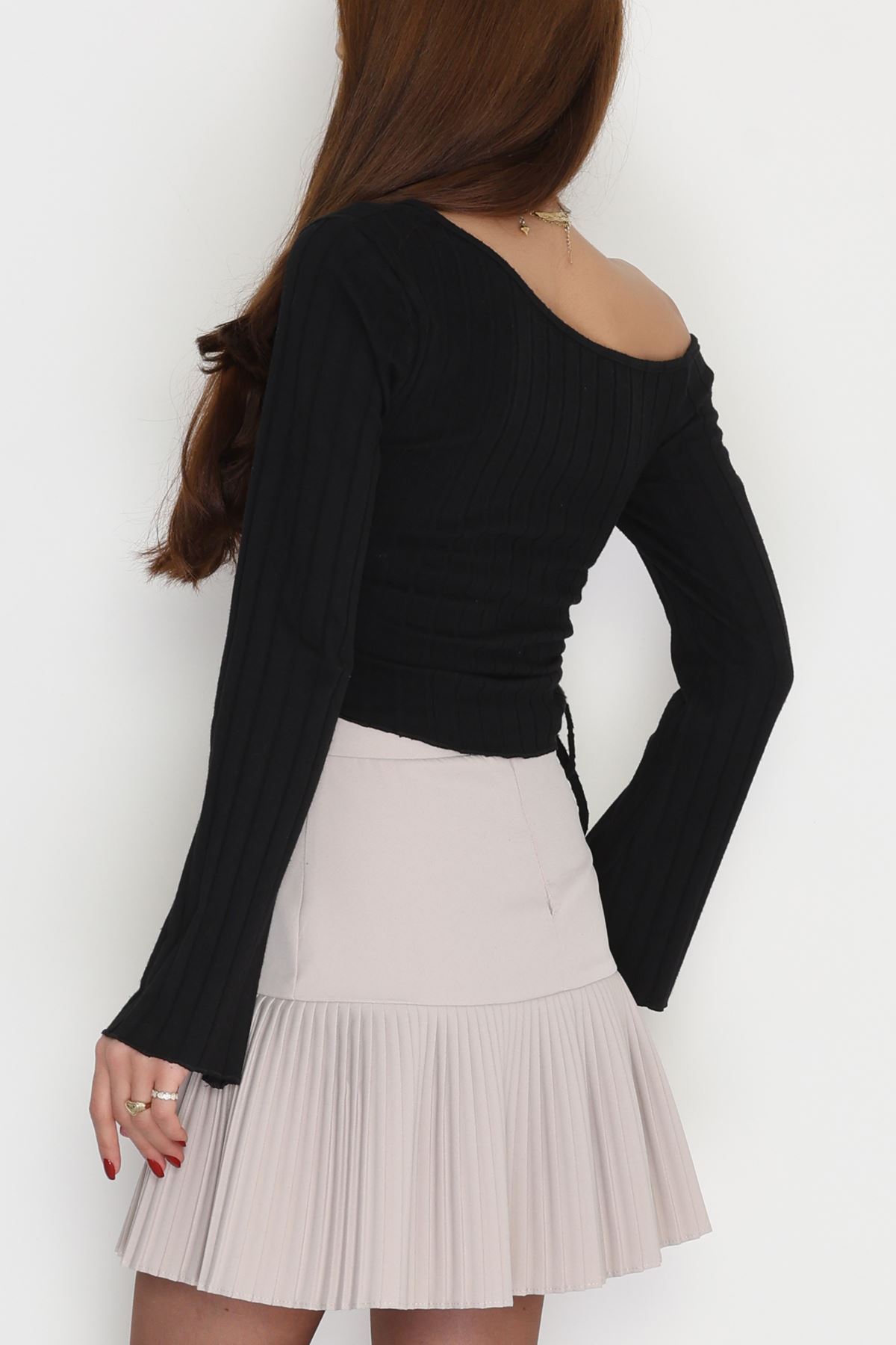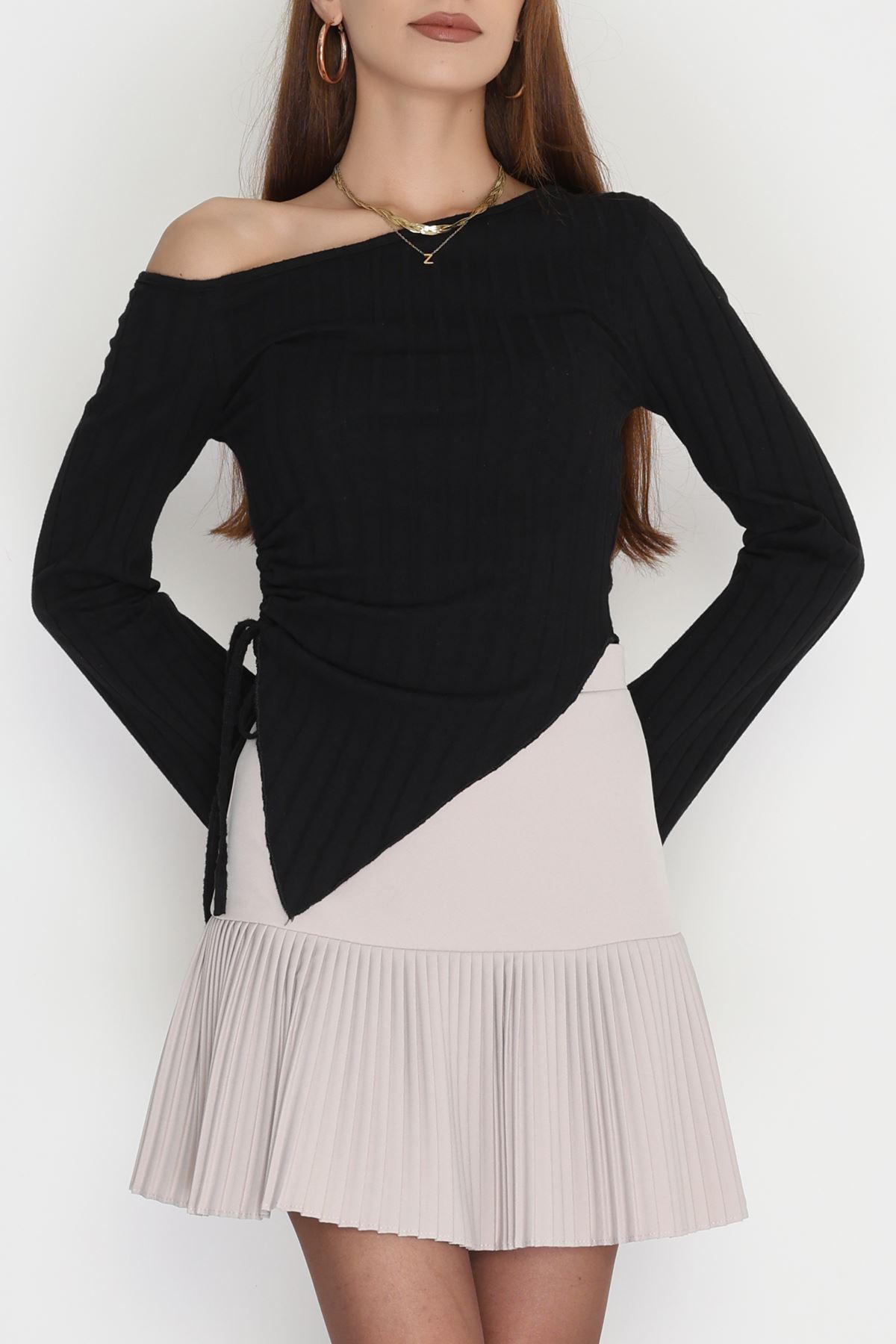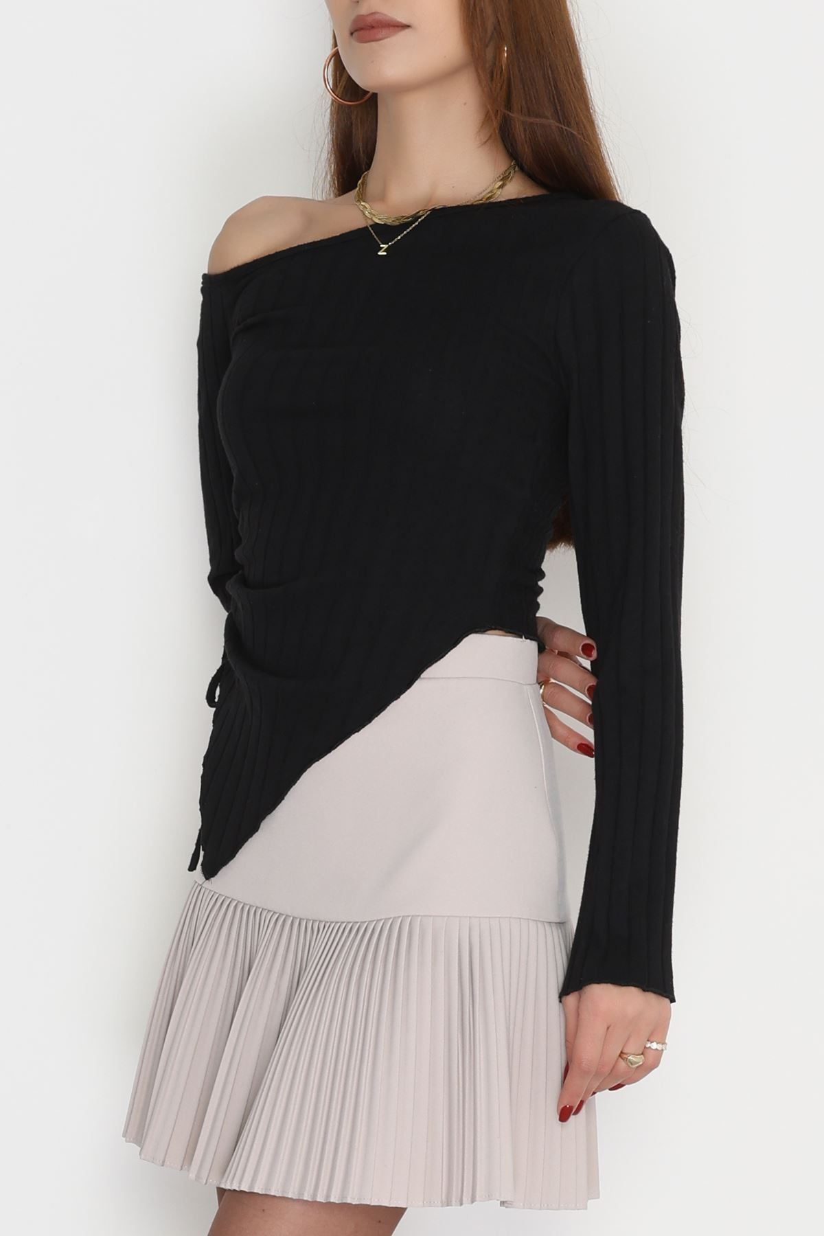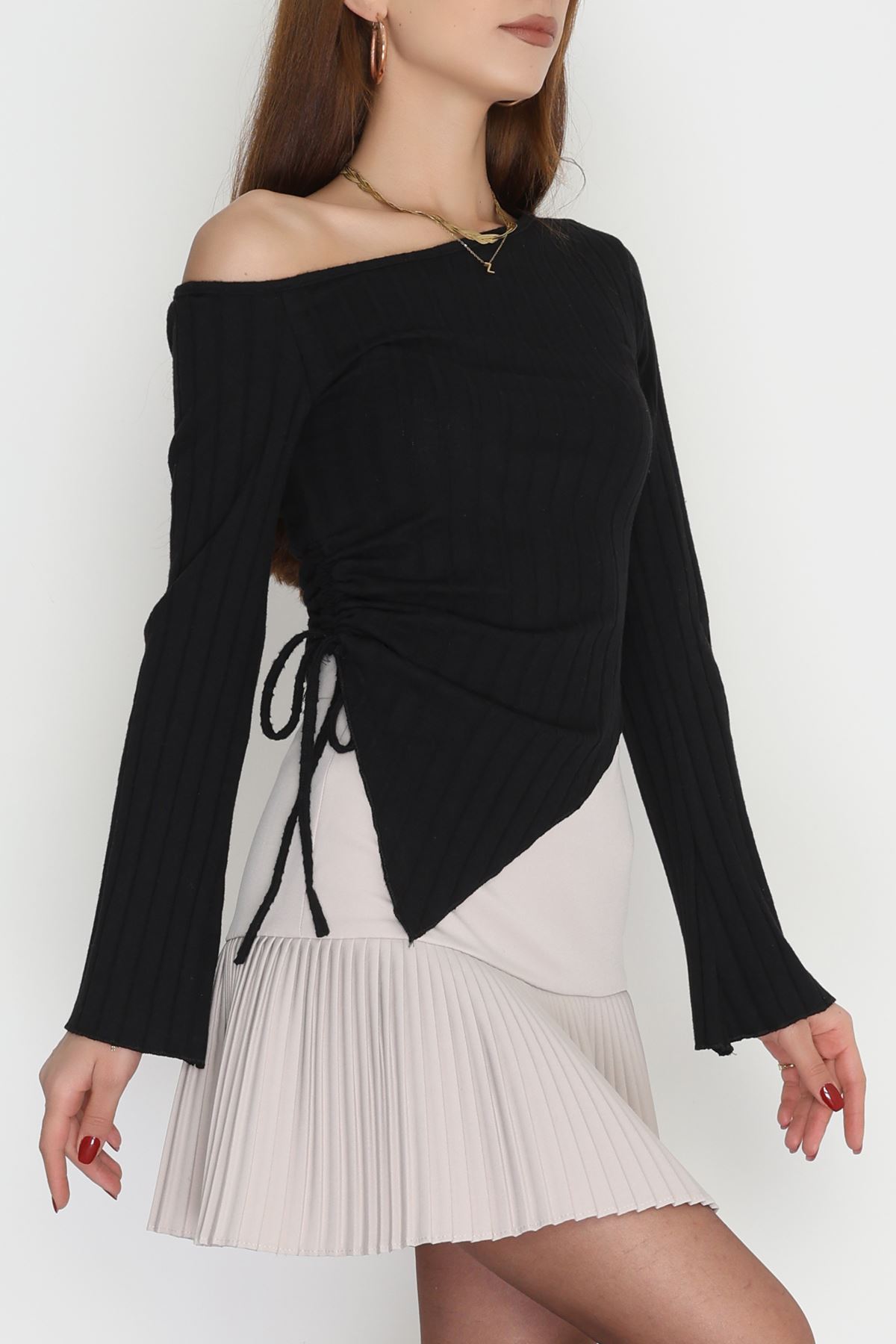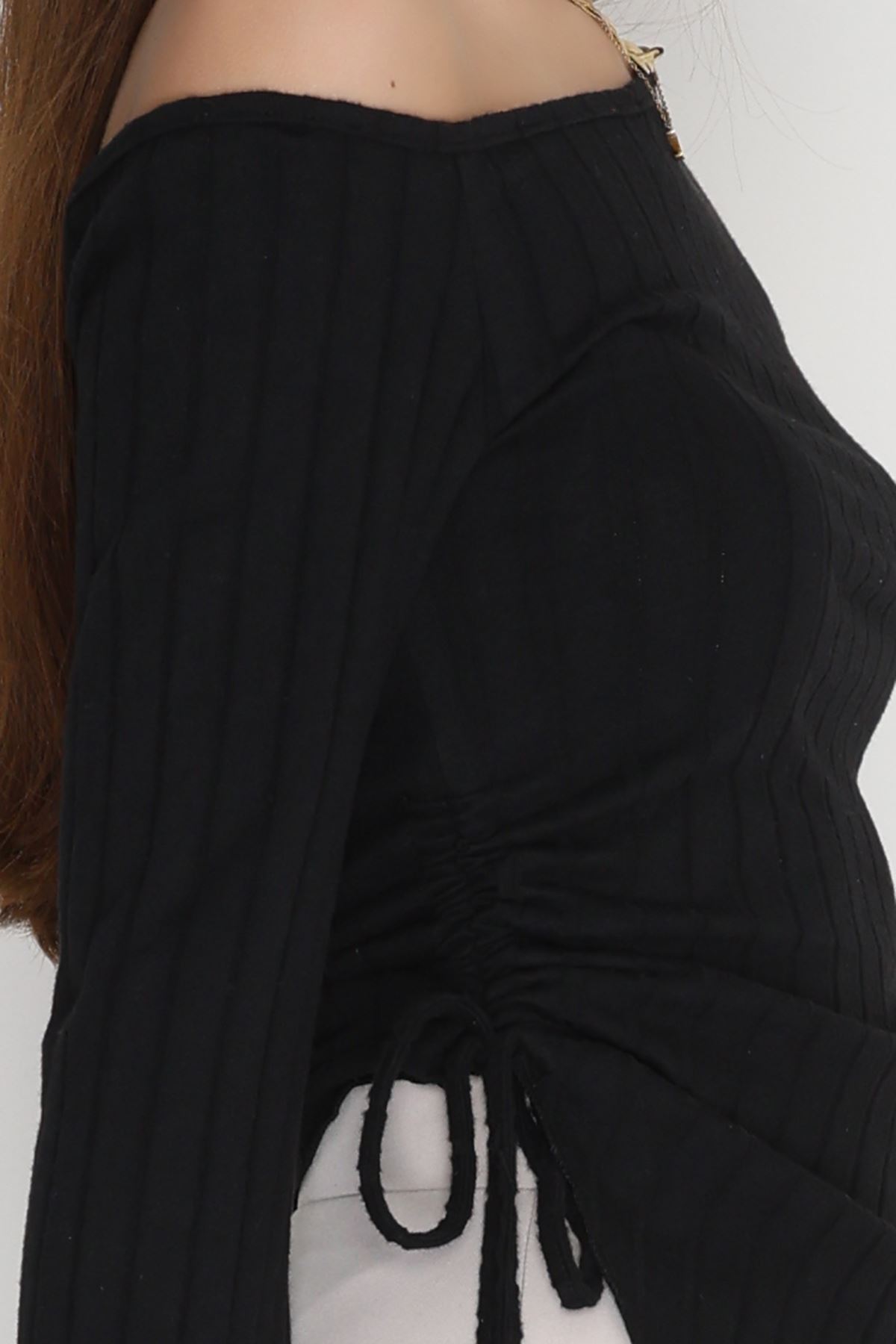 Kayık Yaka Likralı İnterlok Fitilli Body Siyah - 90965.1748.