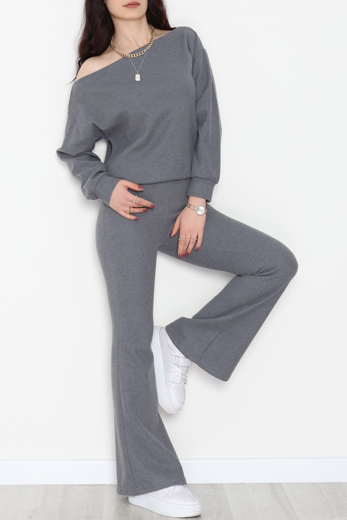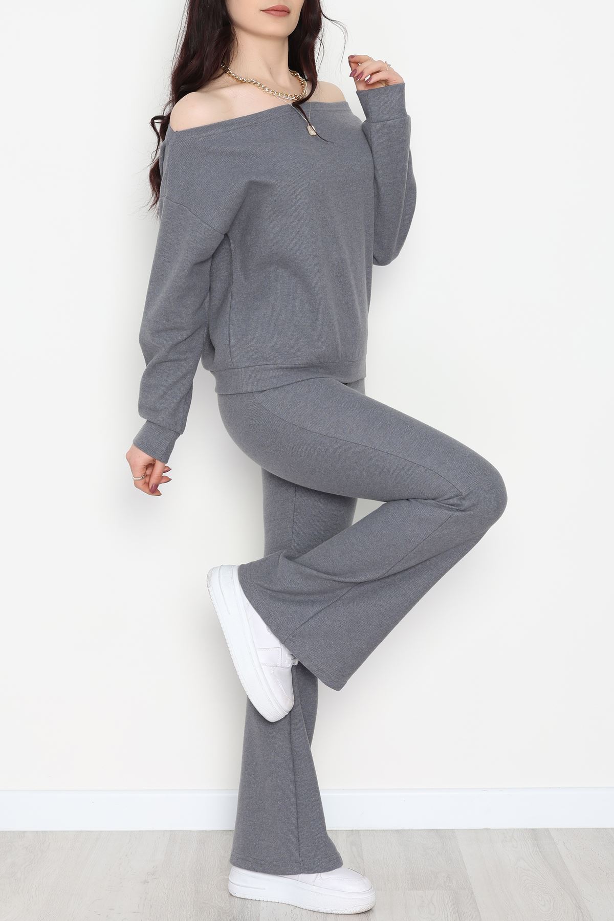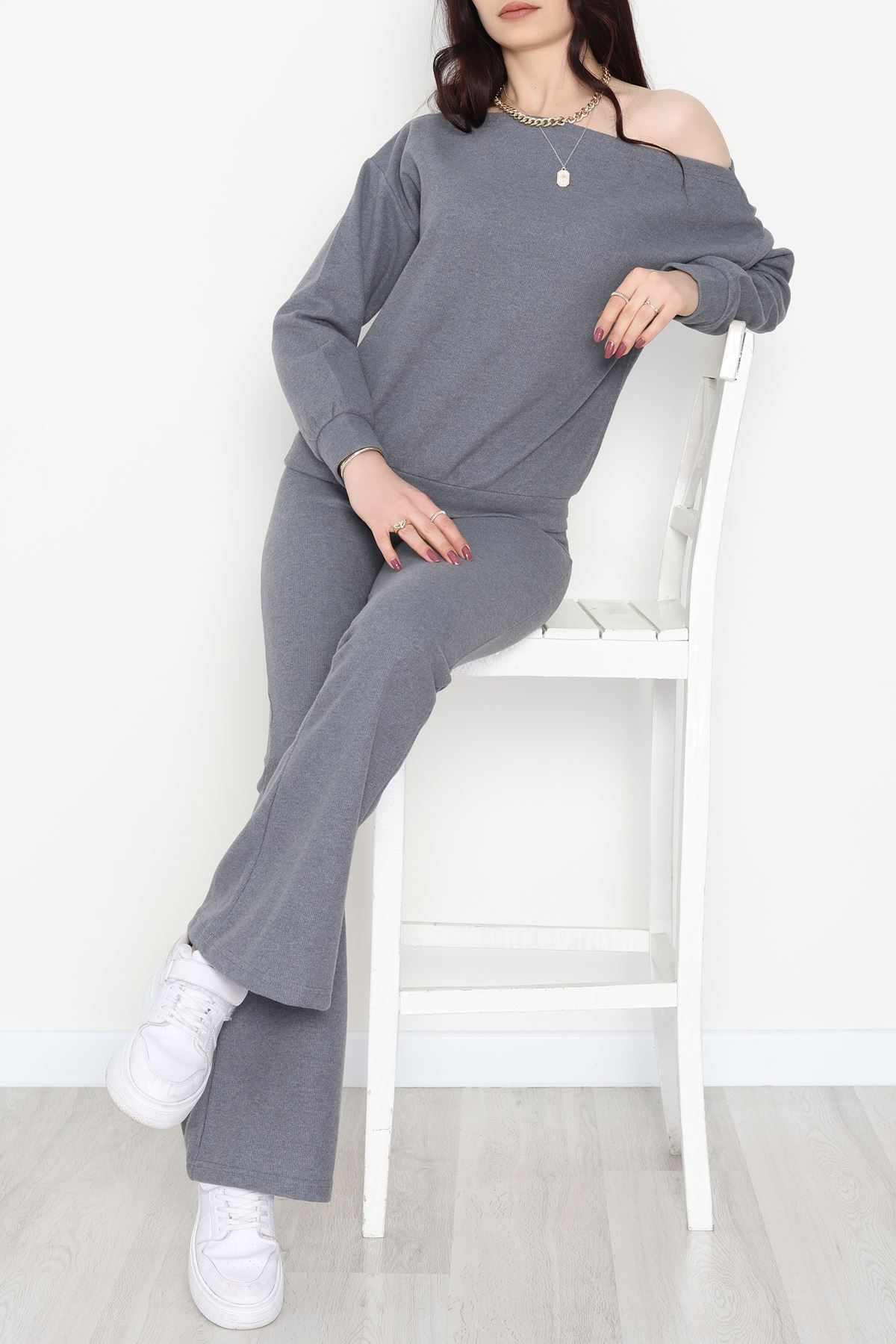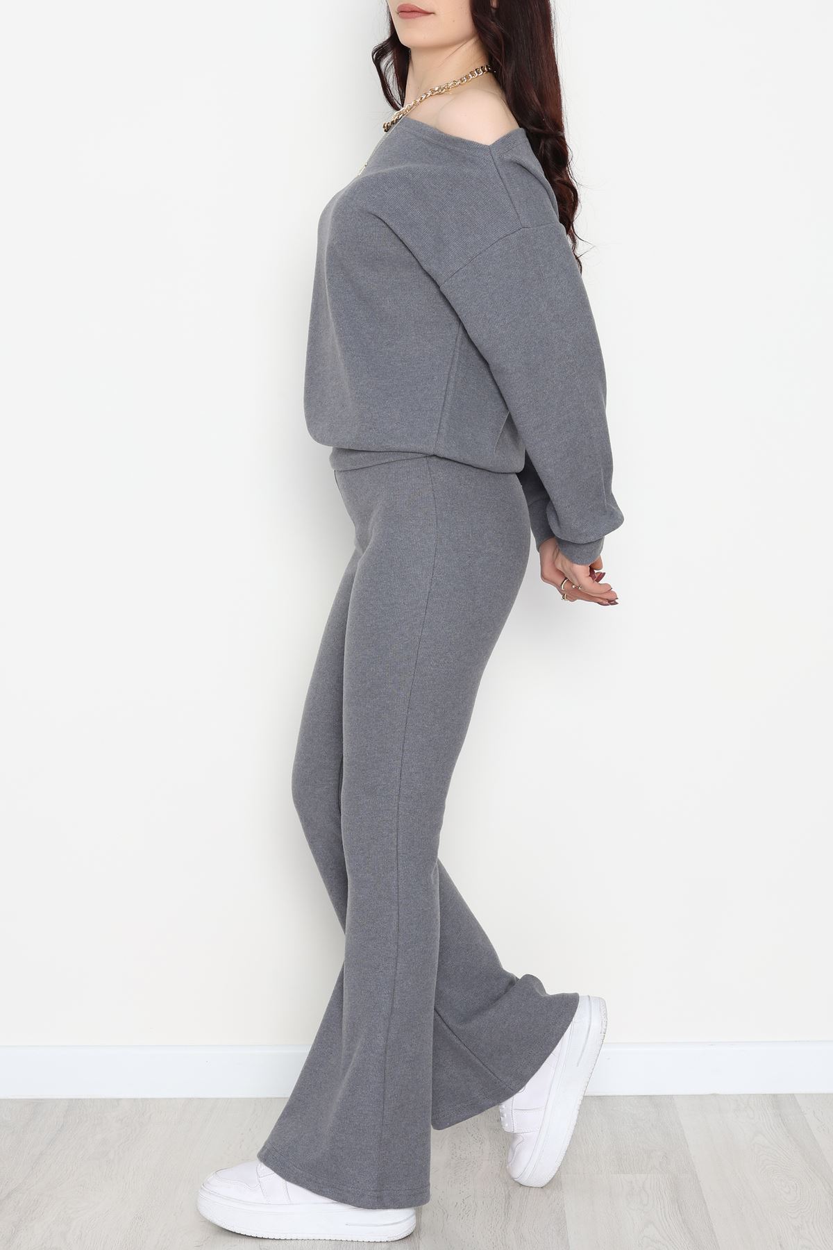 Kayık Yaka Selanik Kumaş İkili Takım Füme - 42739.1567.