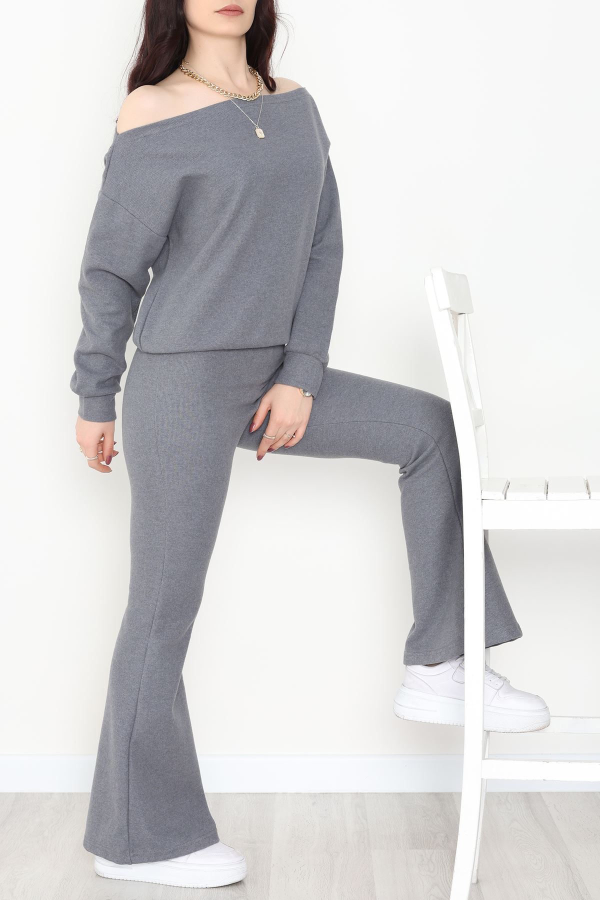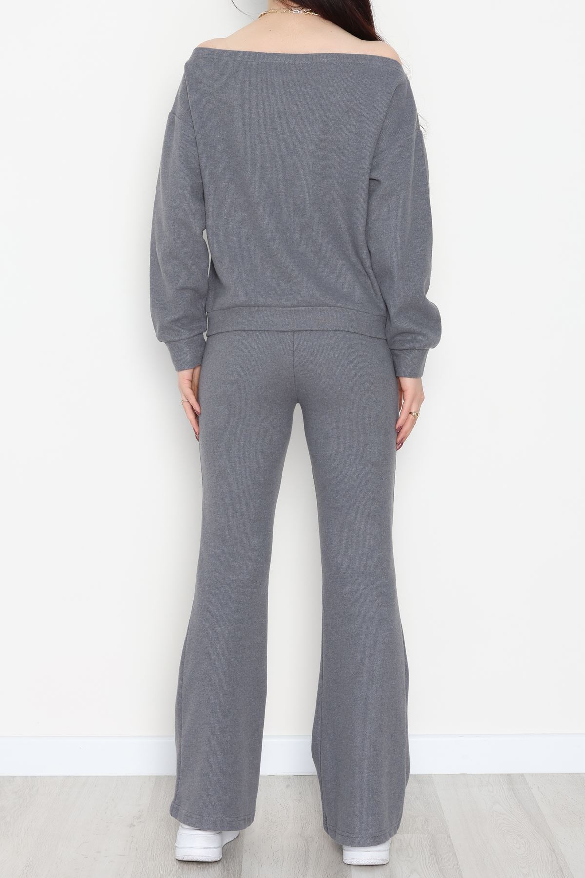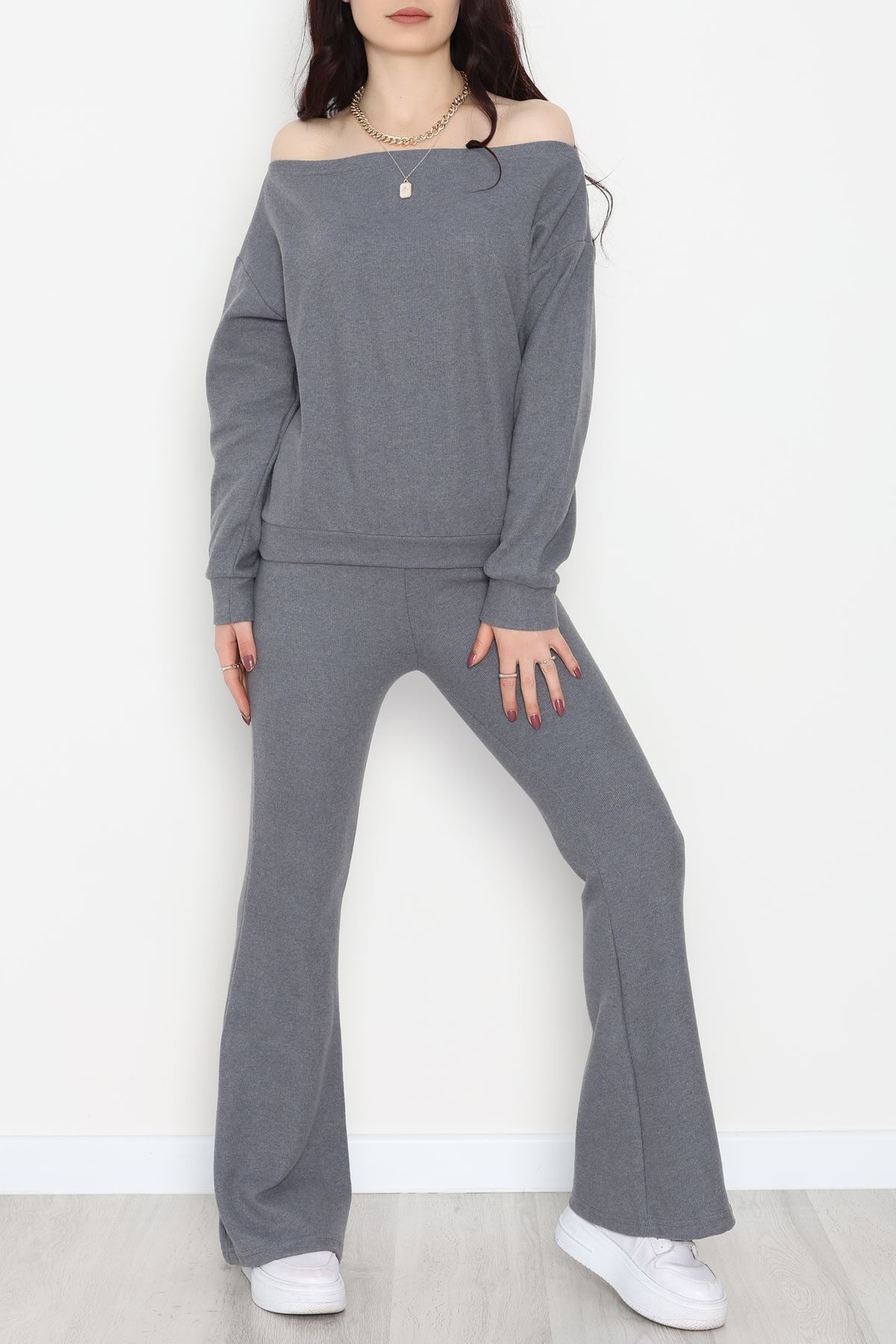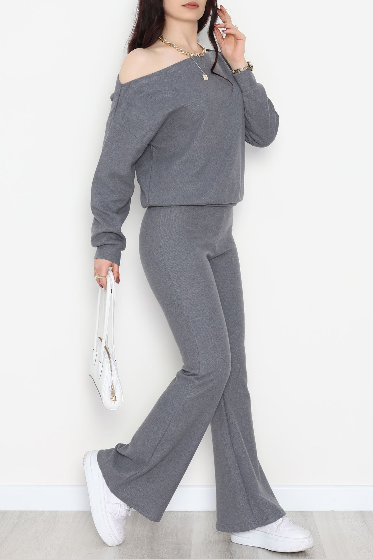 Kayık Yaka Selanik Kumaş İkili Takım Füme - 42739.1567.