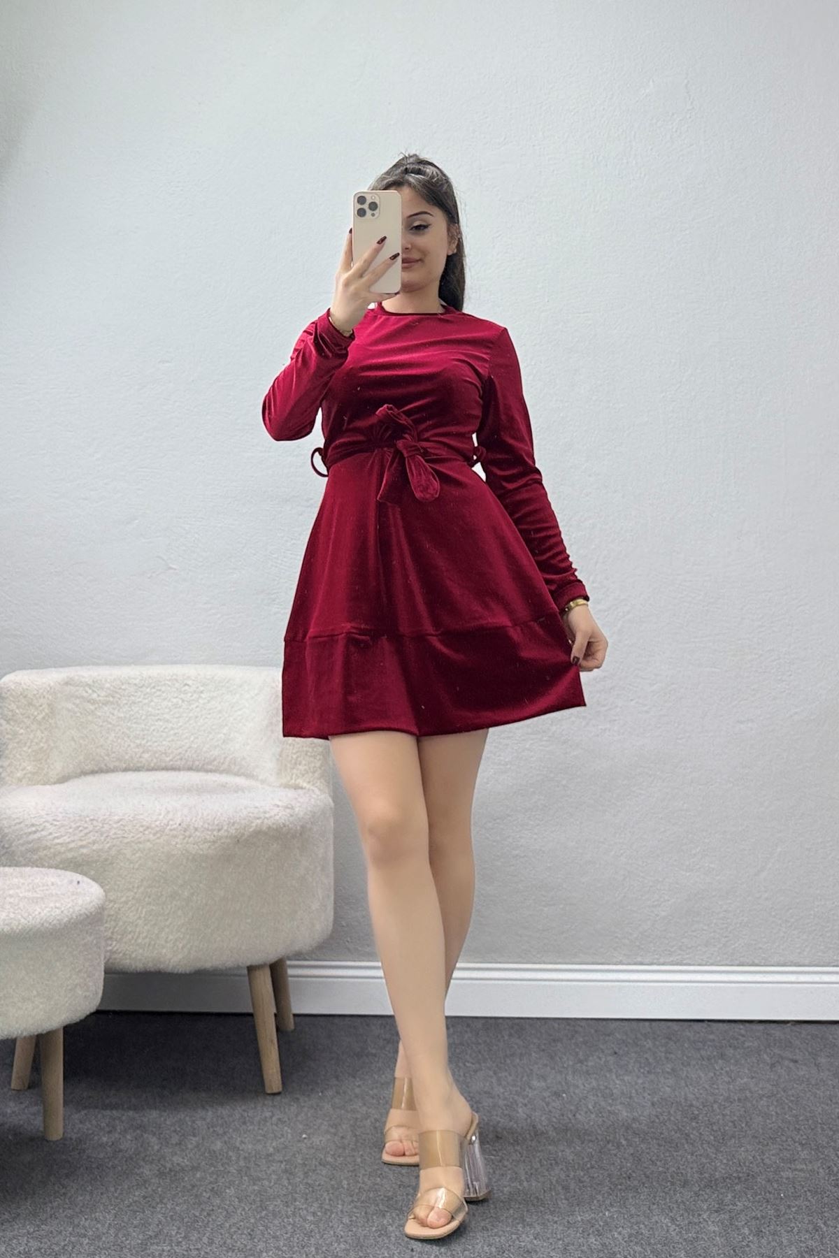 Kemer Detaylı İthal Kadife Elbise Bordo - 42581.1949.