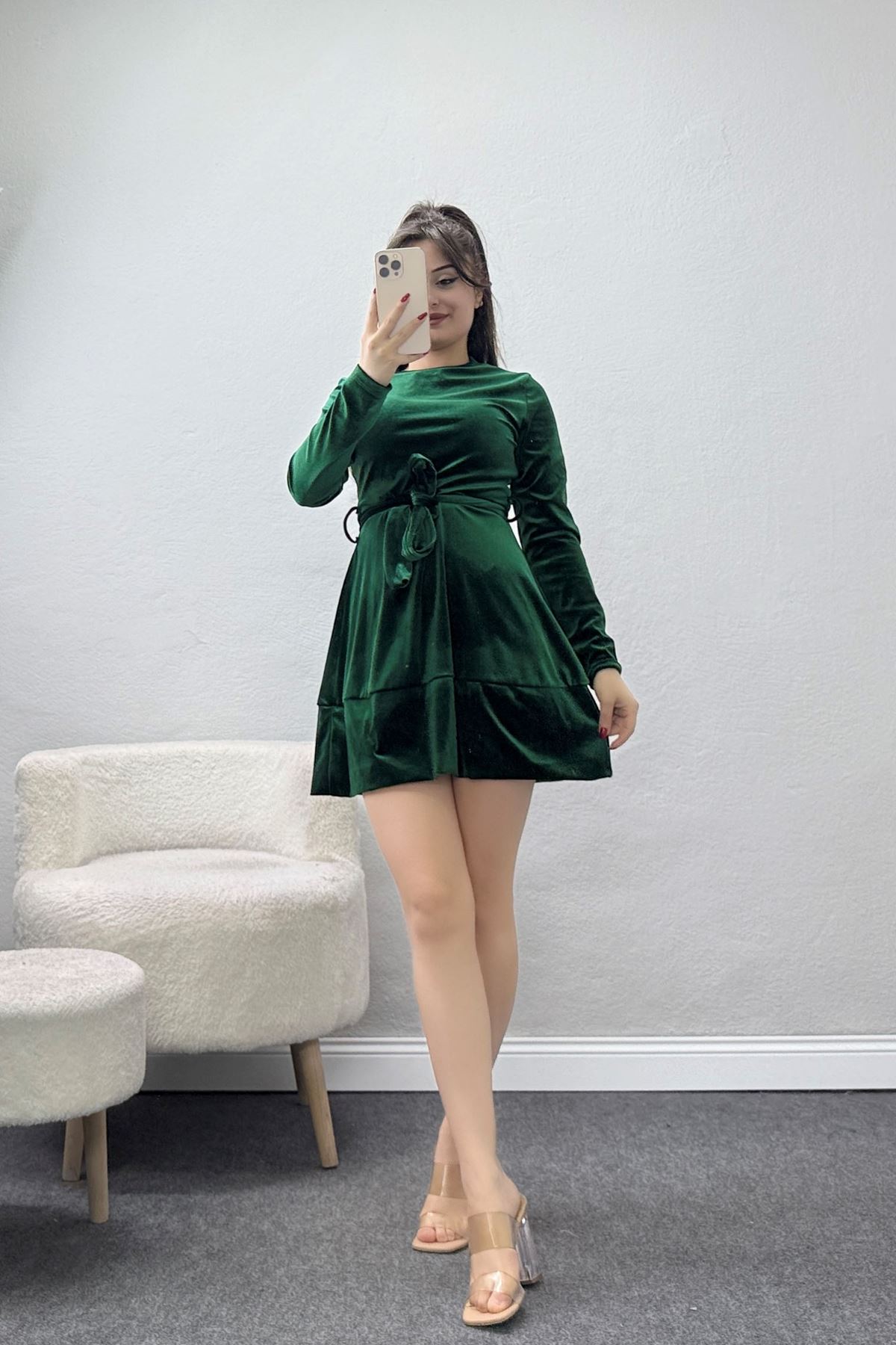Kemer Detaylı İthal Kadife Elbise Zümrüt - 42581.1949.