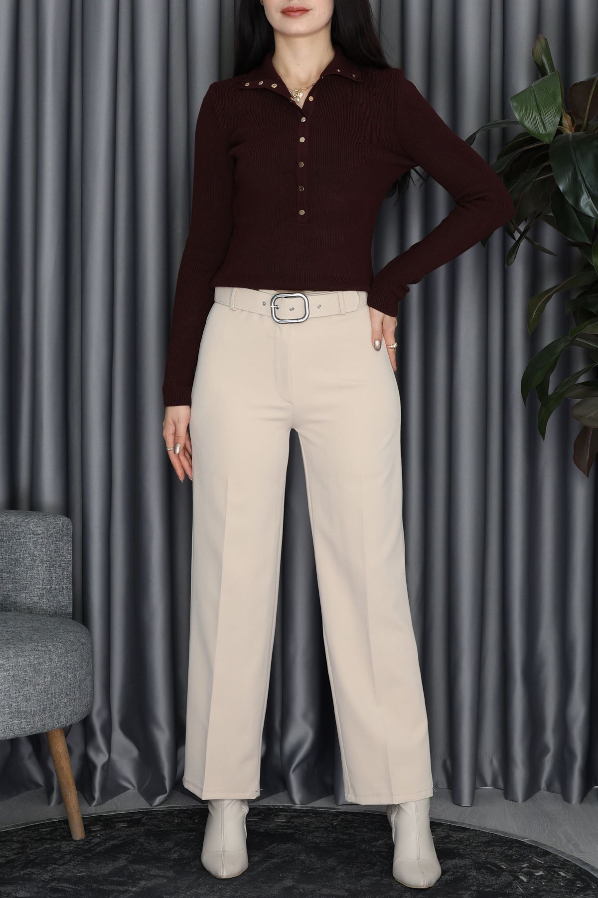 Kemerli Palazzo Pantolon Kahve - 24194.1397.