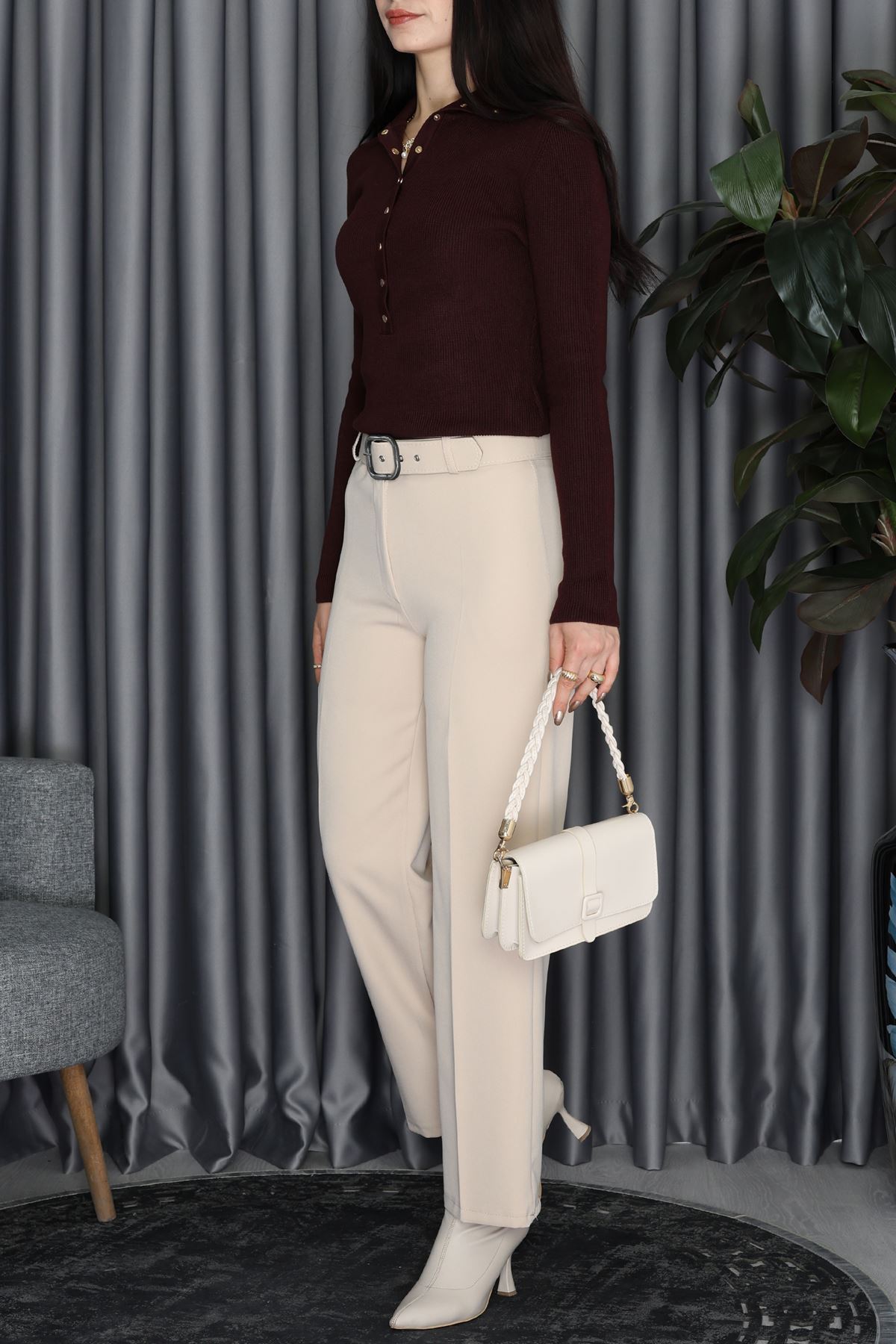 Kemerli Palazzo Pantolon Bej - 24194.1397.