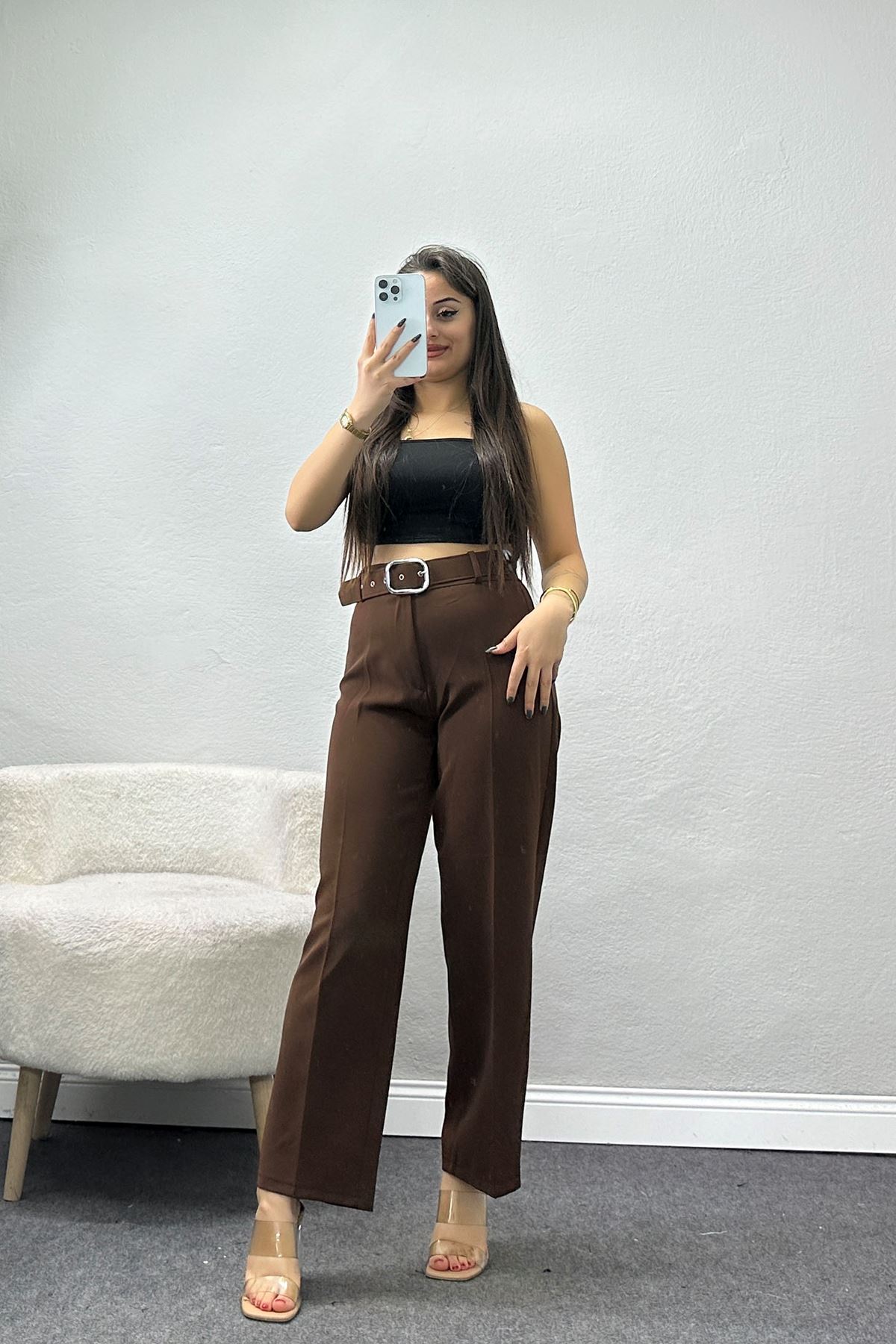 Kemerli Palazzo Pantolon Kahve - 24194.1397.