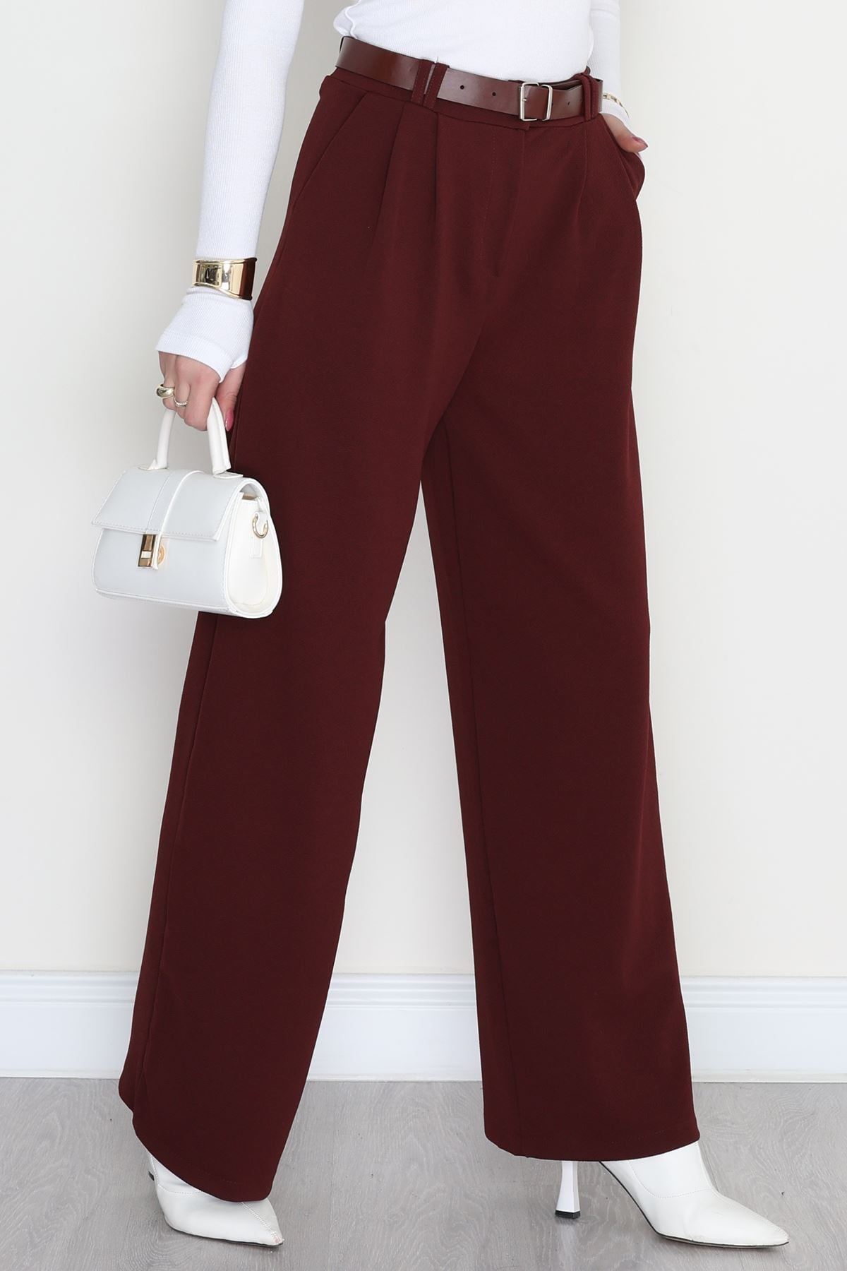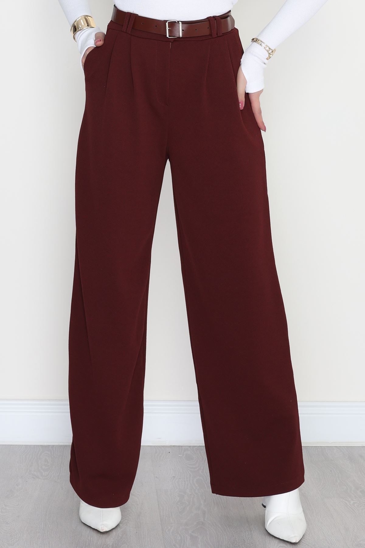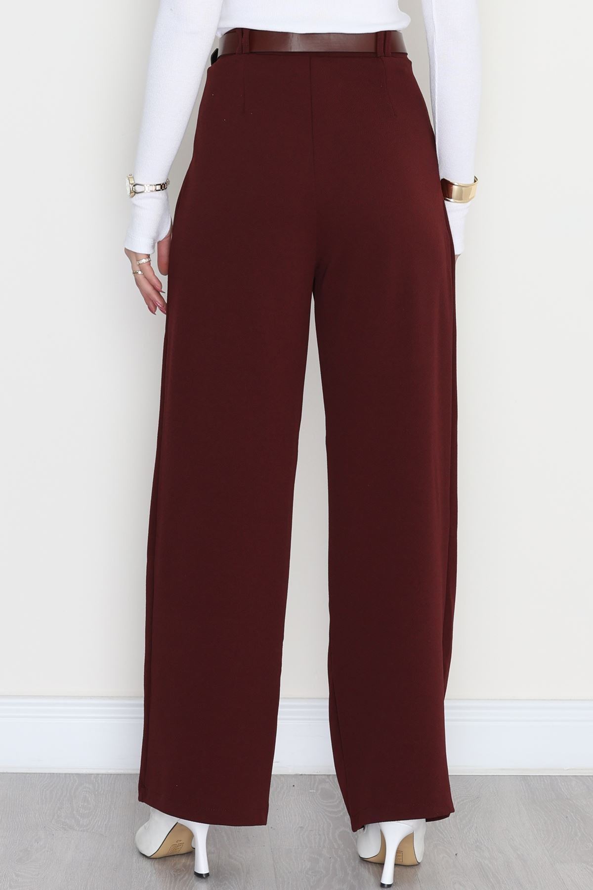 Kemerli Zra Krep Palazzo Pantolon Bordo - 30777.1865.