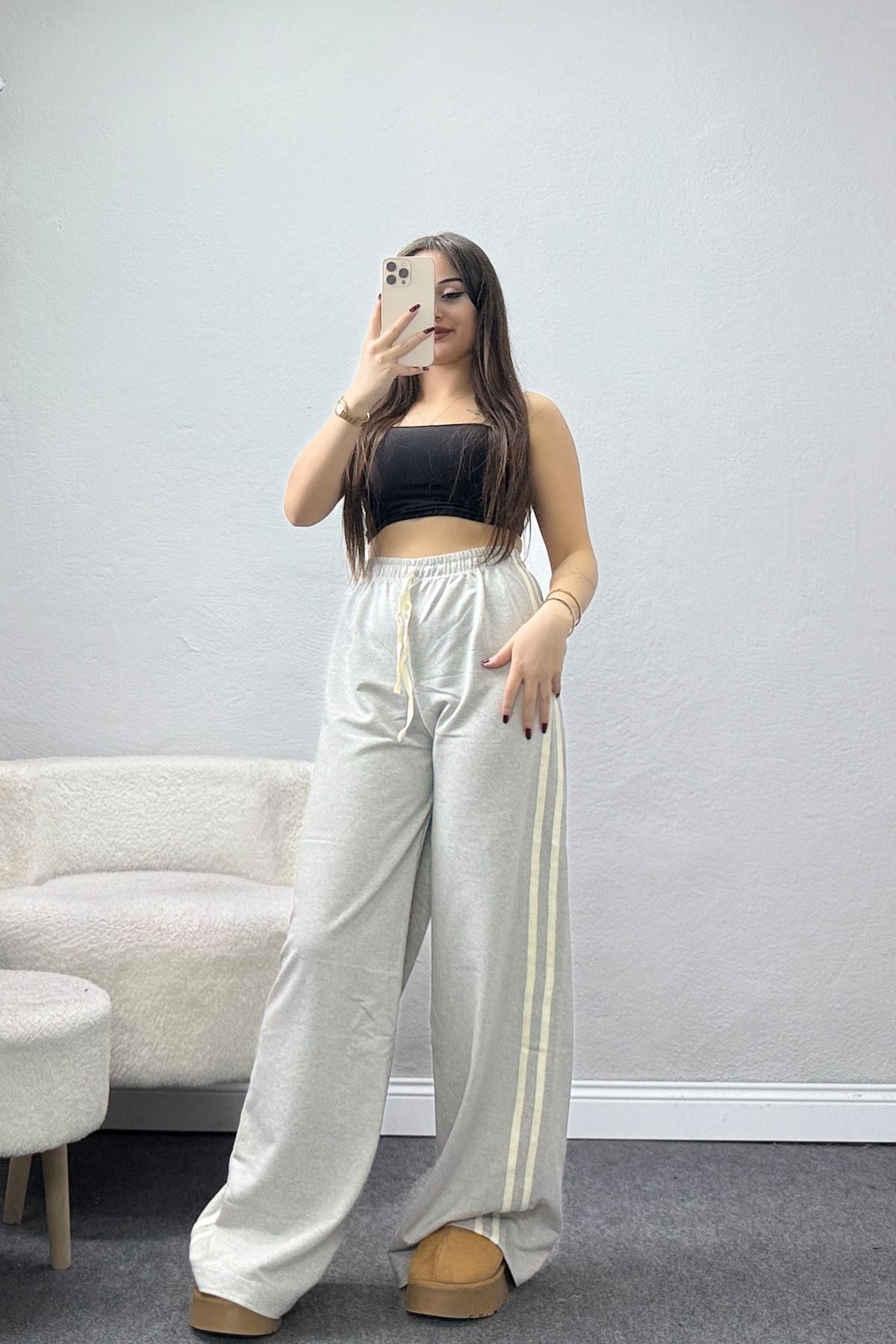 Keten Biyeli 2 İplik Eşofman Altı Gribej - 40023.1857.