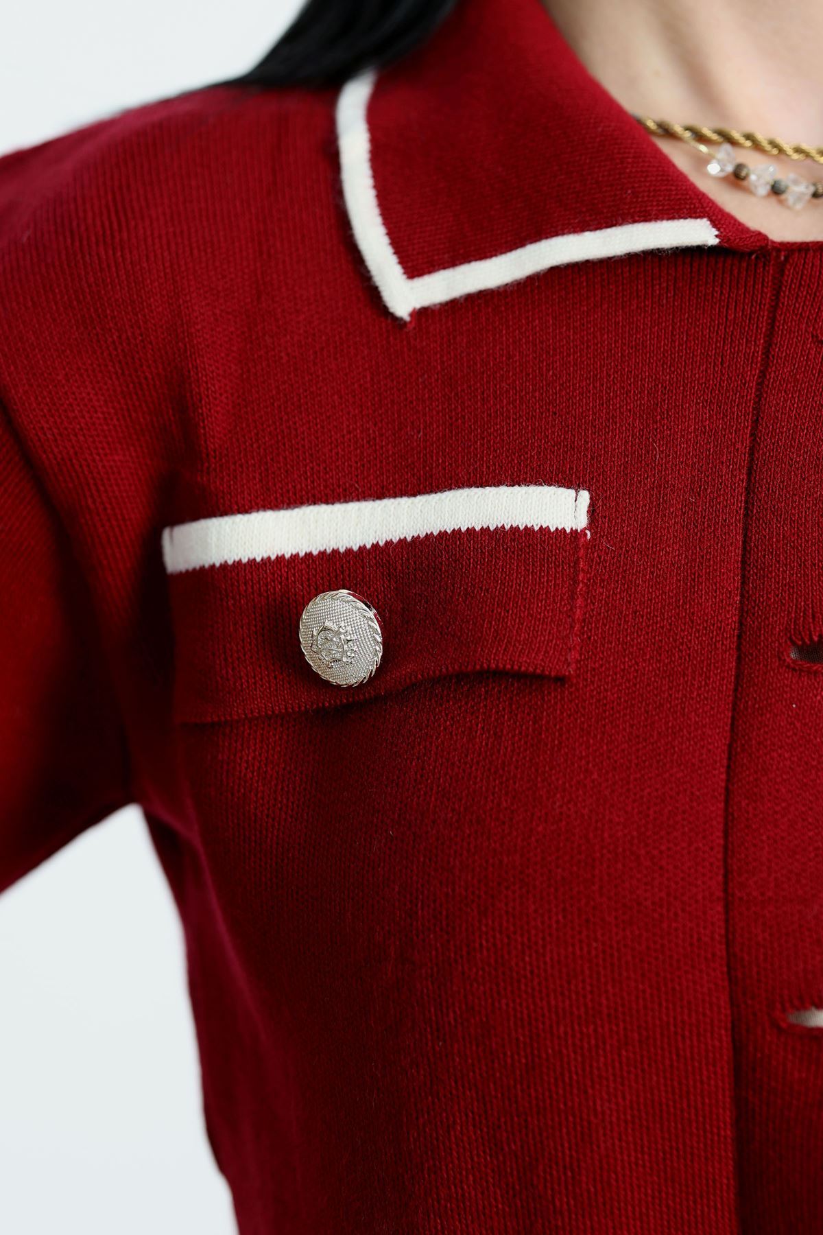 Kısa Kollu Etekli Triko Takım Bordo - 2360.1765.