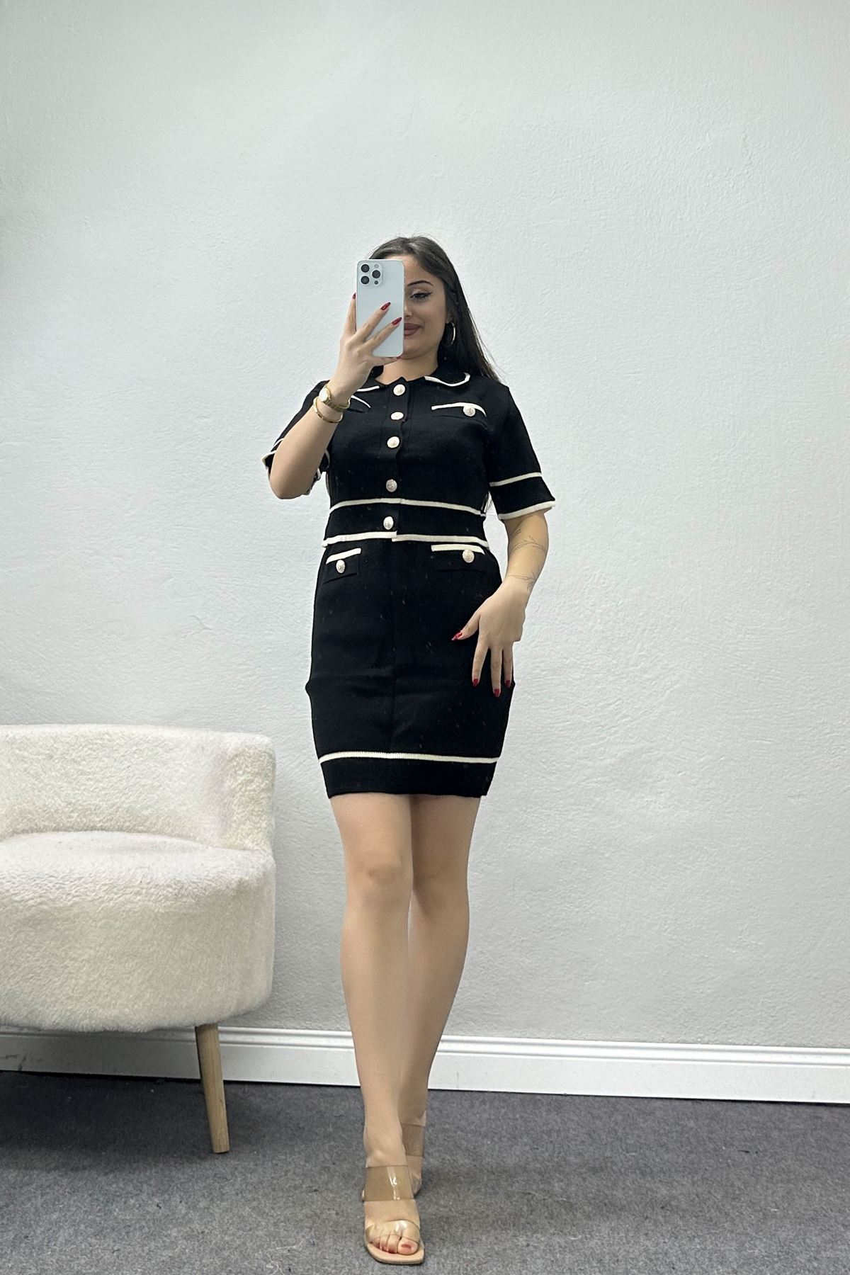 Kısa Kollu Etekli Triko Takım Siyah - 2360.1765.