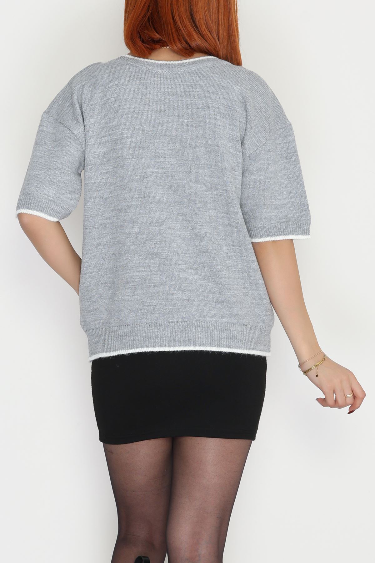 Kısa Kollu Fiyonklu Triko Gri - 2281.1765.