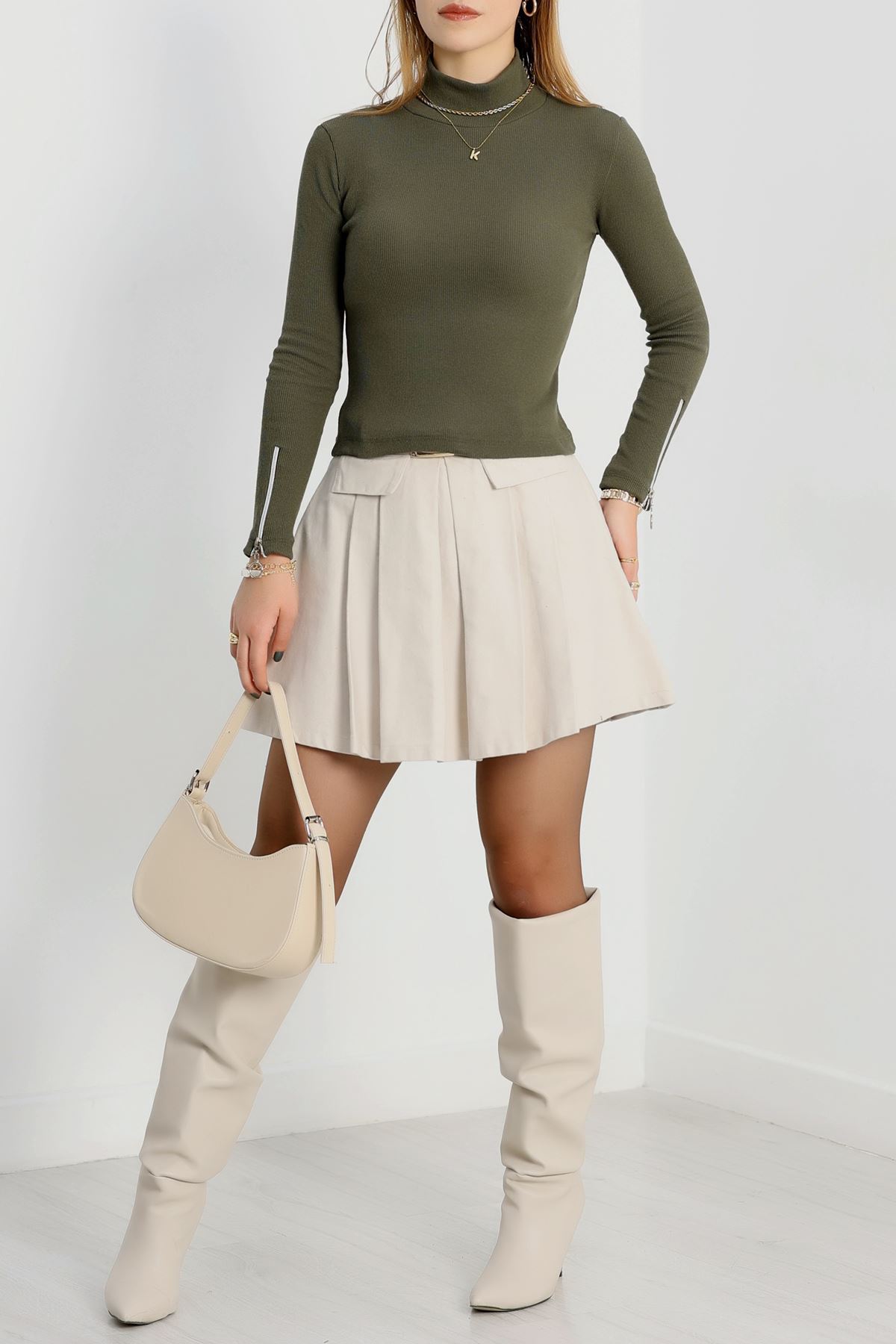 Kol Fermuar Detaylı Kaşkorse Body Açıkhaki - 70683.599.