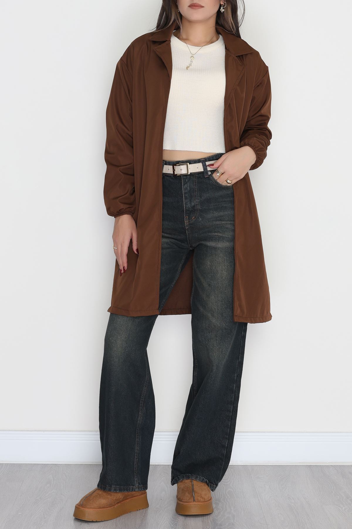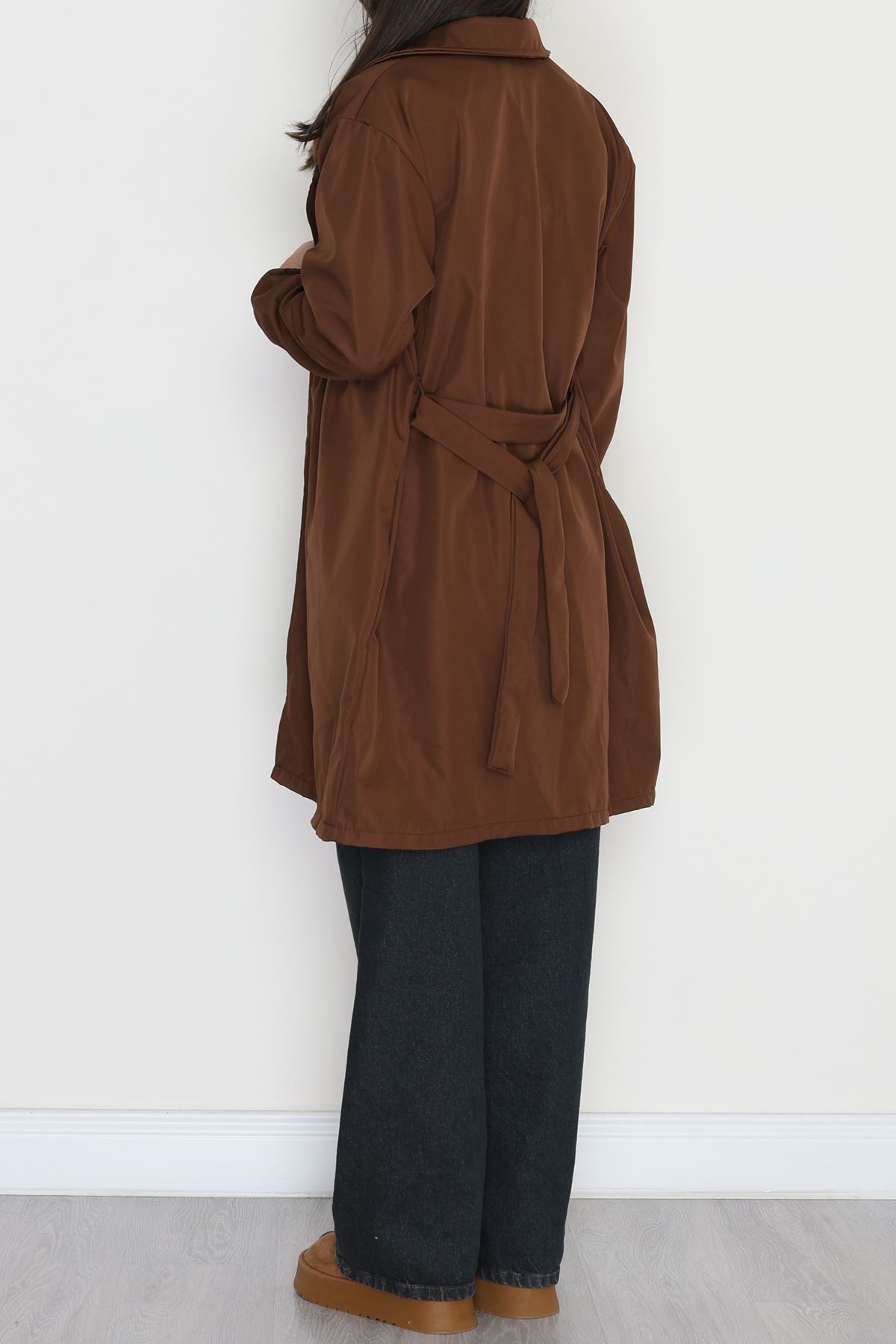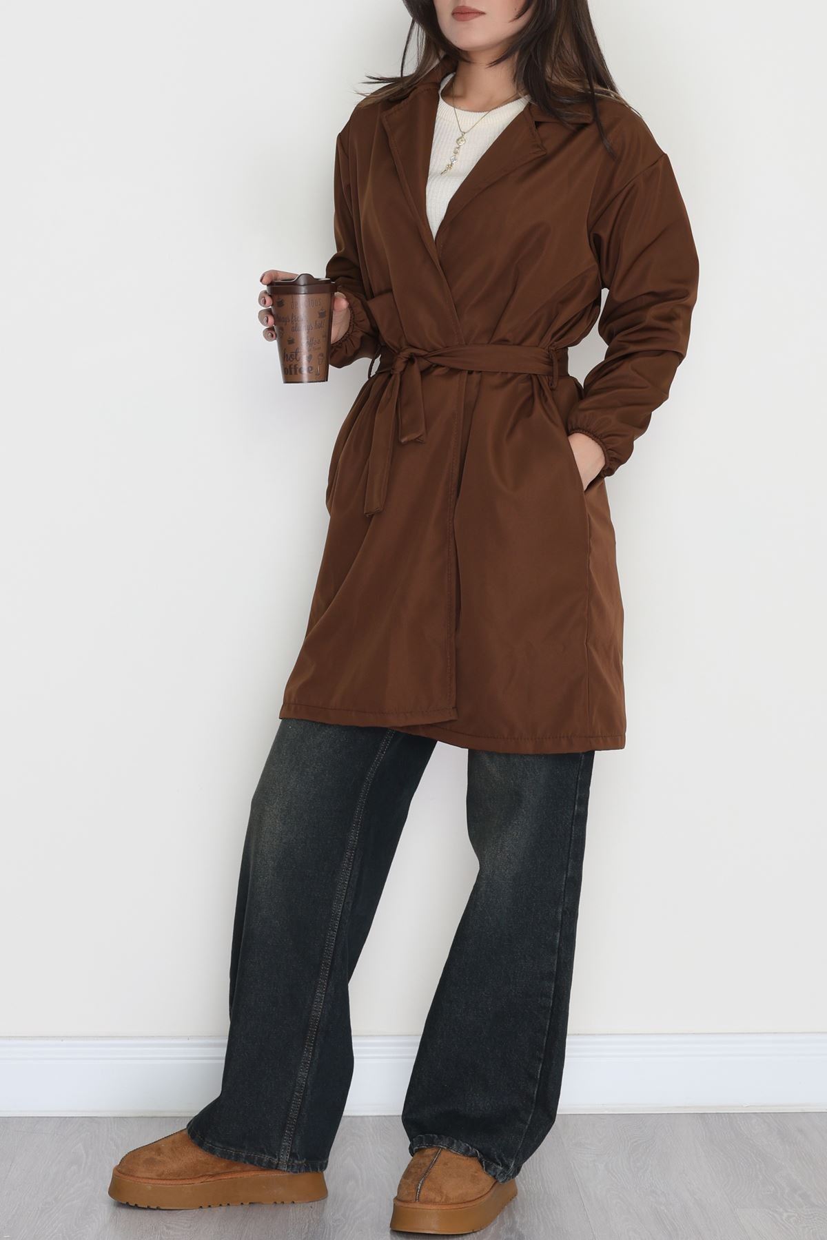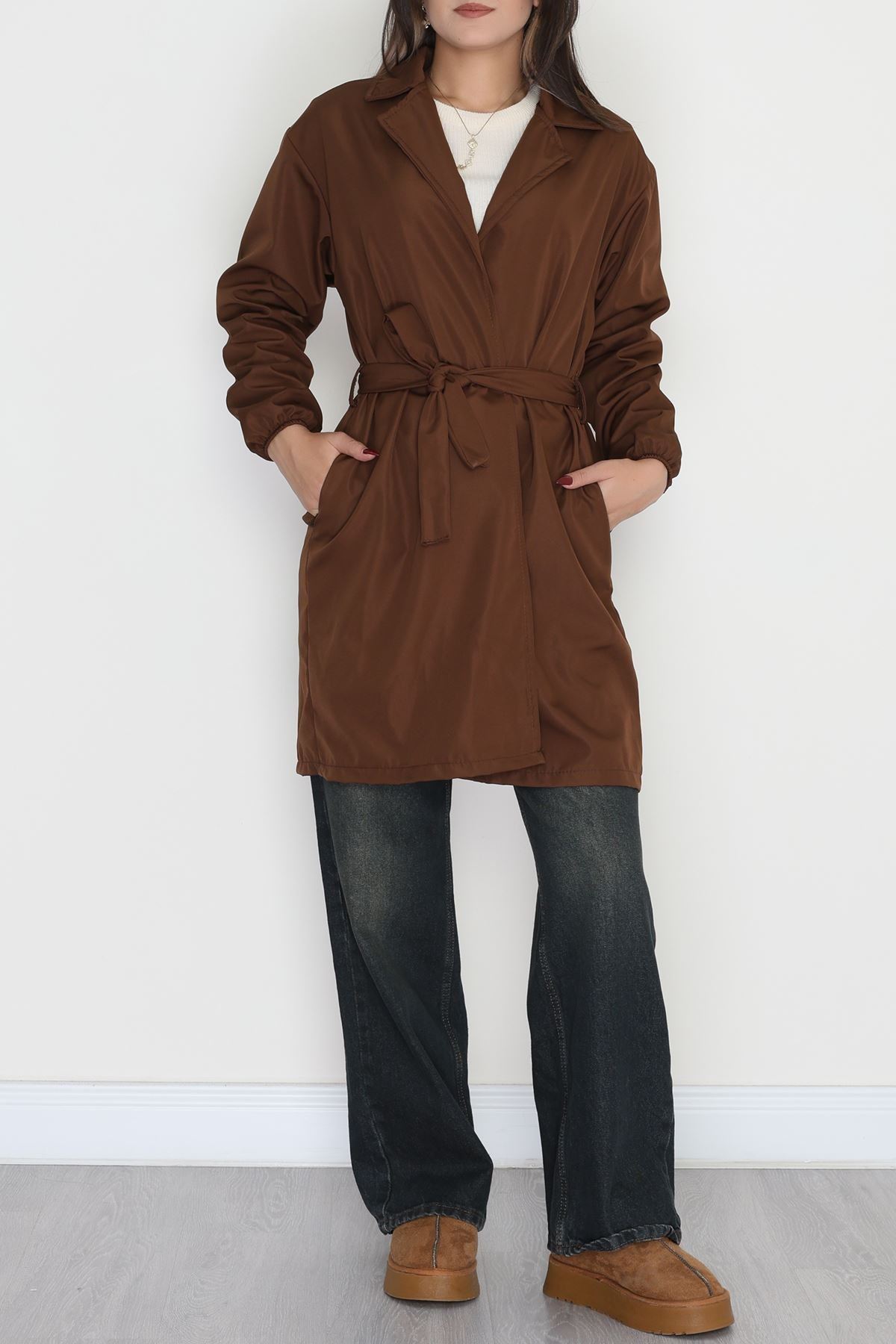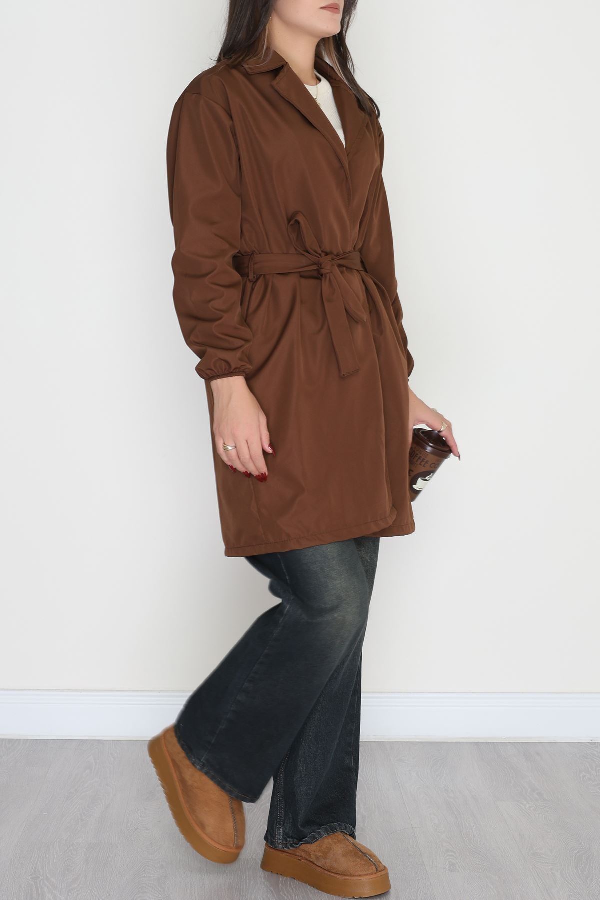 Kol Lastikli Astarsız Kuşaklı Trençkot Kahve - 31135.147.