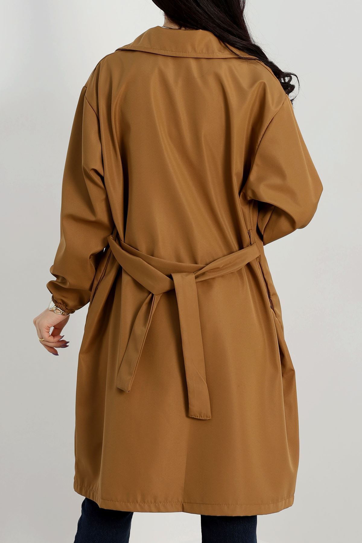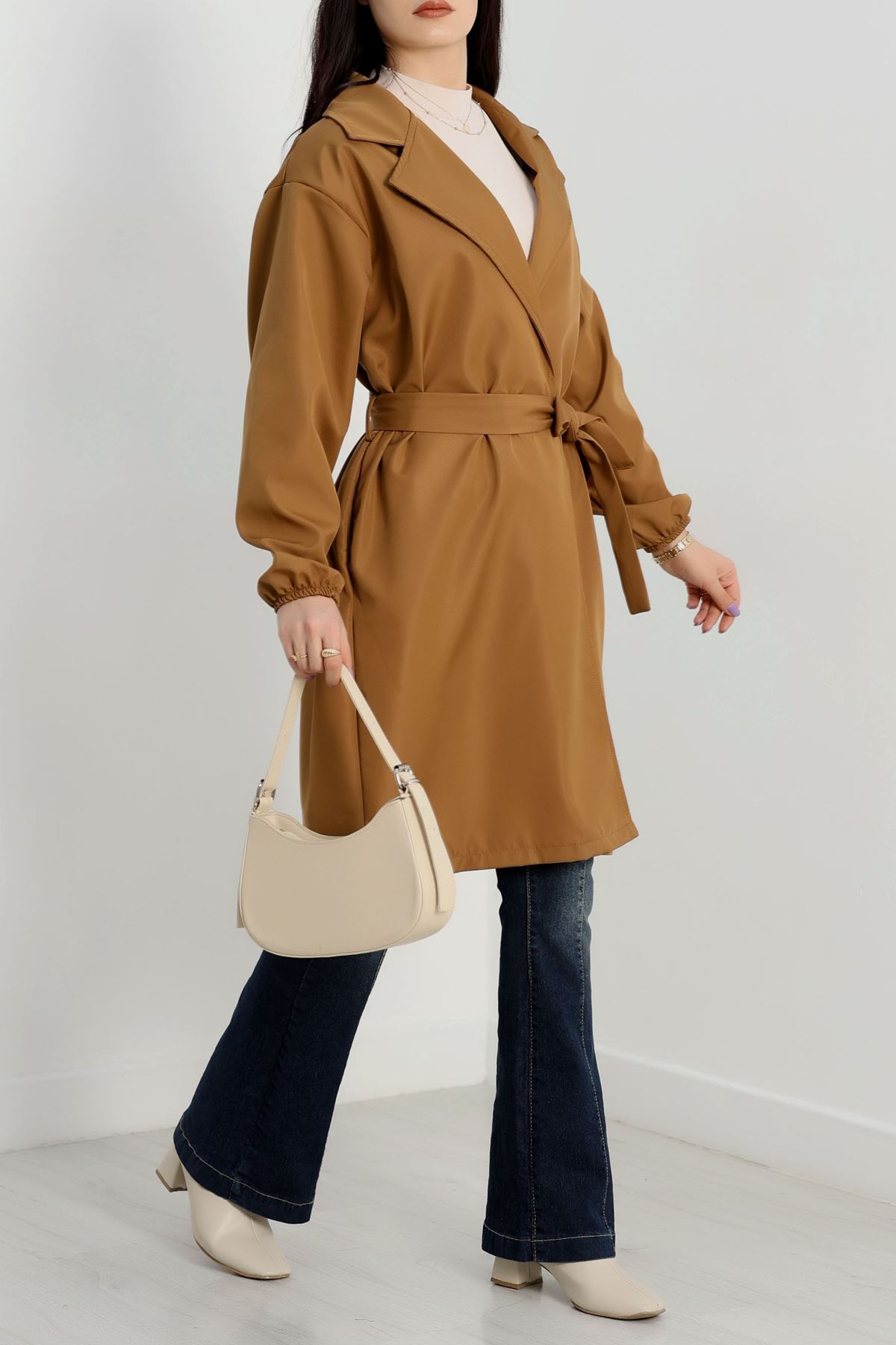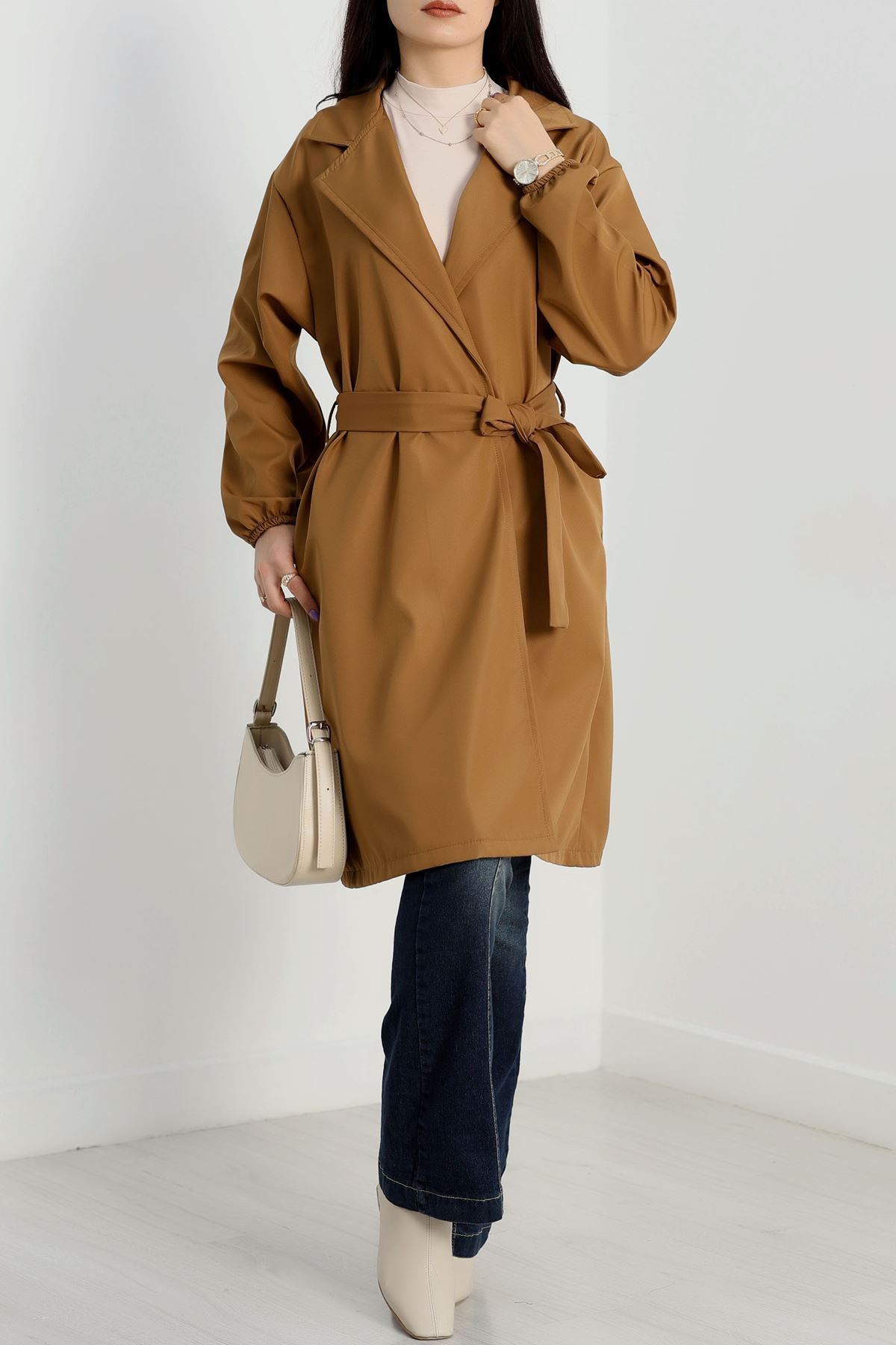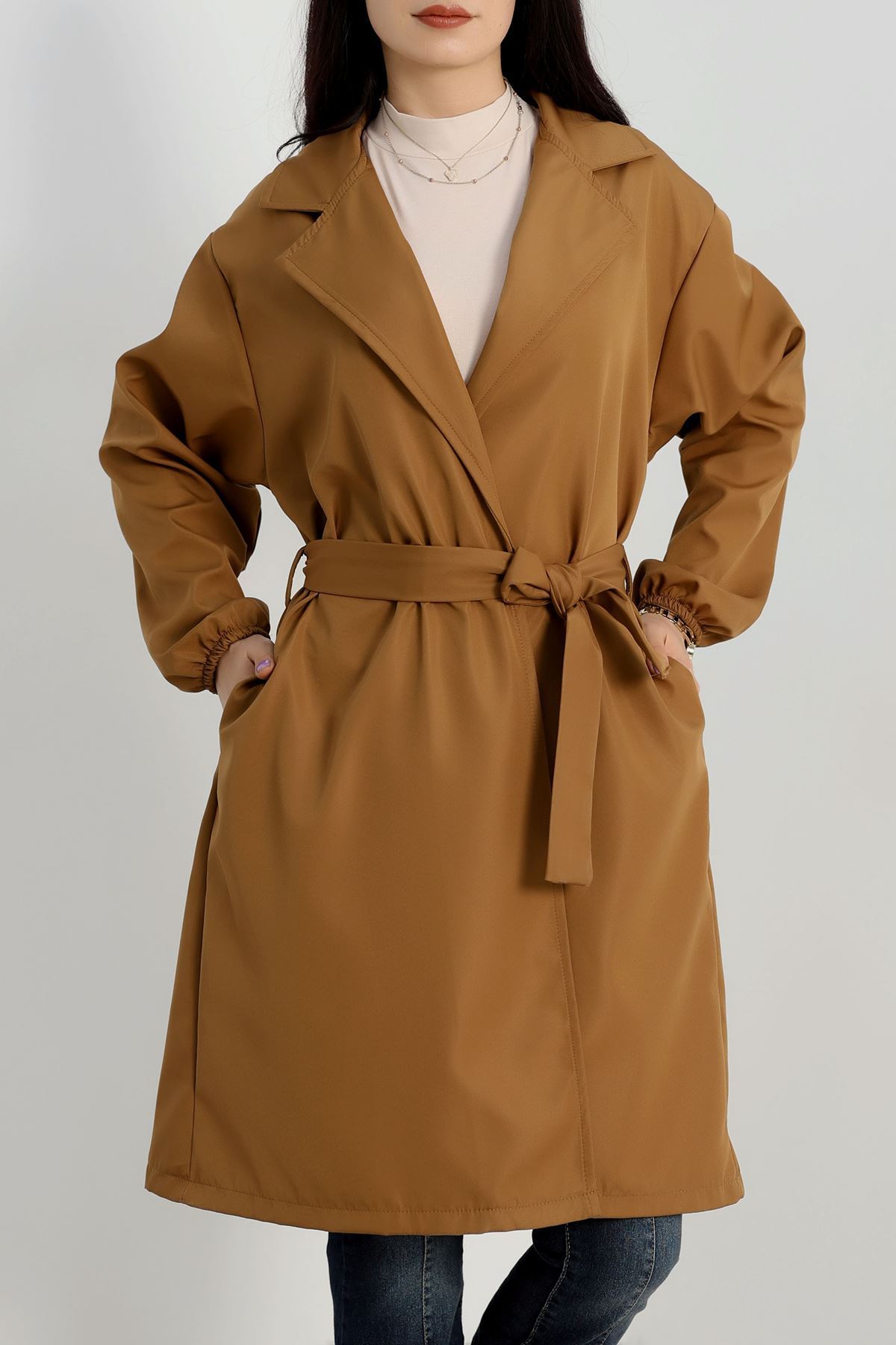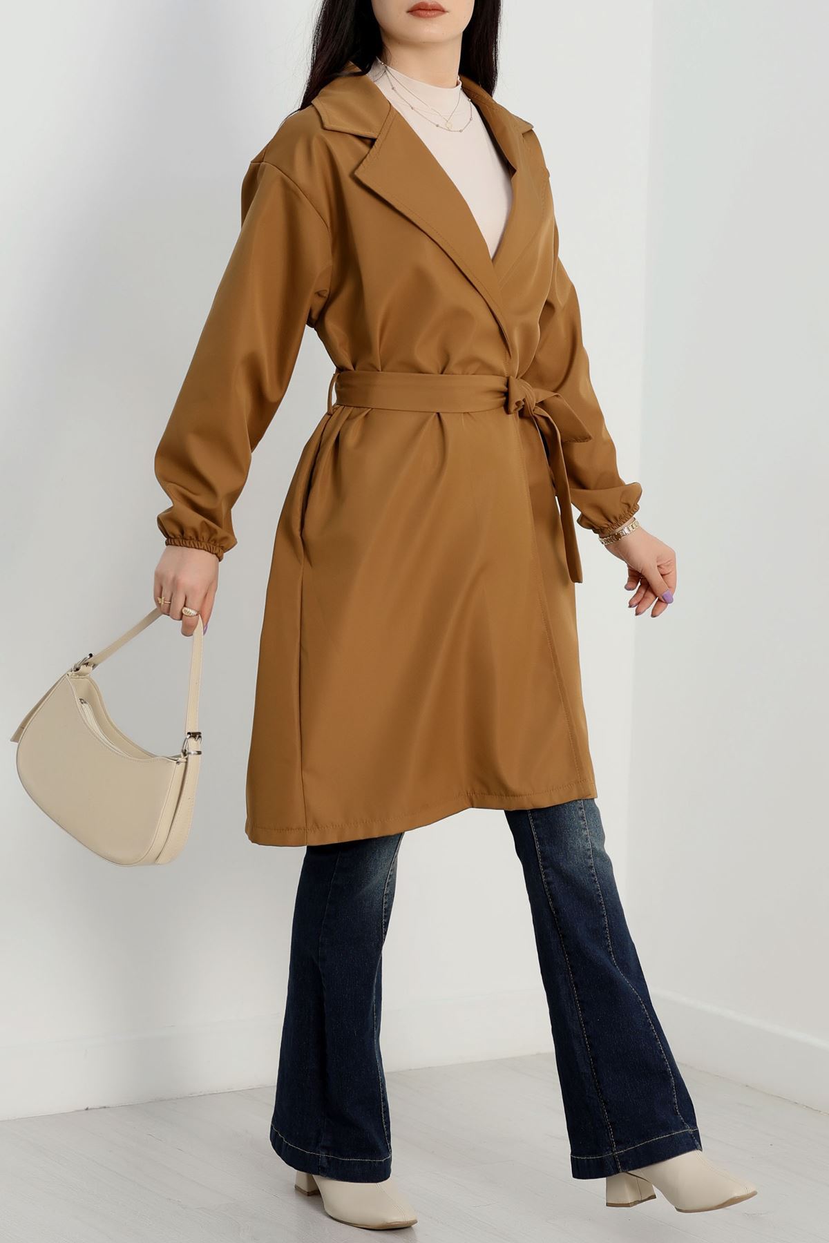 Kol Lastikli Astarsız Kuşaklı Trençkot Taba - 31135.147.