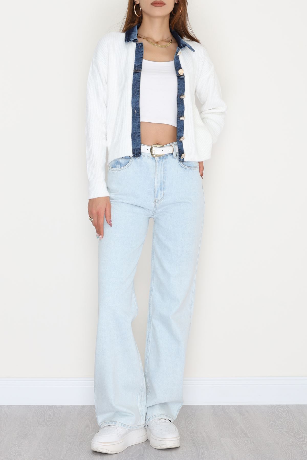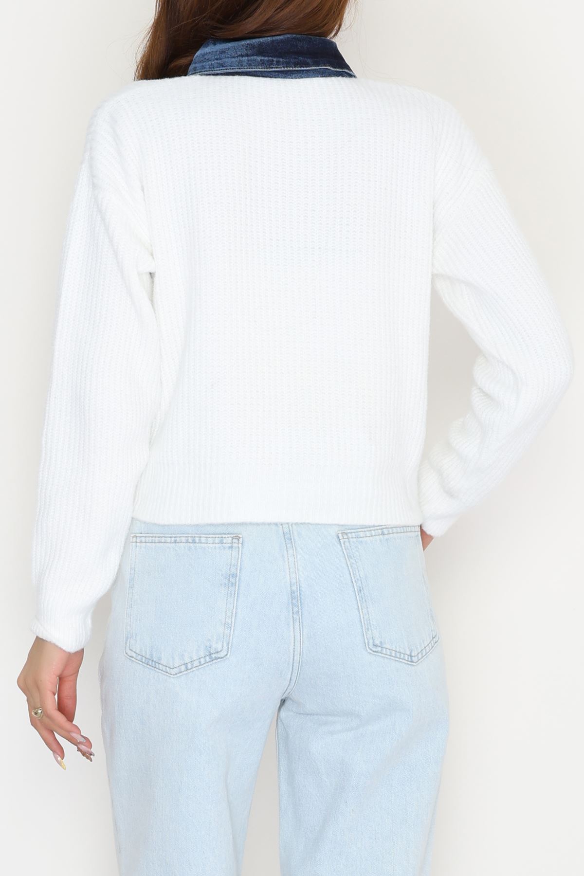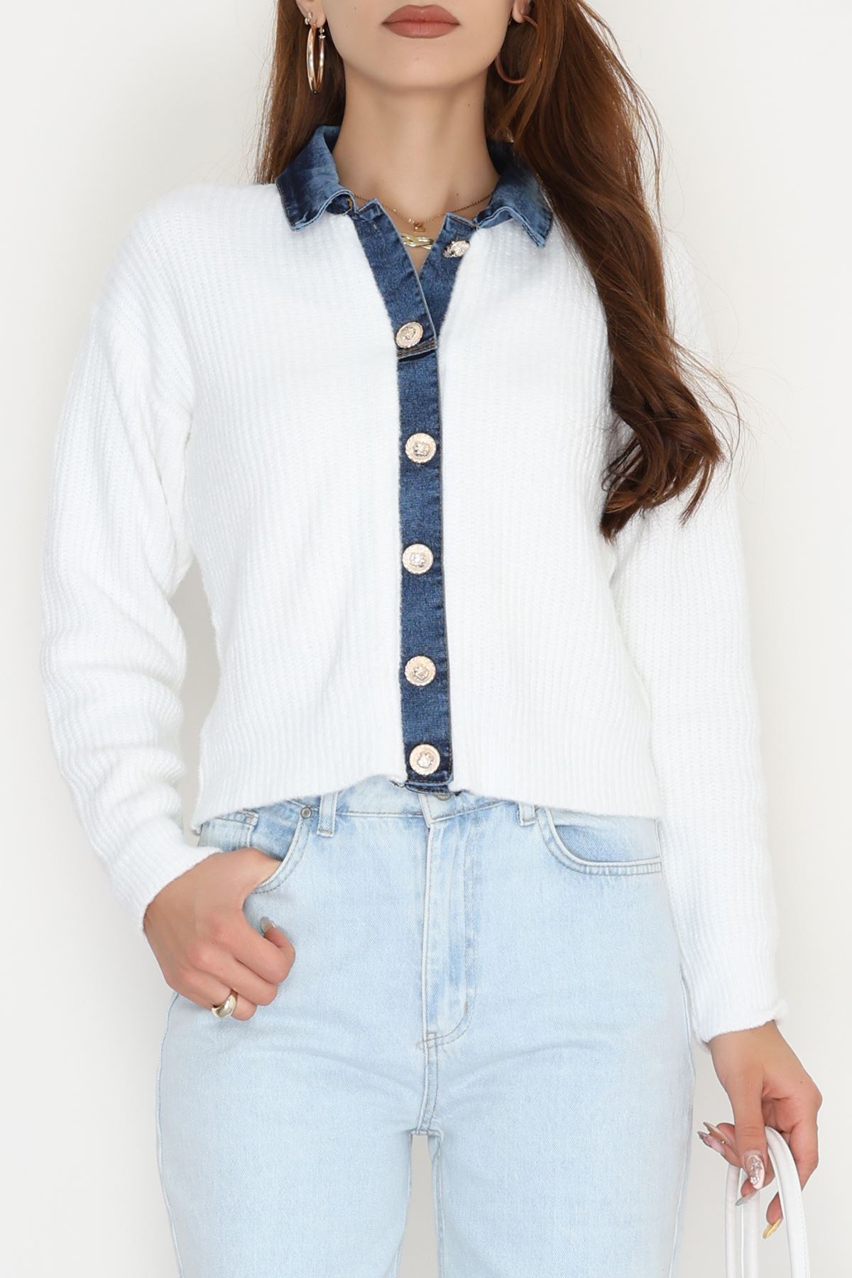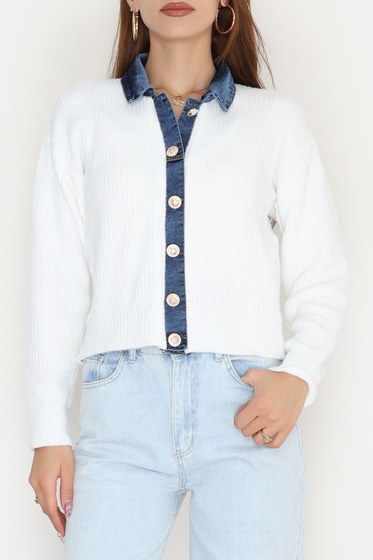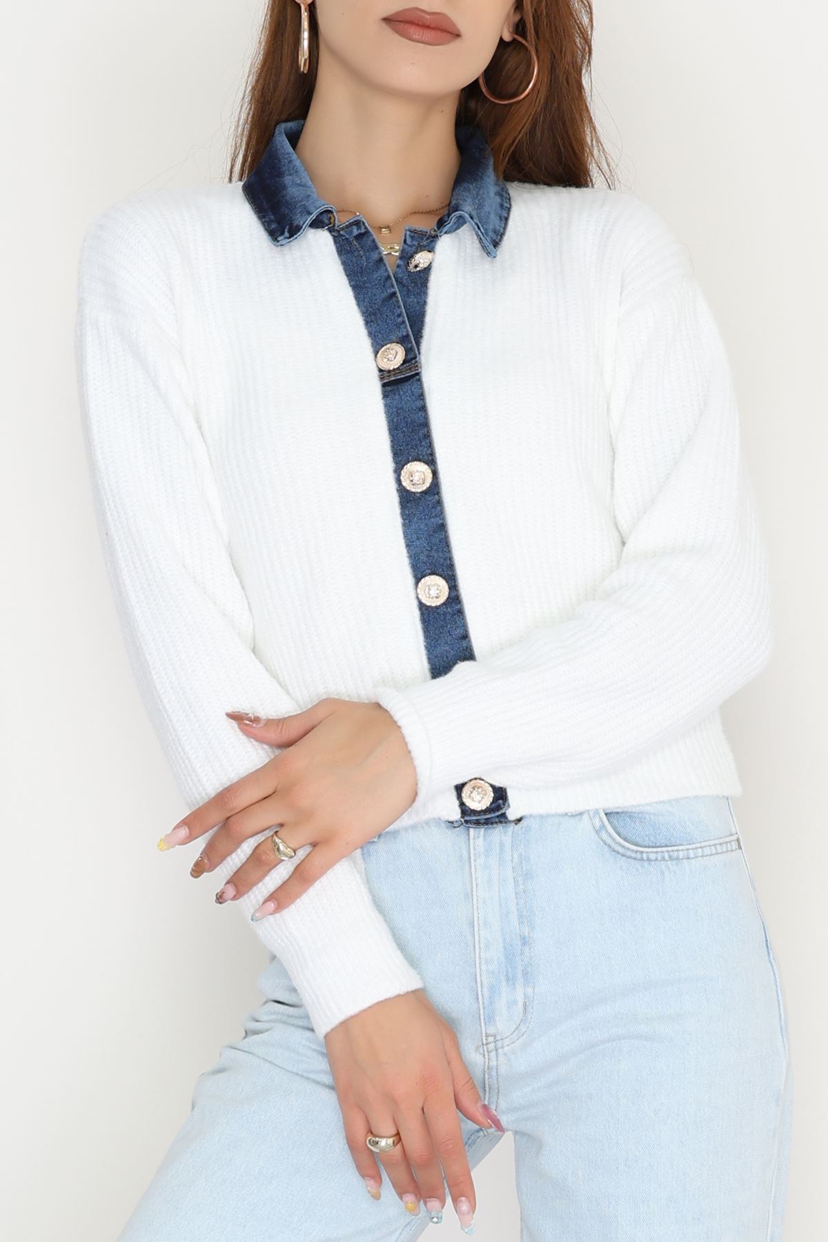 Kot Garnili Düğme Detay Hırka Beyaz - 70803.1765.