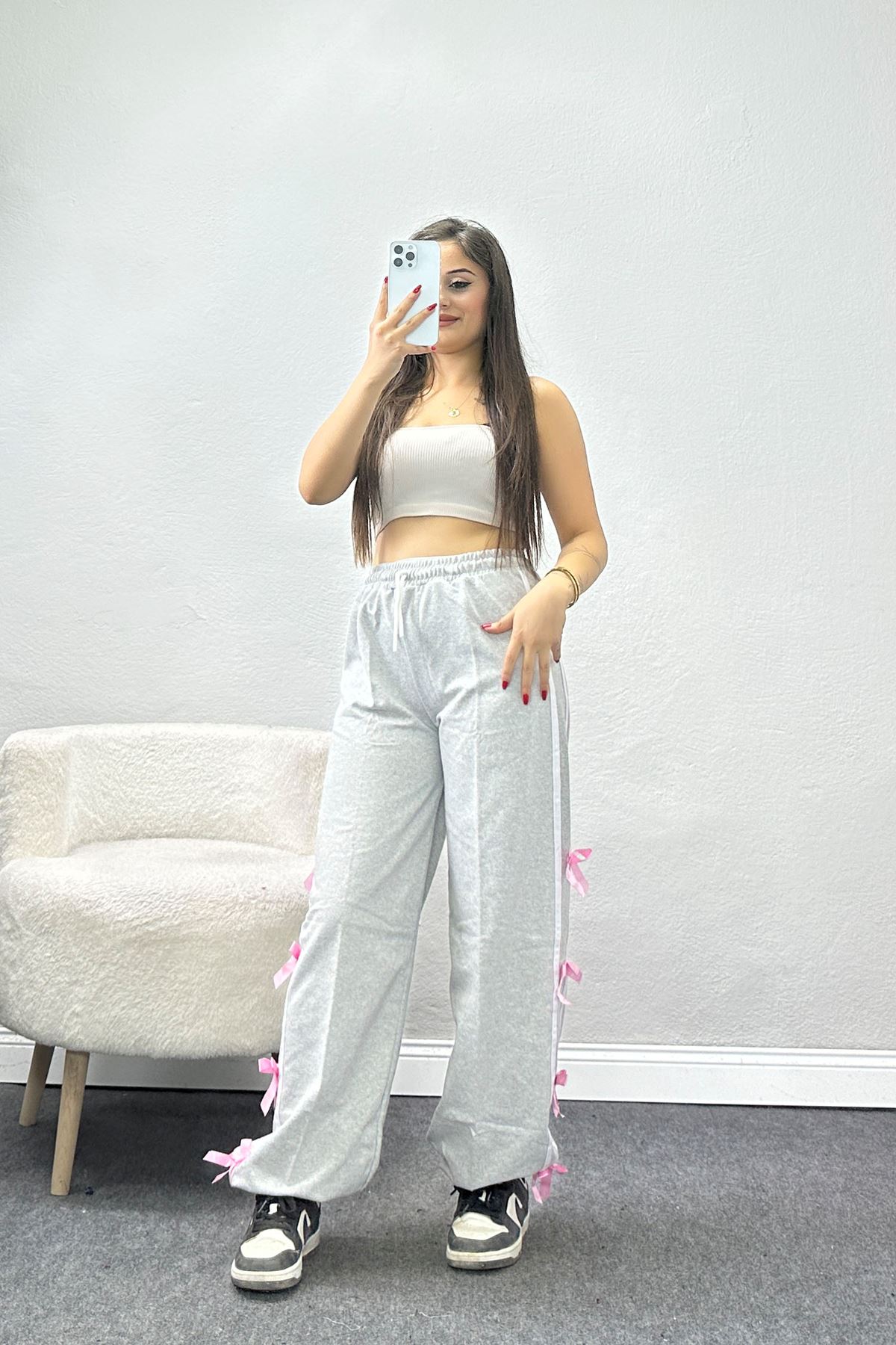 Kurdele Detaylı 2 İplik Eşofman Altı Gri - 50528.1857.